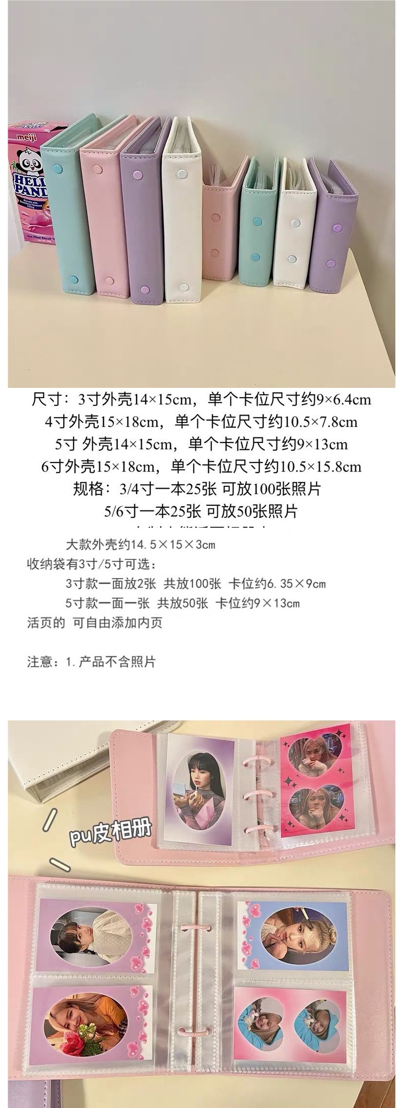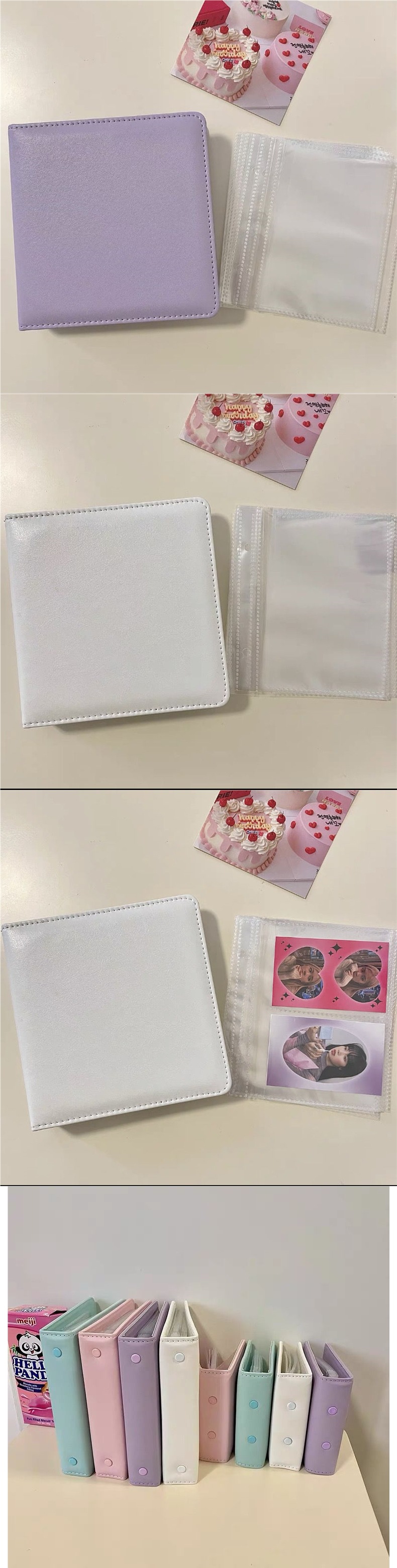 한국 인 스타일 심플 PU 가죽 폴라로이드 사진 앨범 루스리프 3inch 삽입형 2칸 아이돌 사진 카드 수납북스토어 가기