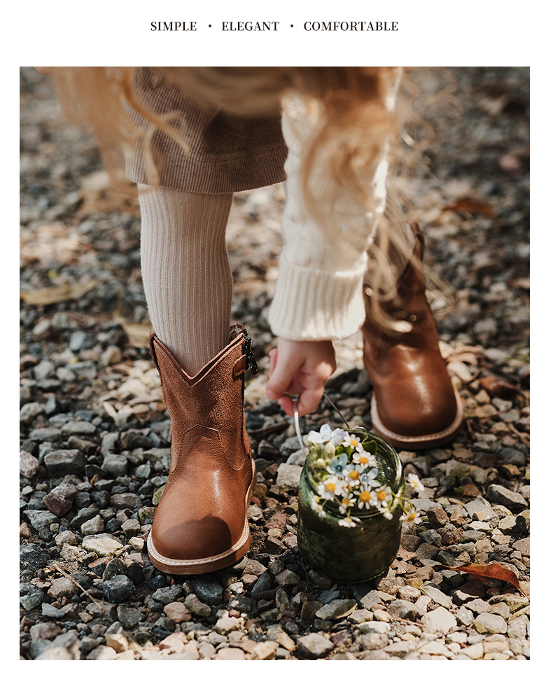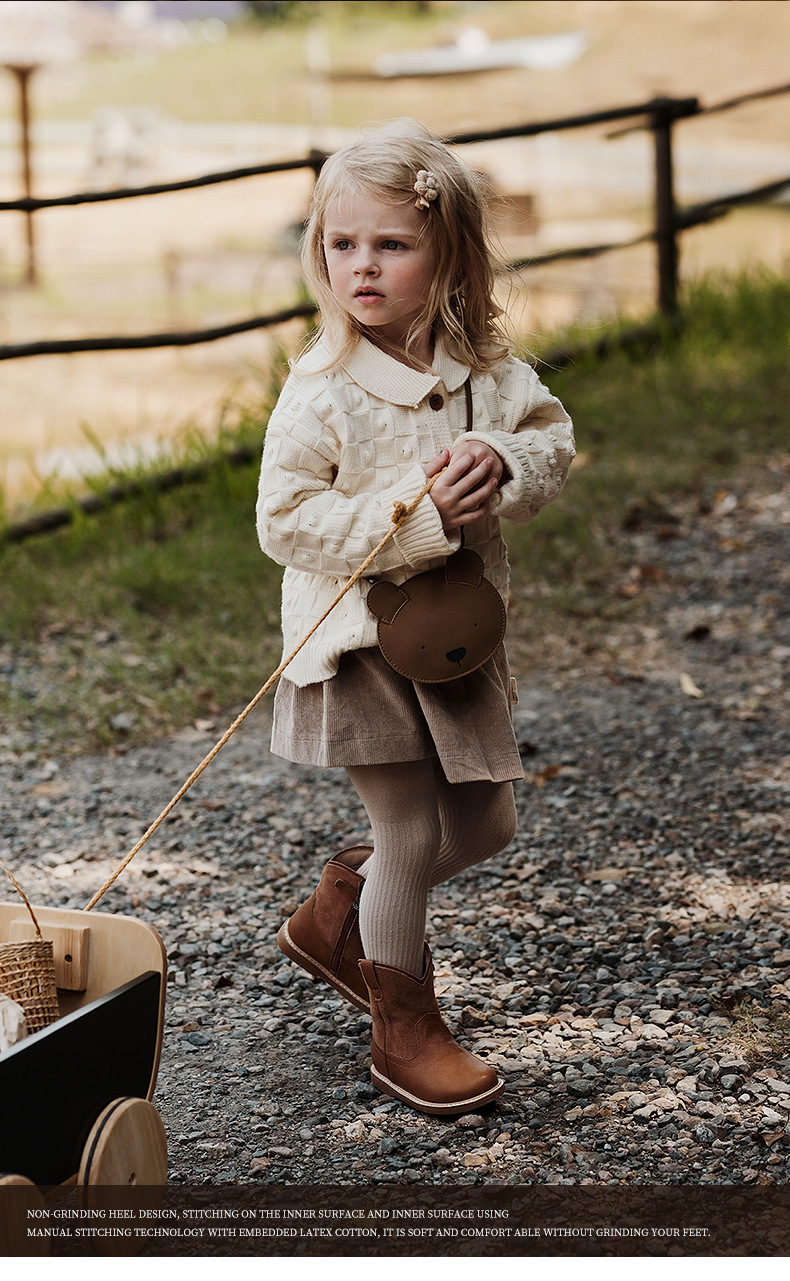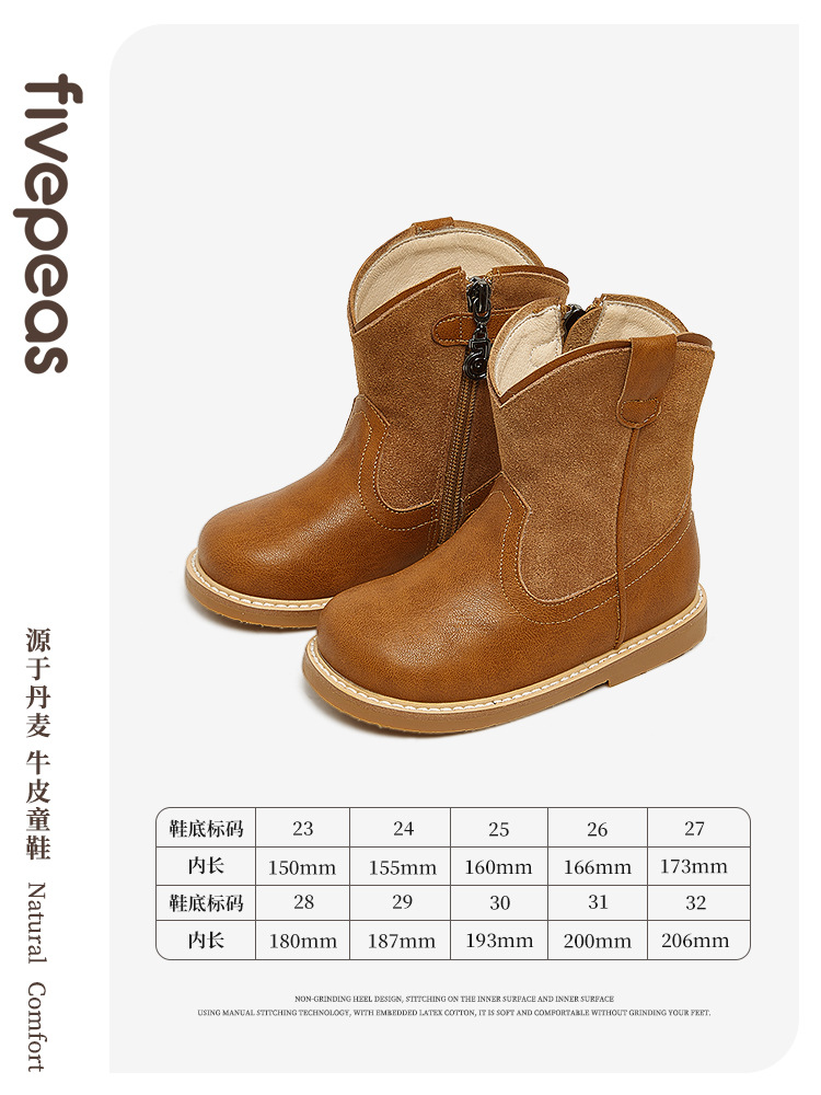 Five Beans Girls Boots 2023 가을 겨울 신작 아동 마틴 부츠 영국 스타일 베이비 숏 부츠 따뜻한 가죽 부츠