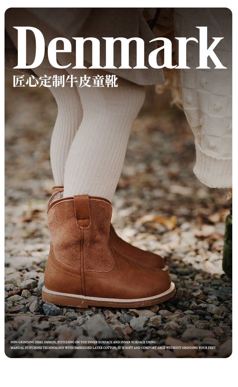 Five Beans Girls Boots 2023 가을 겨울 신작 아동 마틴 부츠 영국 스타일 베이비 숏 부츠 따뜻한 가죽 부츠스토어 가기