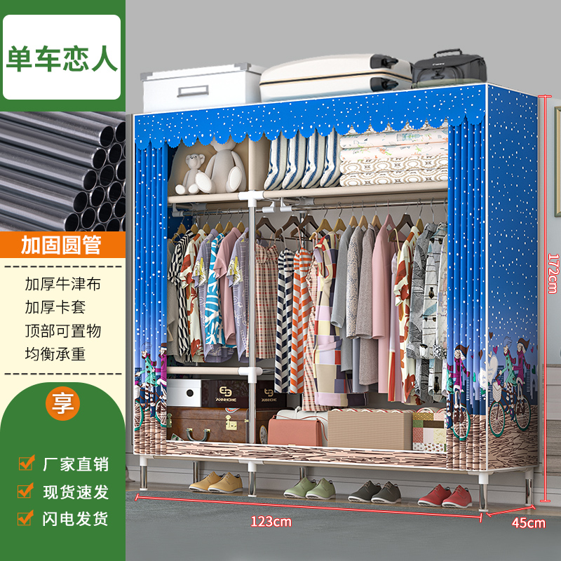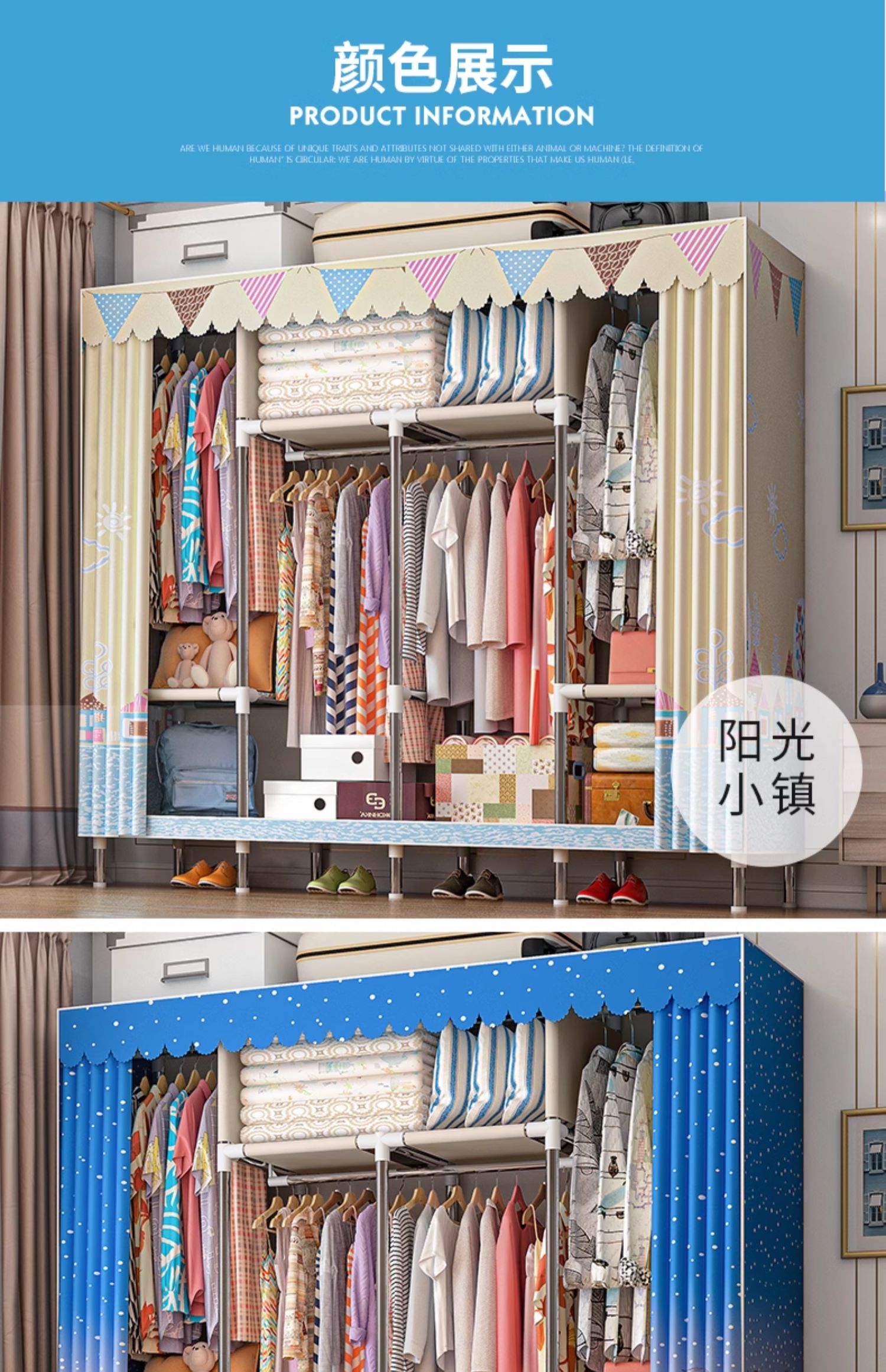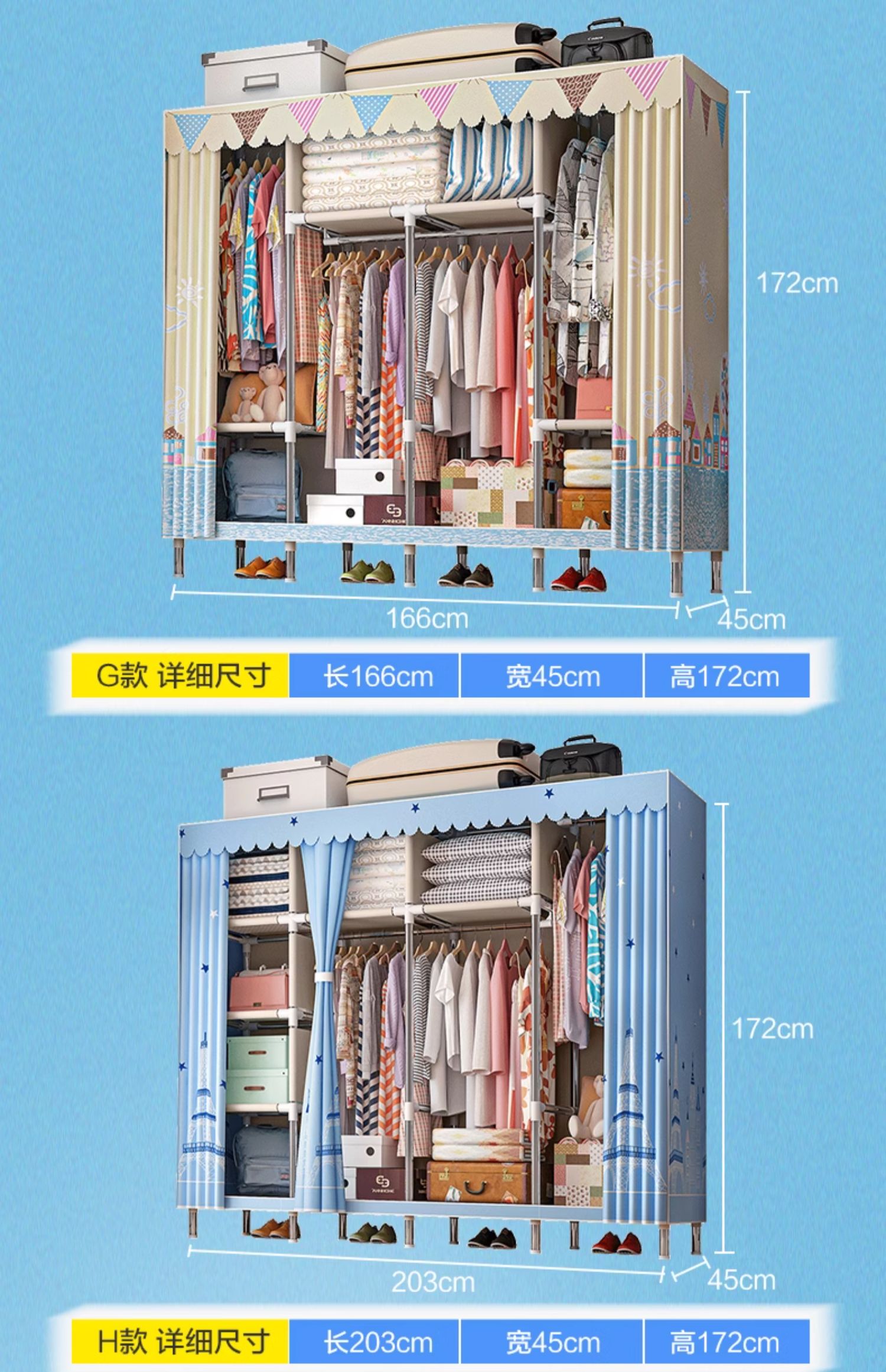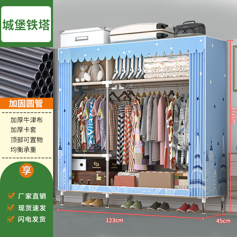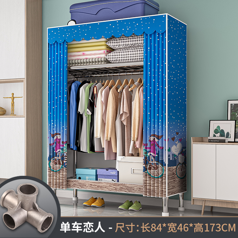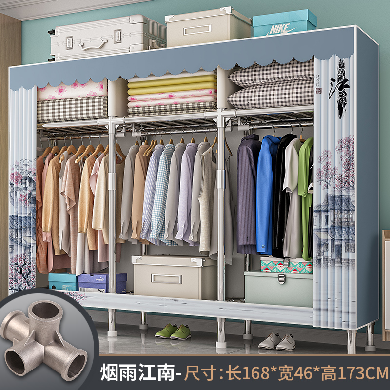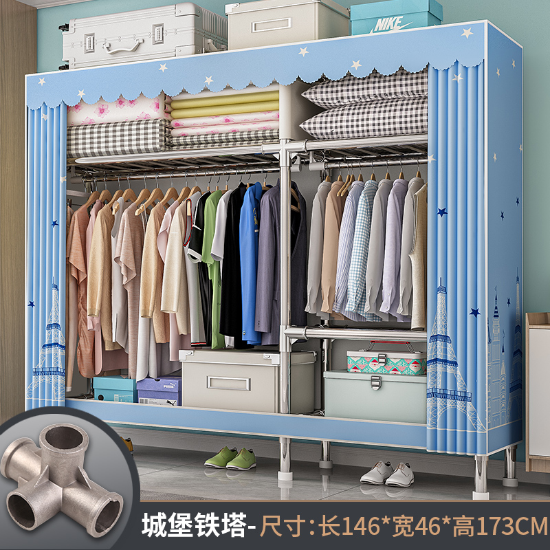 간단한 옷장 현대적인 간단한 천 옷장 강철 파이프 두꺼운 강화 임대 주택 홈 침실 보관 걸이 캐비닛