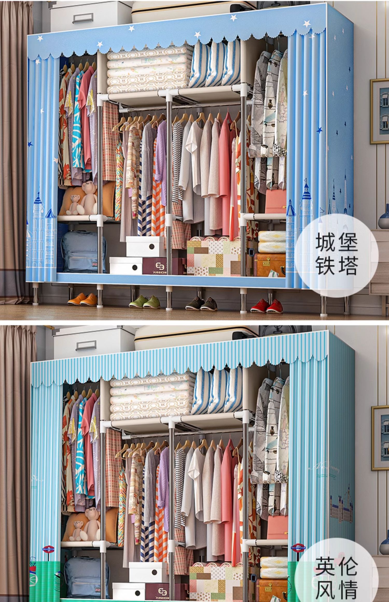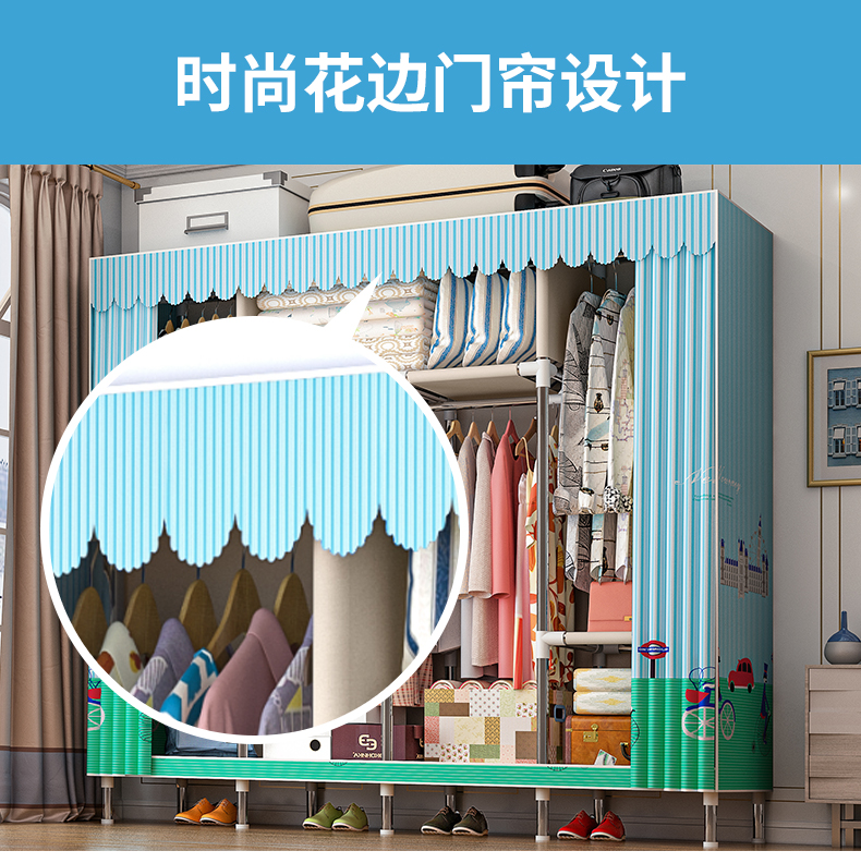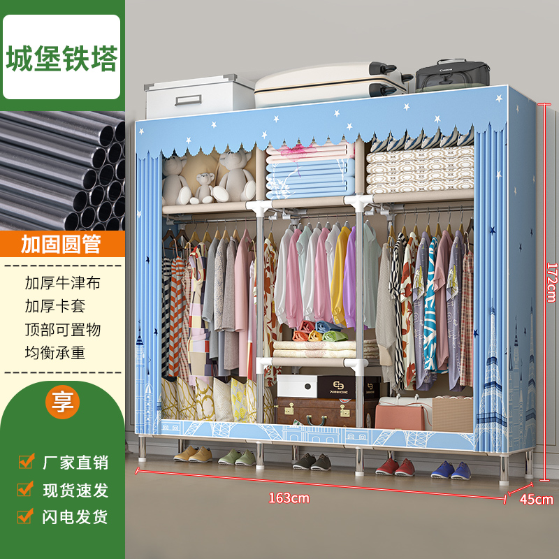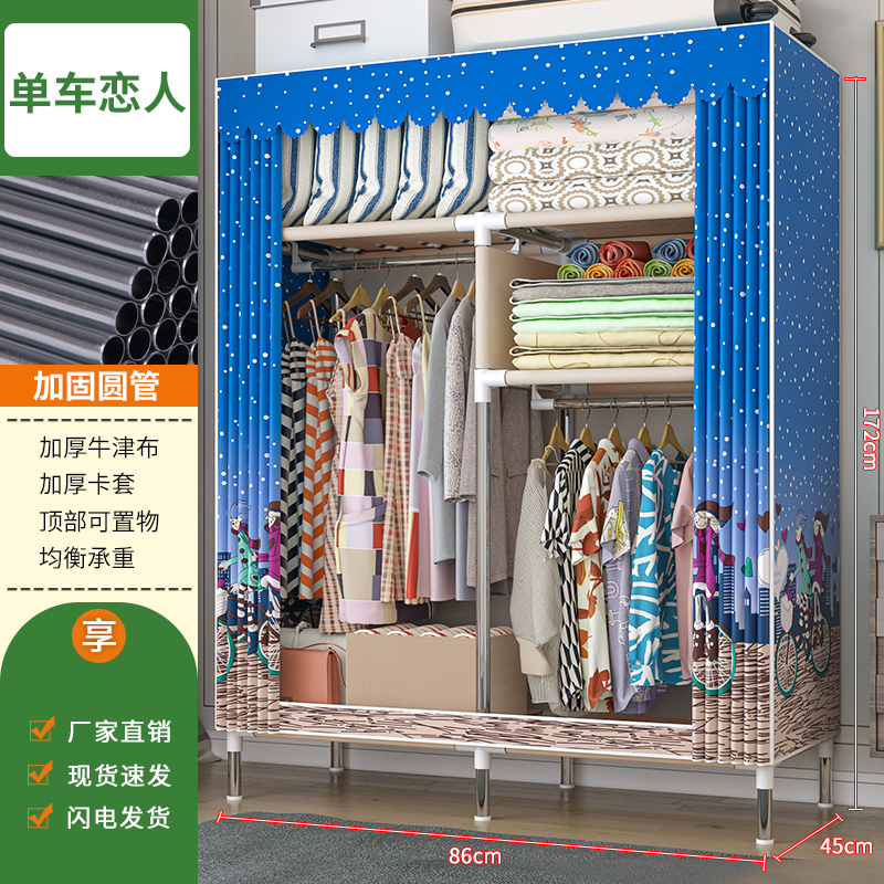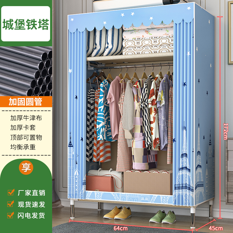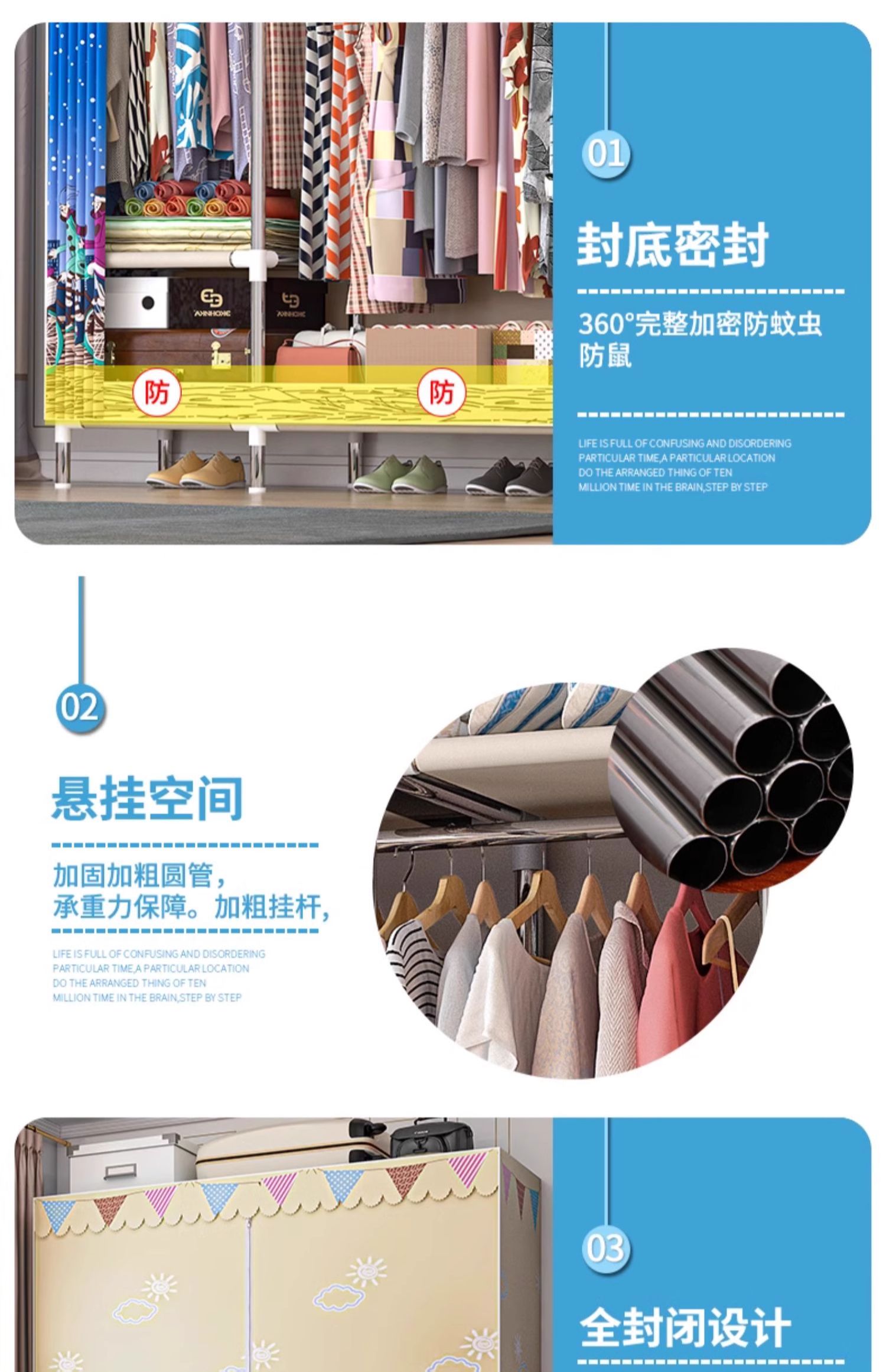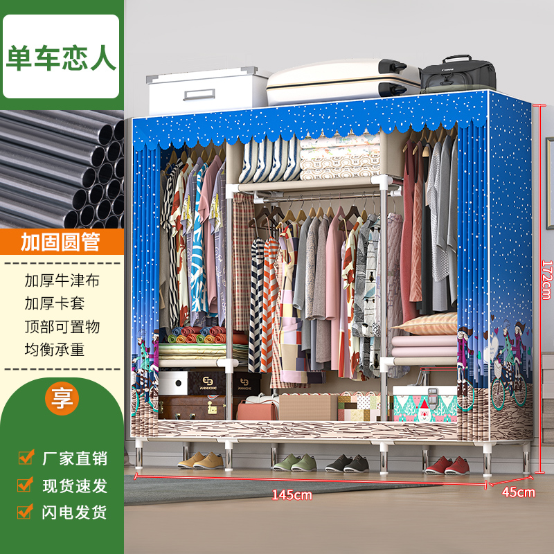 간단한 옷장 현대적인 간단한 천 옷장 강철 파이프 두꺼운 강화 임대 주택 홈 침실 보관 걸이 캐비닛