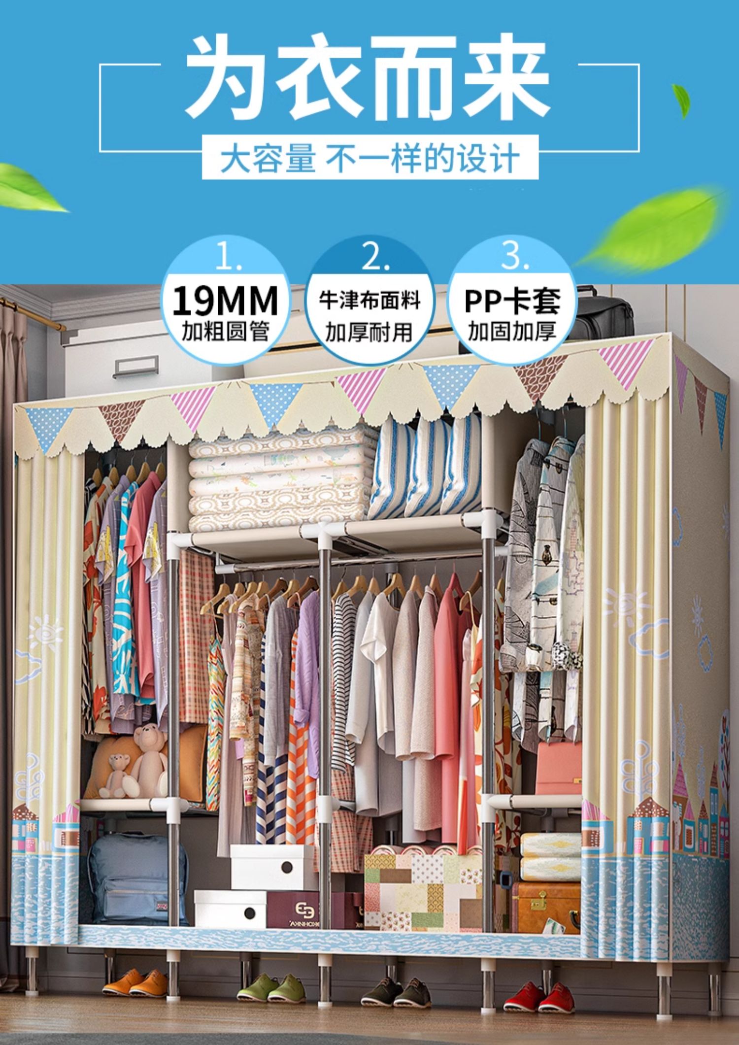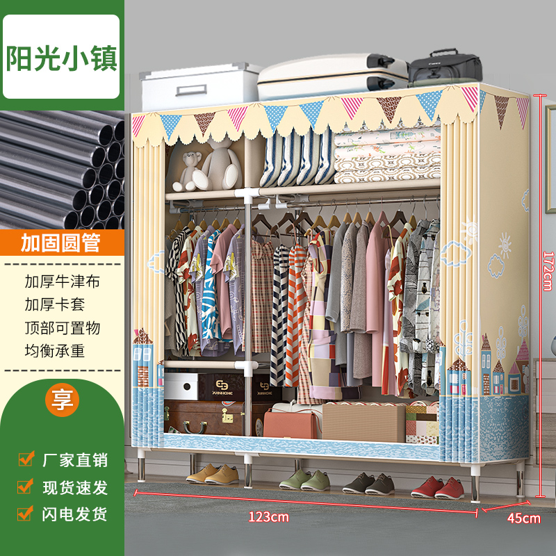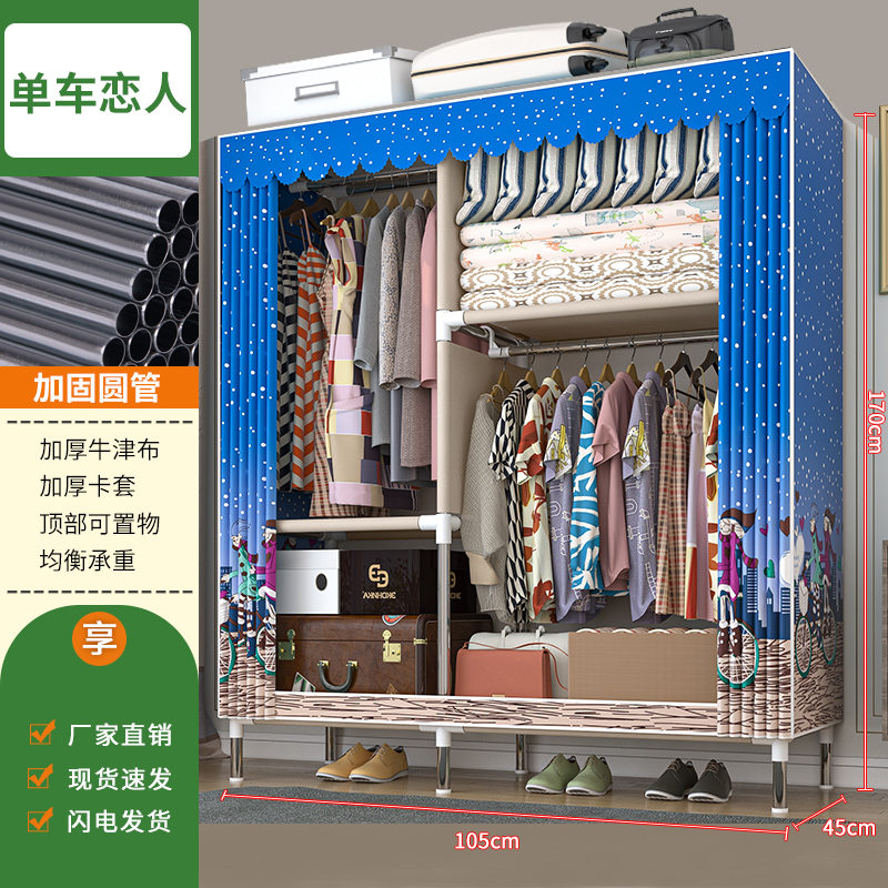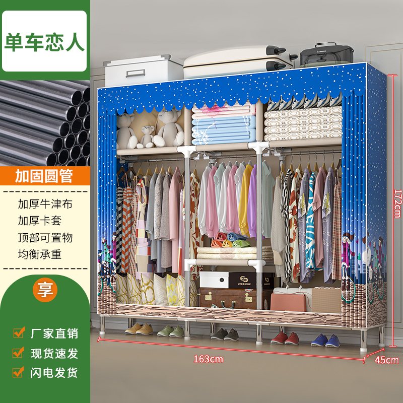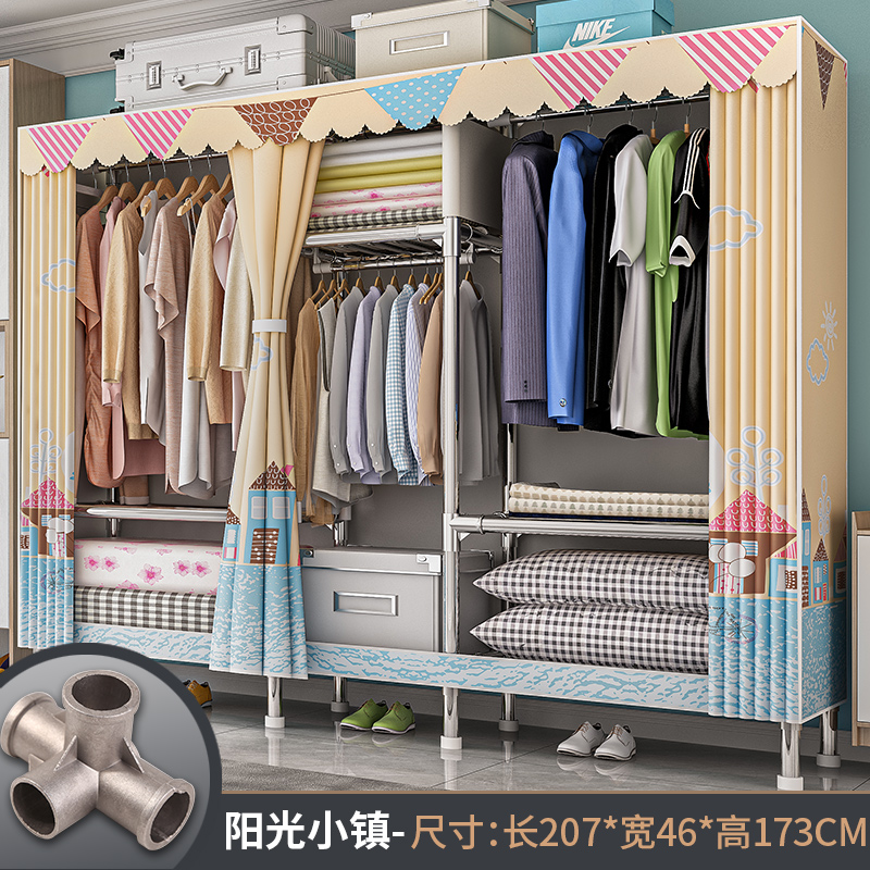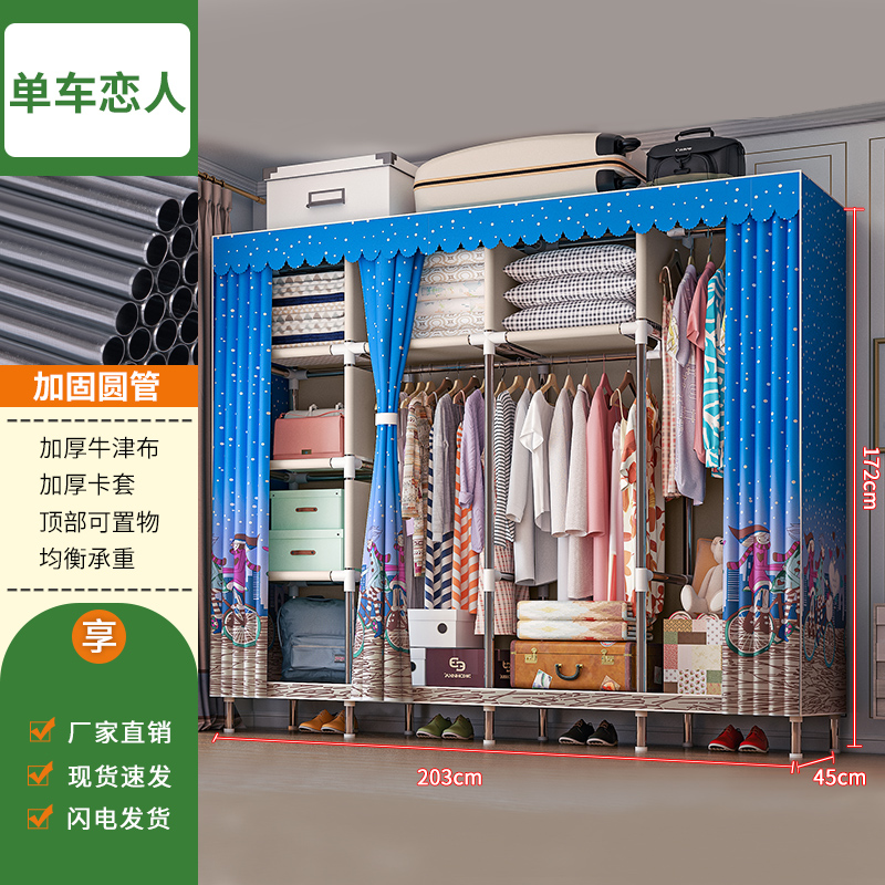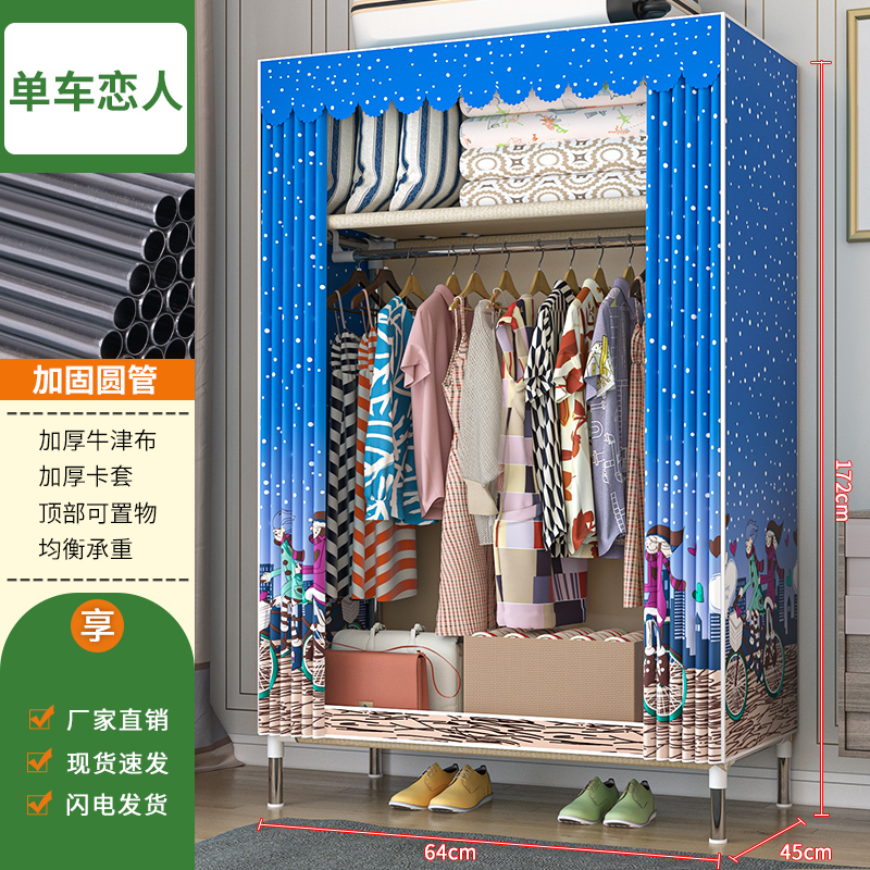 간단한 옷장 현대적인 간단한 천 옷장 강철 파이프 두꺼운 강화 임대 주택 홈 침실 보관 걸이 캐비닛