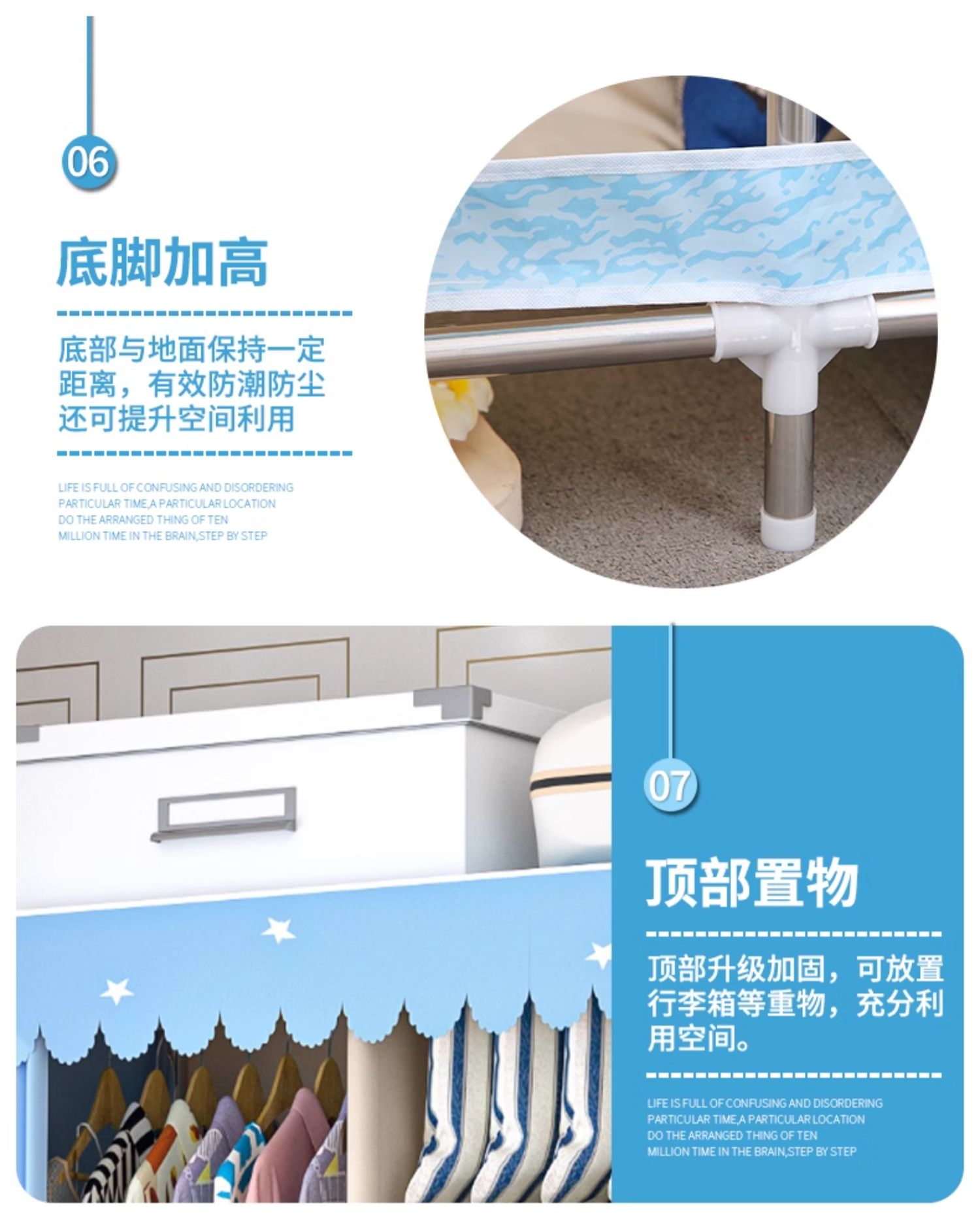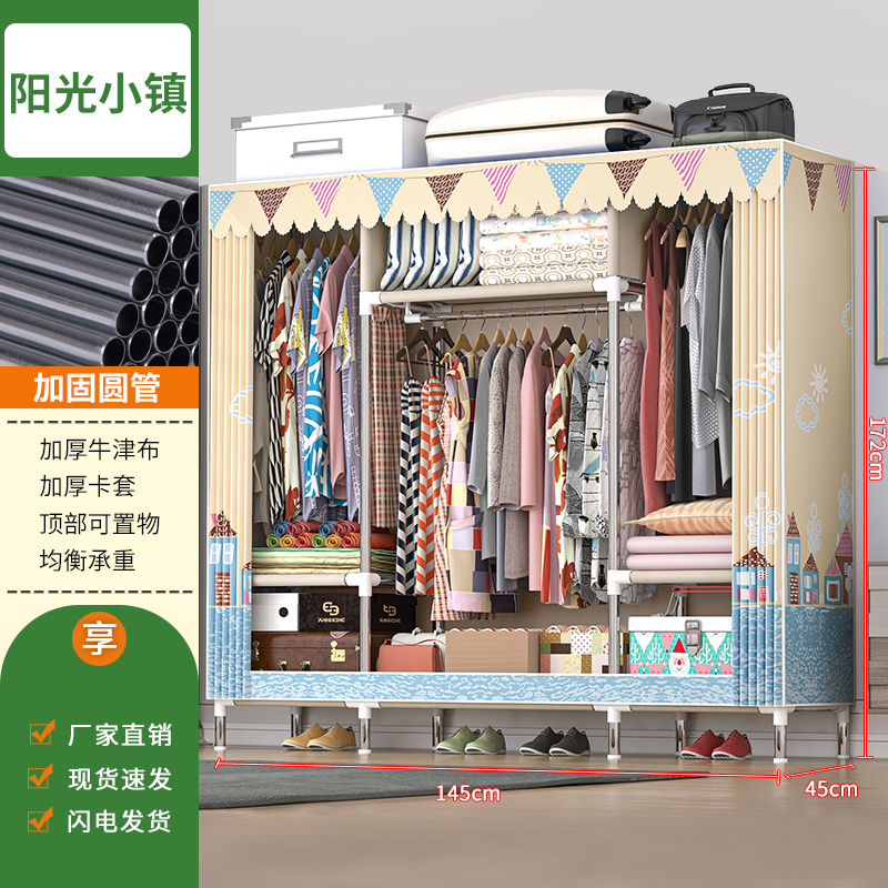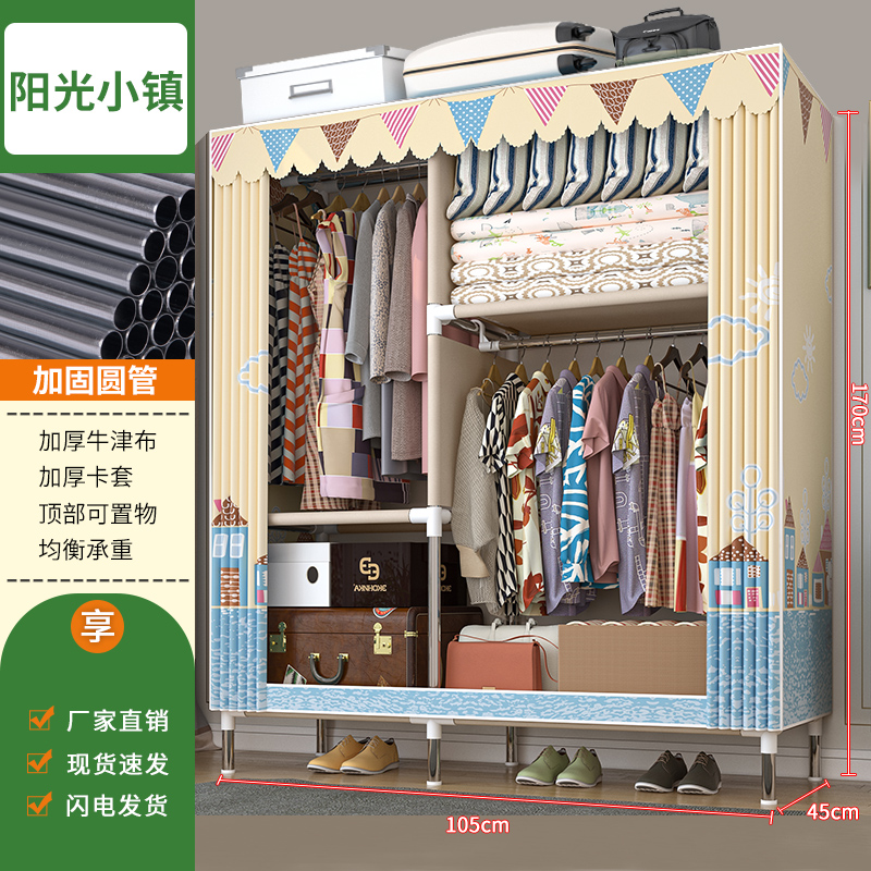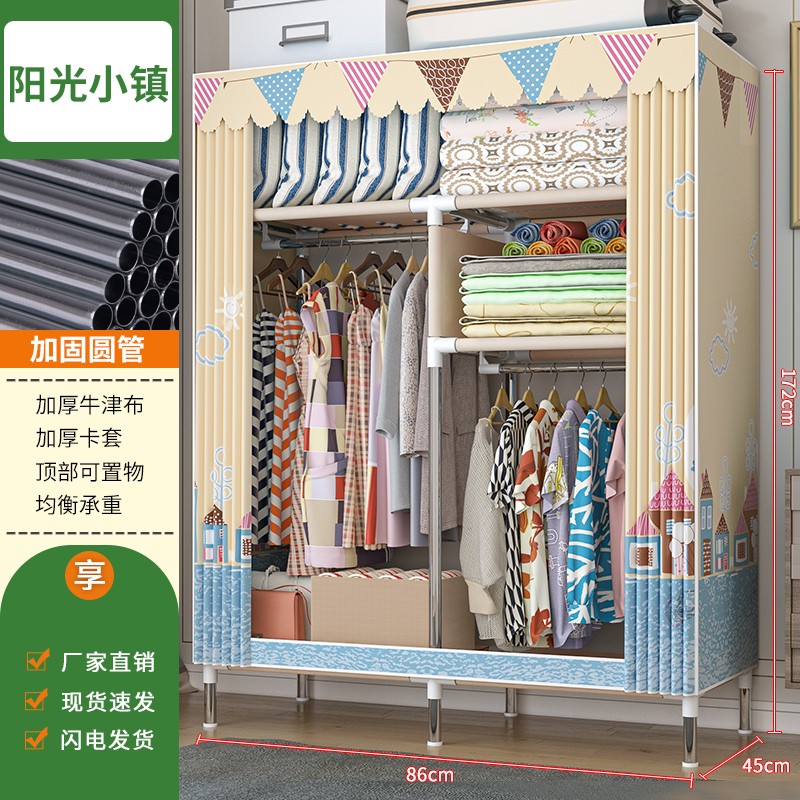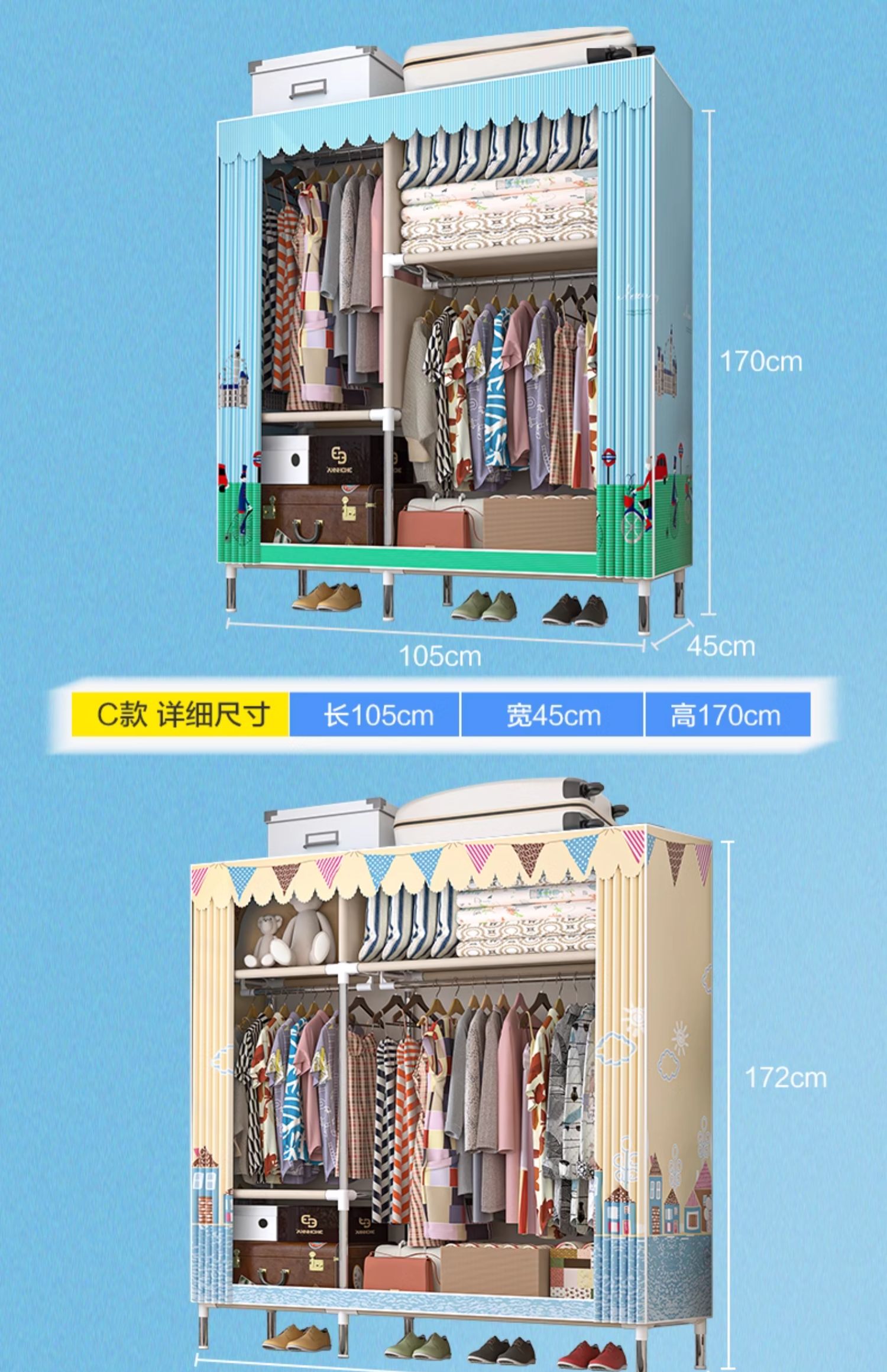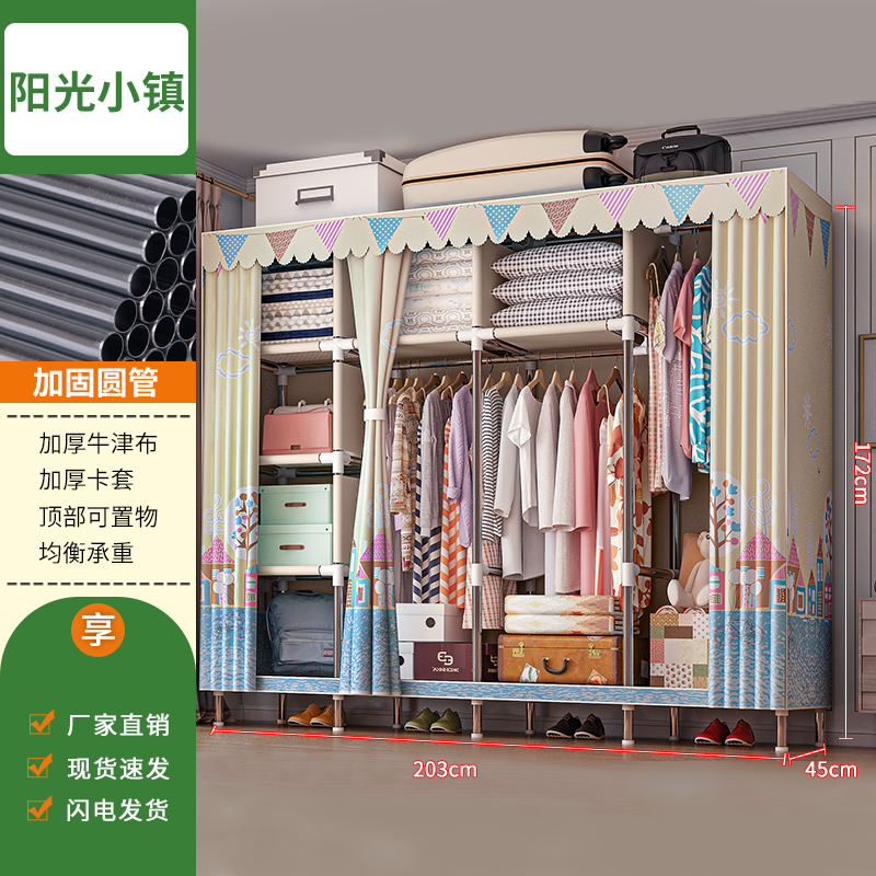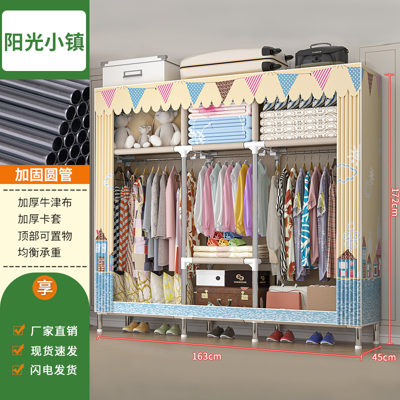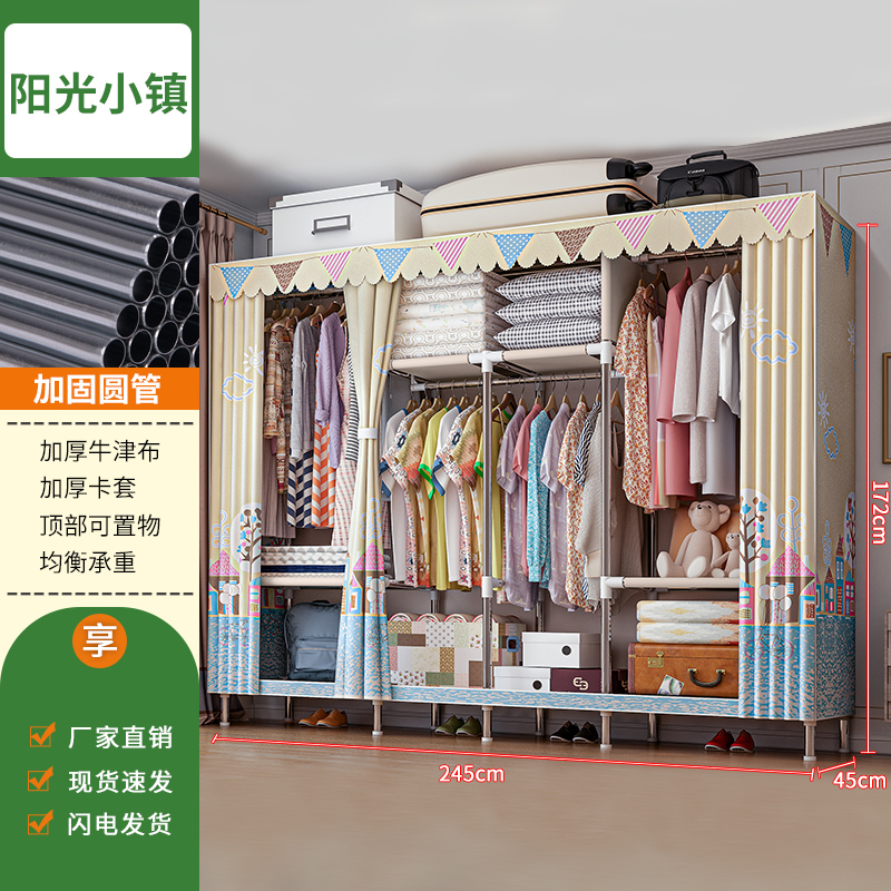 간단한 옷장 현대적인 간단한 천 옷장 강철 파이프 두꺼운 강화 임대 주택 홈 침실 보관 걸이 캐비닛