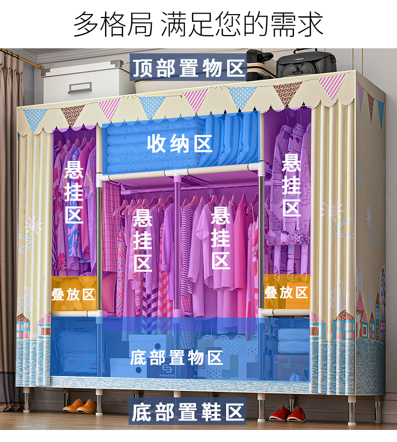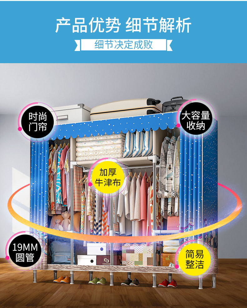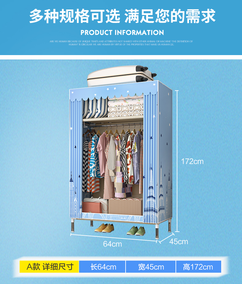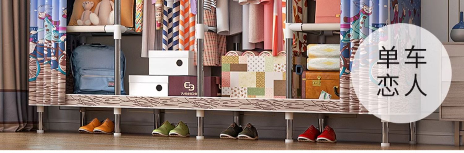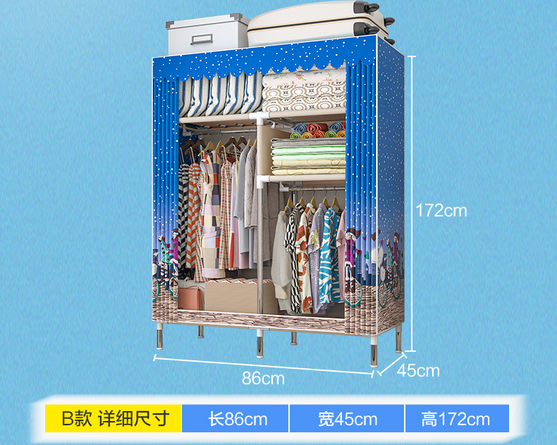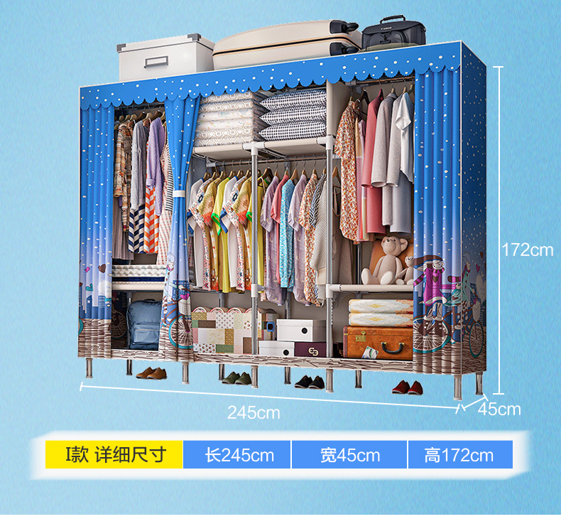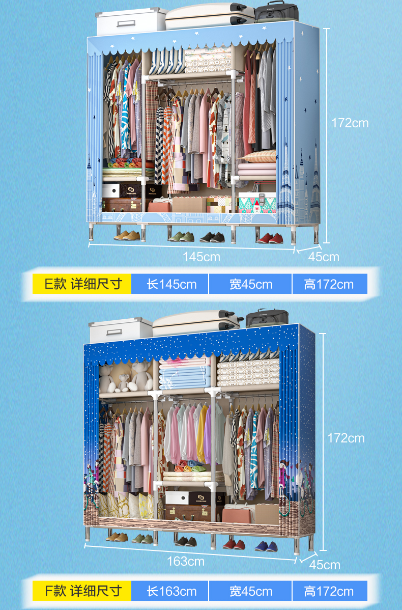 간단한 옷장 현대적인 간단한 천 옷장 강철 파이프 두꺼운 강화 임대 주택 홈 침실 보관 걸이 캐비닛