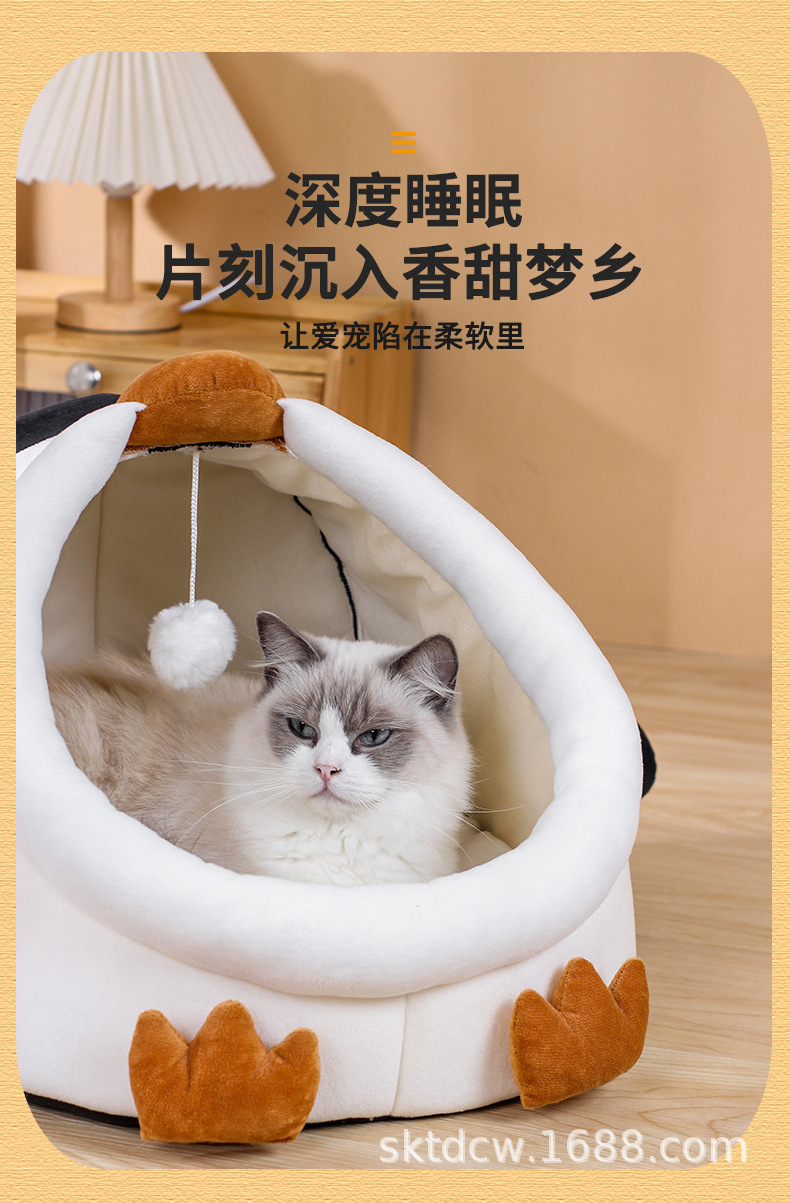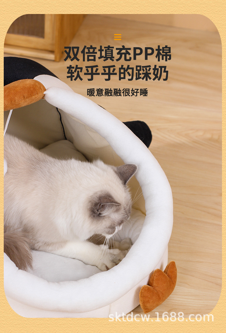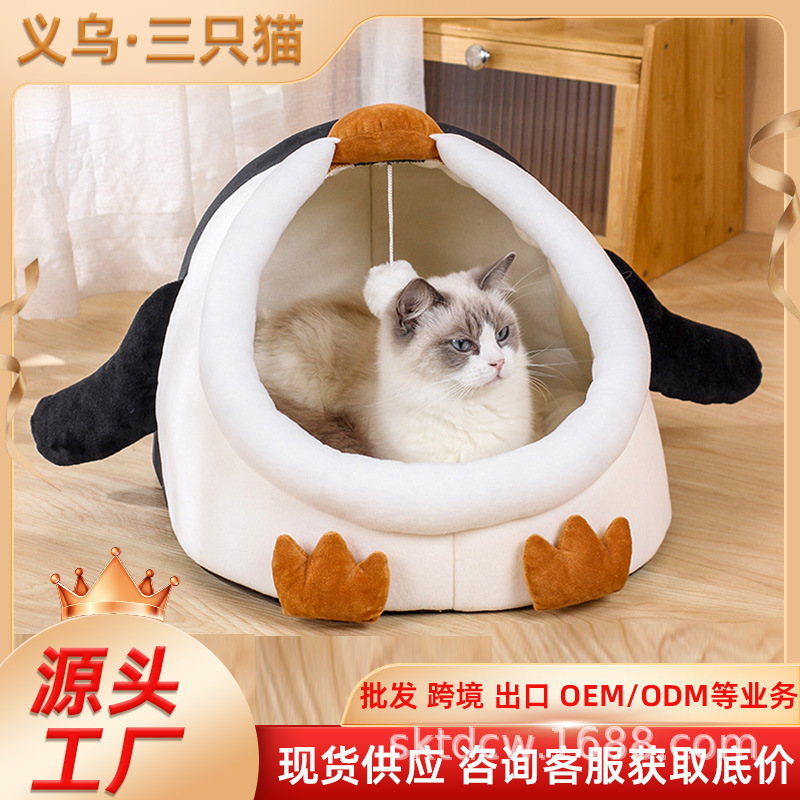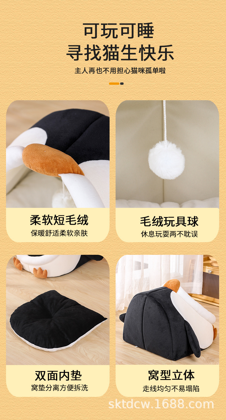 고양이 개집 펭귄 스타일 짧은 플러시 부드럽고 따뜻한 애완 동물 분리형 및 세척 가능한 반 밀폐형 고양이 애완 동물 용품스토어 가기