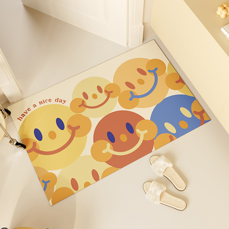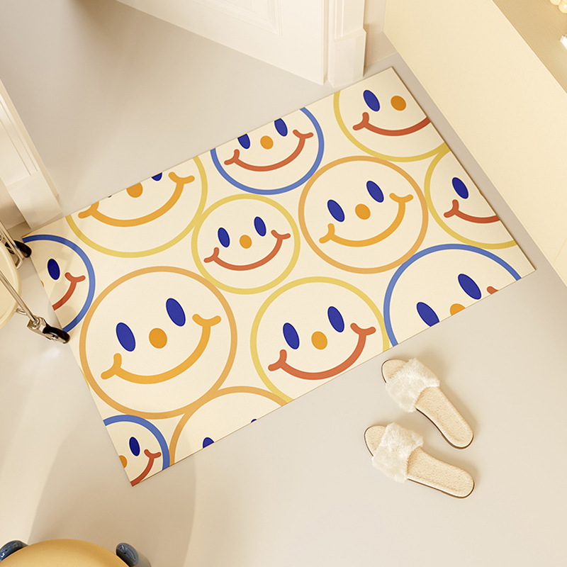 스마일리 페이스 입구 문 바닥 매트 방수 가죽 바닥 매트 욕실 욕실 장식 바닥 매트 입구 발 매트 재고 있음스토어 가기
