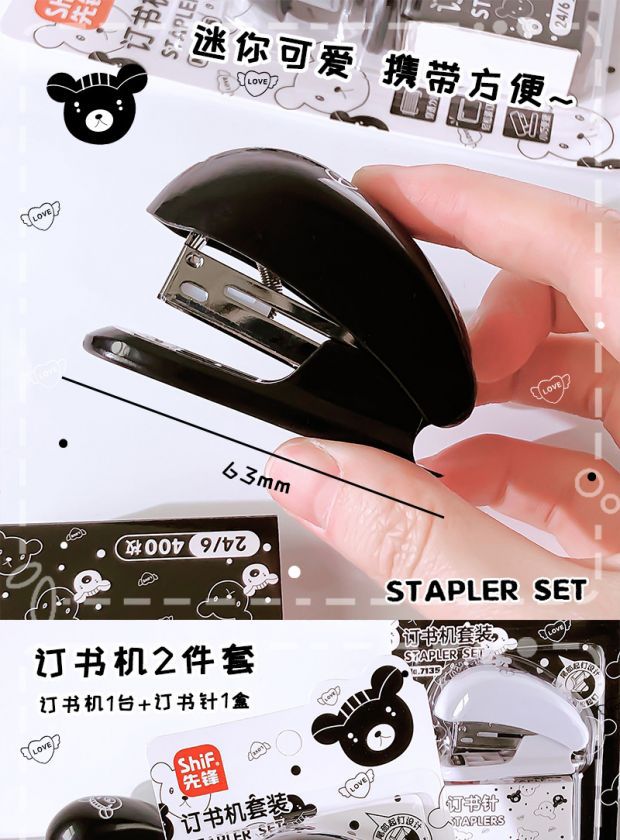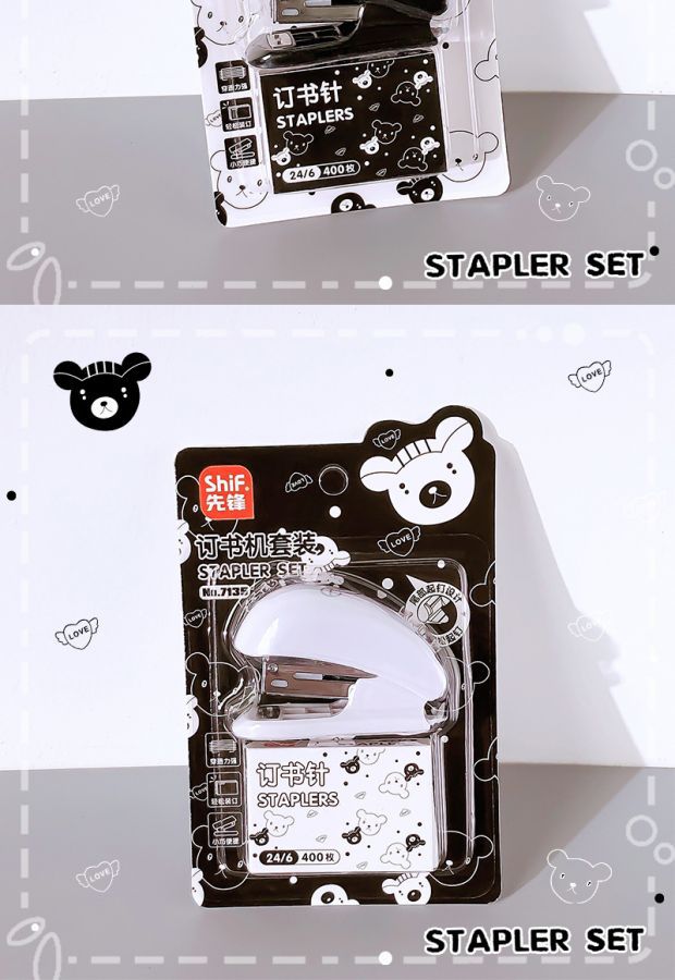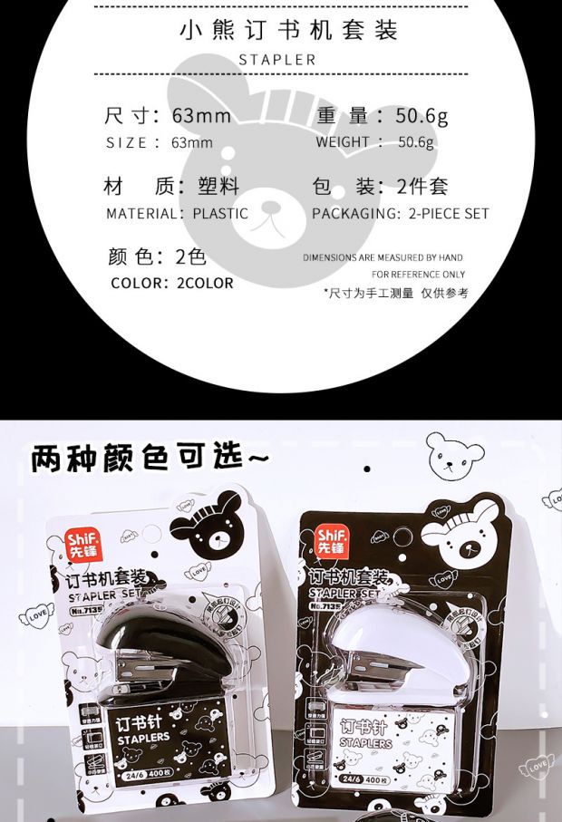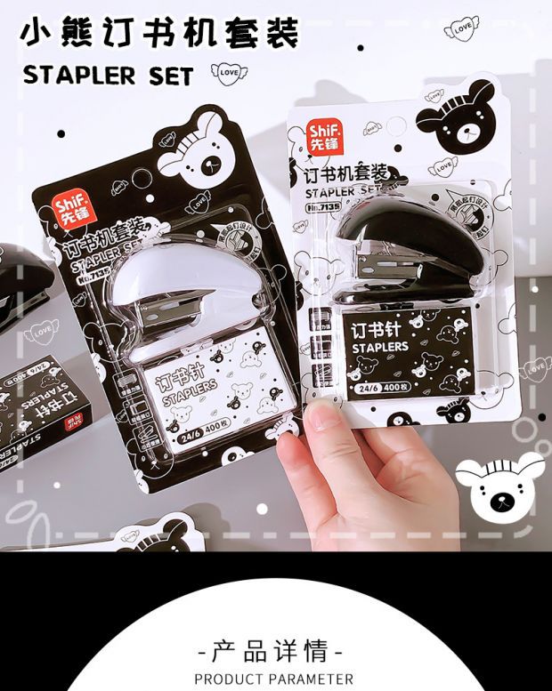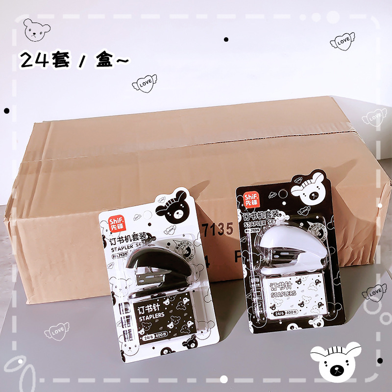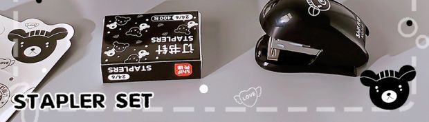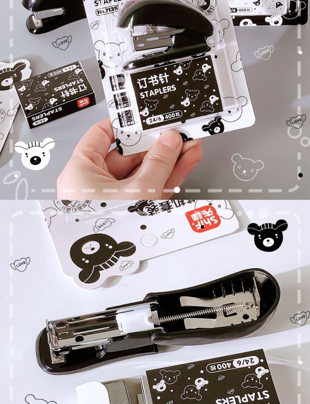Pioneer 7135 흑백 곰 스테이플러 세트 ins 만화 귀여운 사무실 바인더 학습 스테이플러스토어 가기