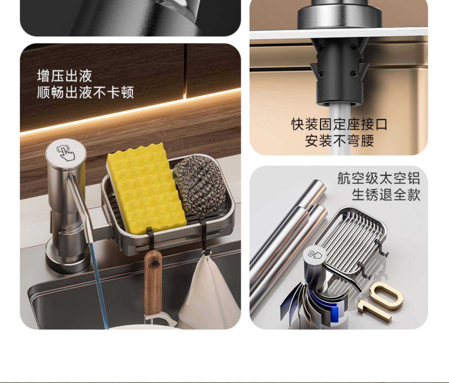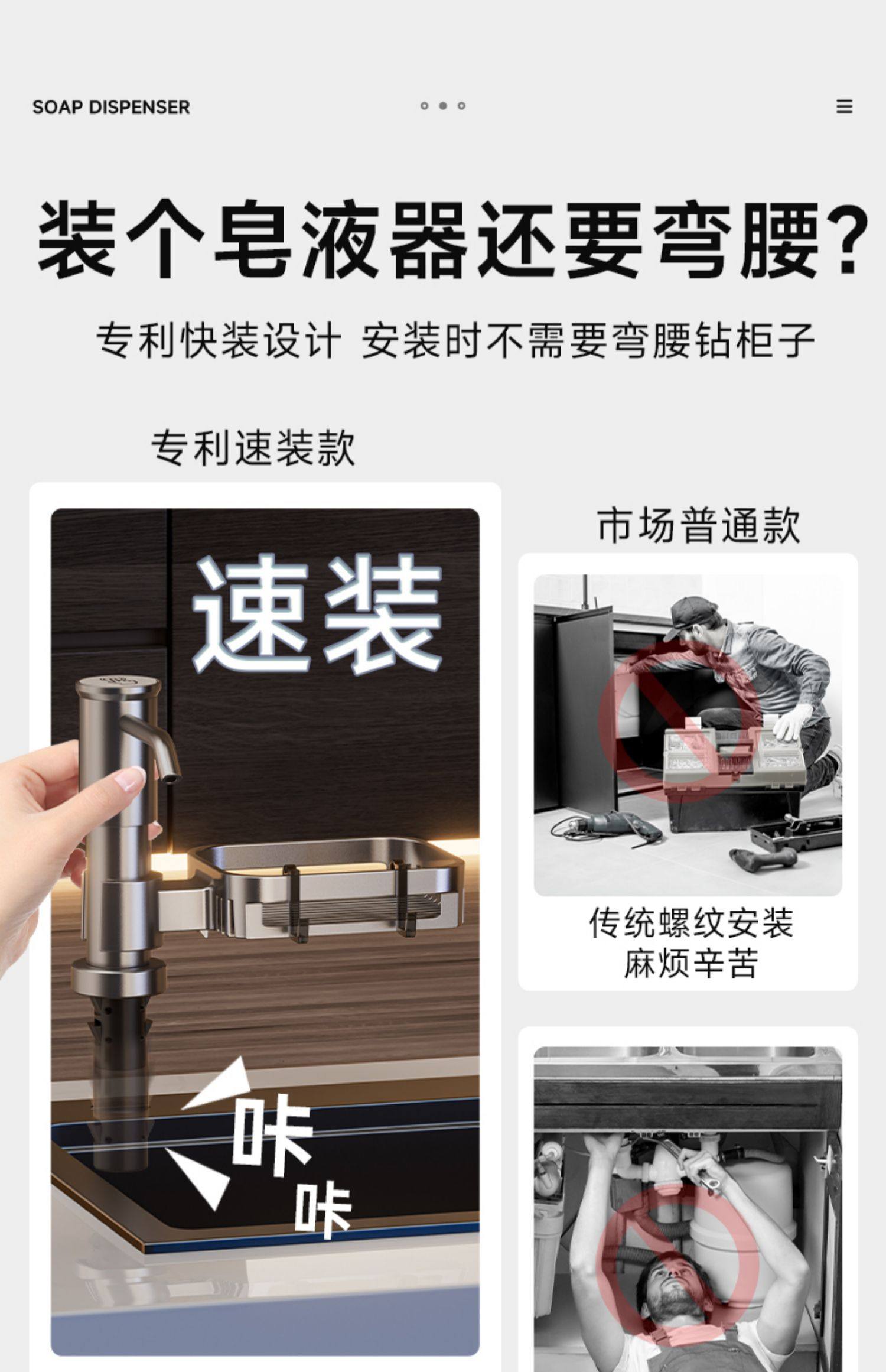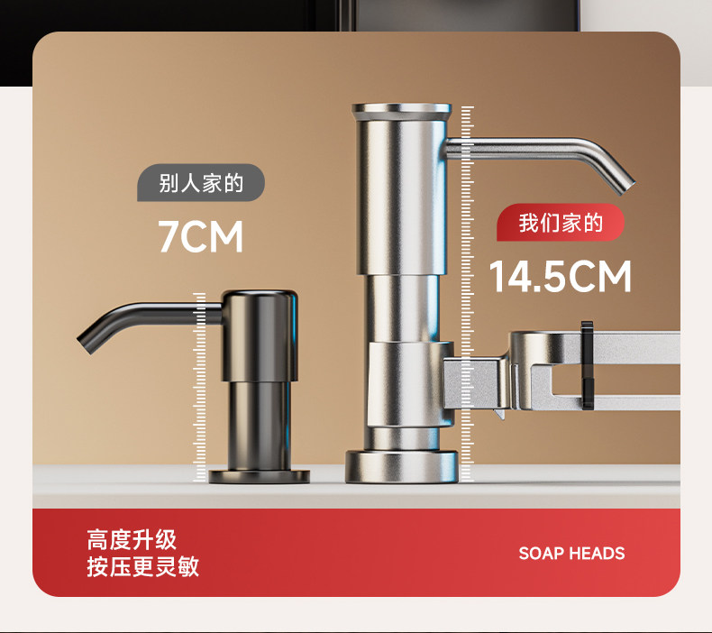 주방 싱크대 비누 디스펜서, 설거지용 세제 압출기, 스페이스 알루미늄 높이 조절 연장형 압출기, 설거지용 세제통