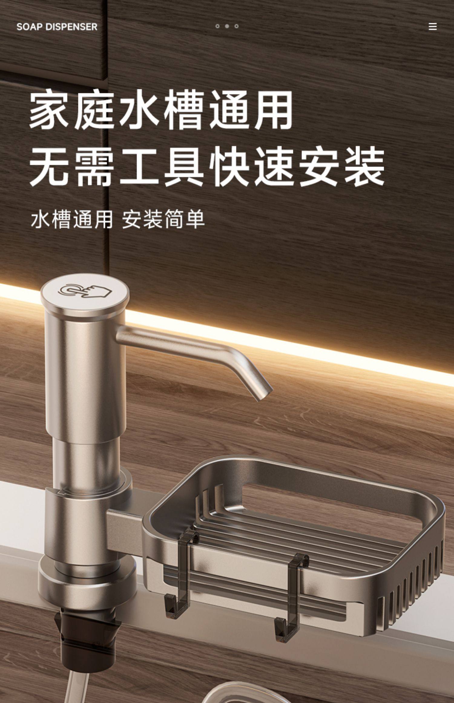 주방 싱크대 비누 디스펜서, 설거지용 세제 압출기, 스페이스 알루미늄 높이 조절 연장형 압출기, 설거지용 세제통스토어 가기