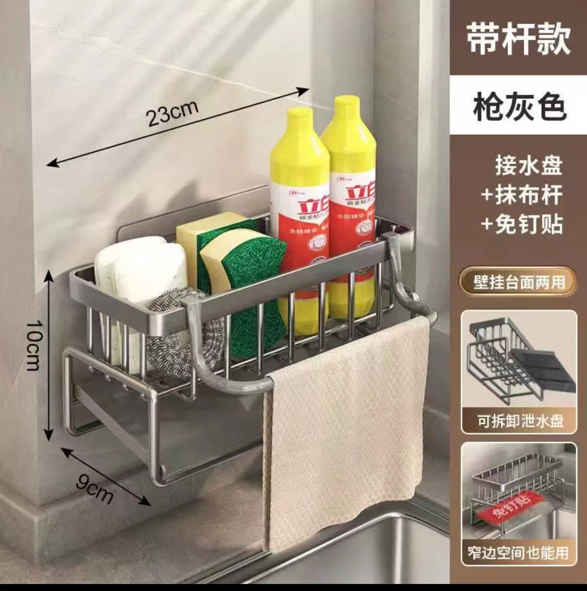 주방 수납 선반 스펀지 흰색 천 주방 세제 수납 선반 조리대 걸레 선반 싱크대 배수구 스테인레스 스틸