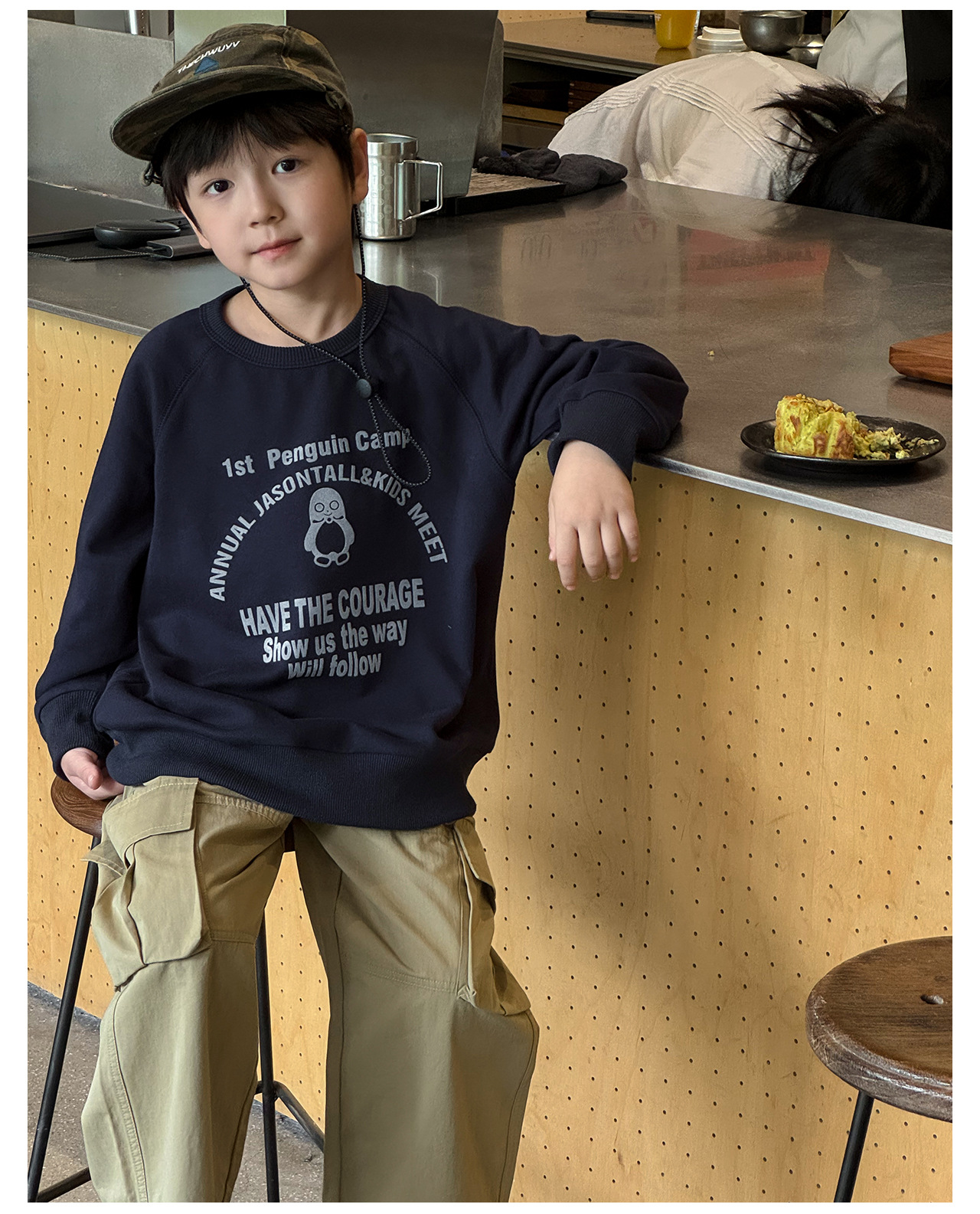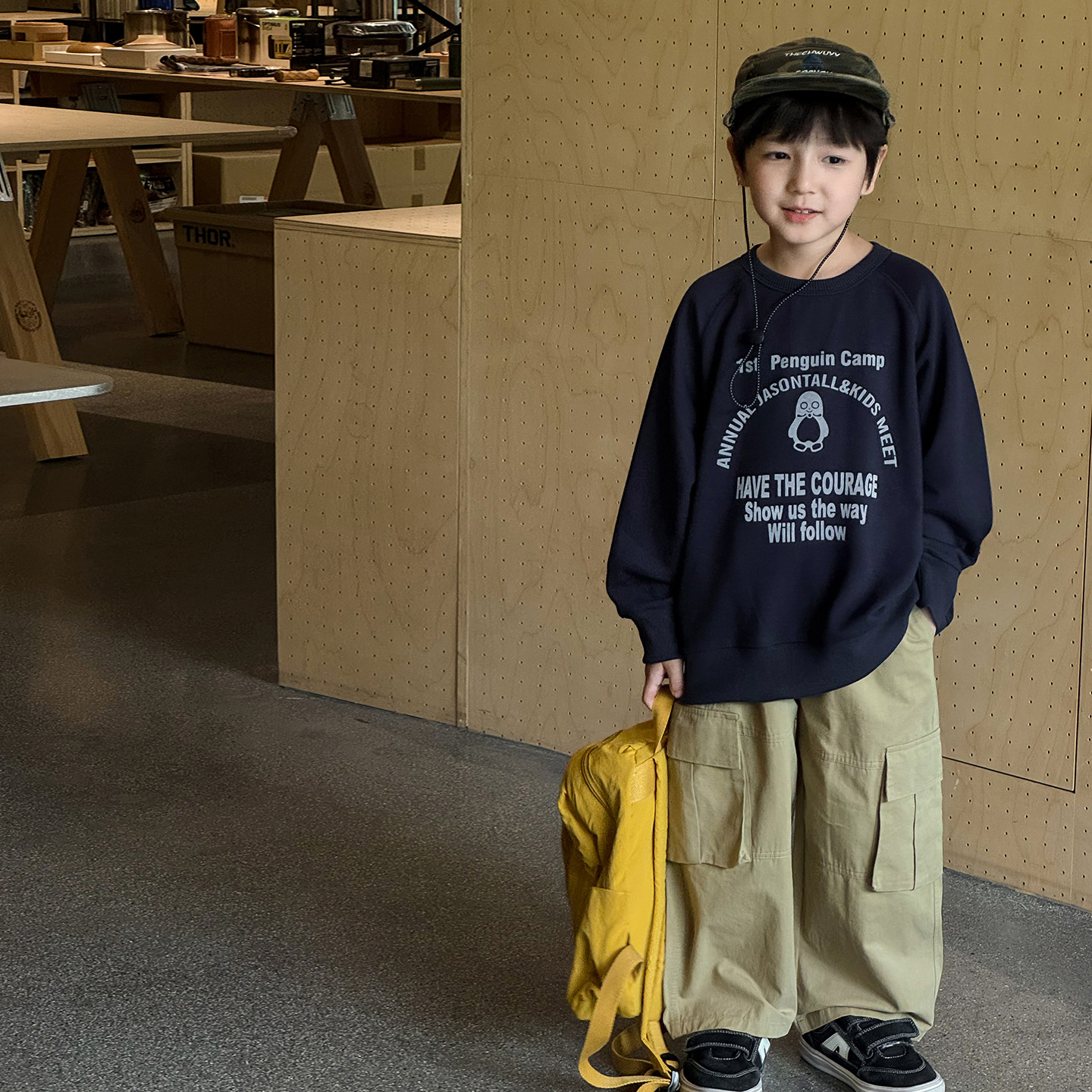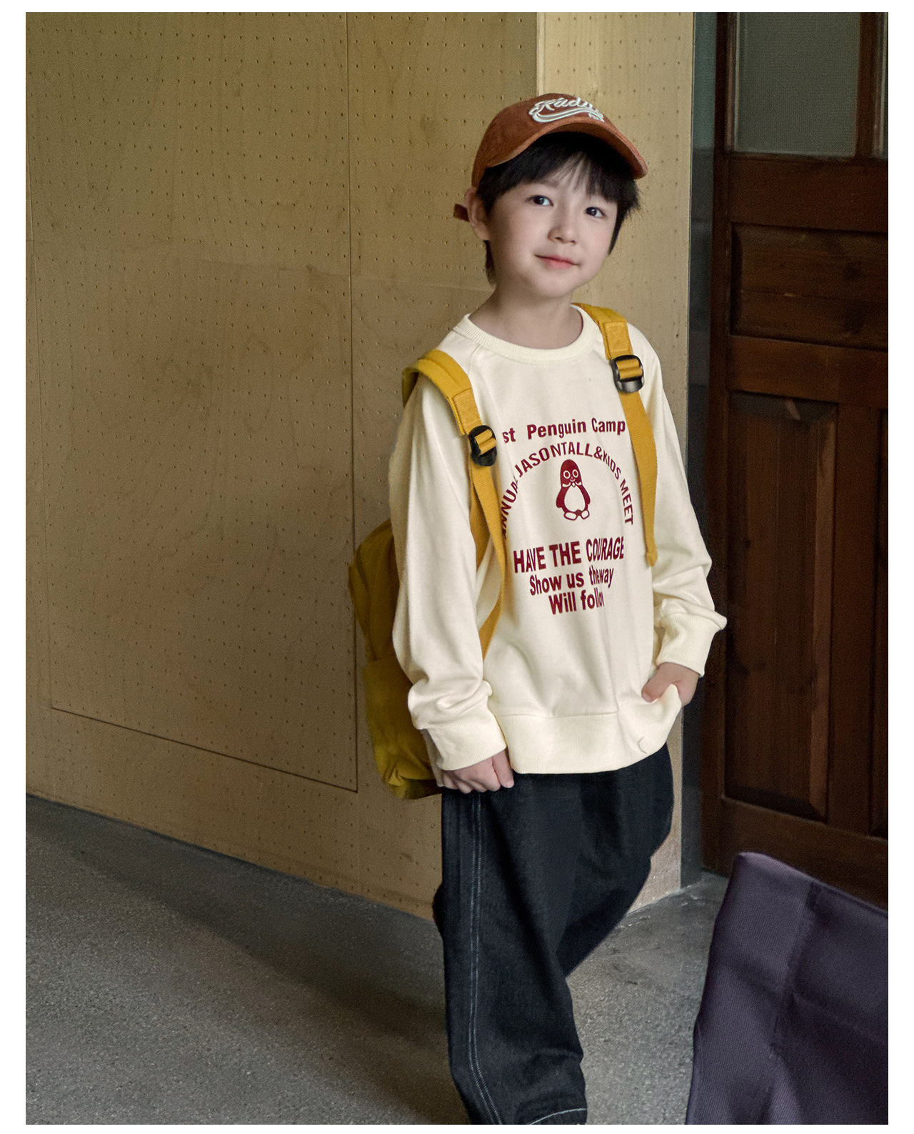 통쿠2026 남아용 봄 스타일 호주 직조 의류, 세련된 레터링 프린트, 중소형 아동용 라운드넥 아동 스웨트셔츠 트렌디스토어 가기