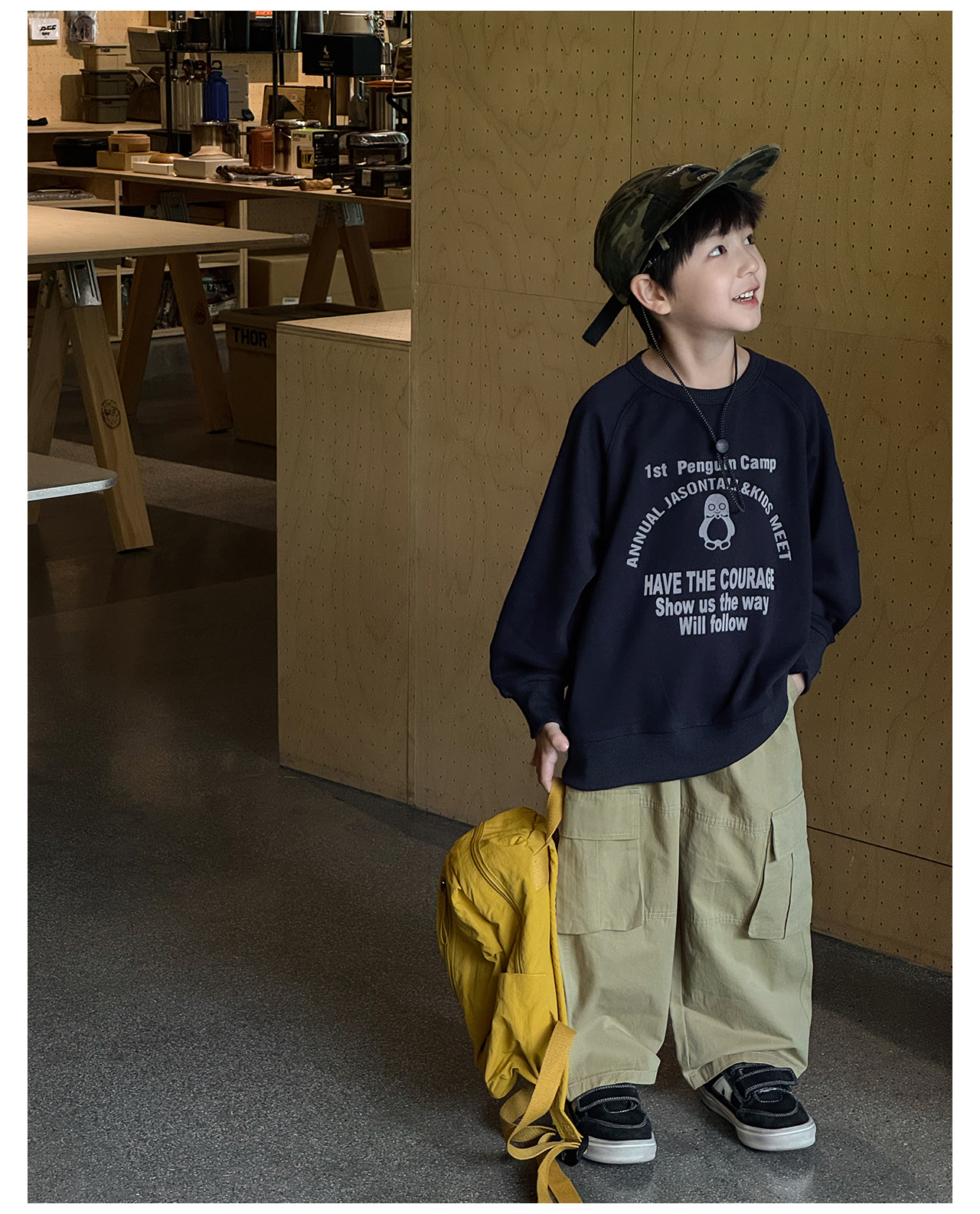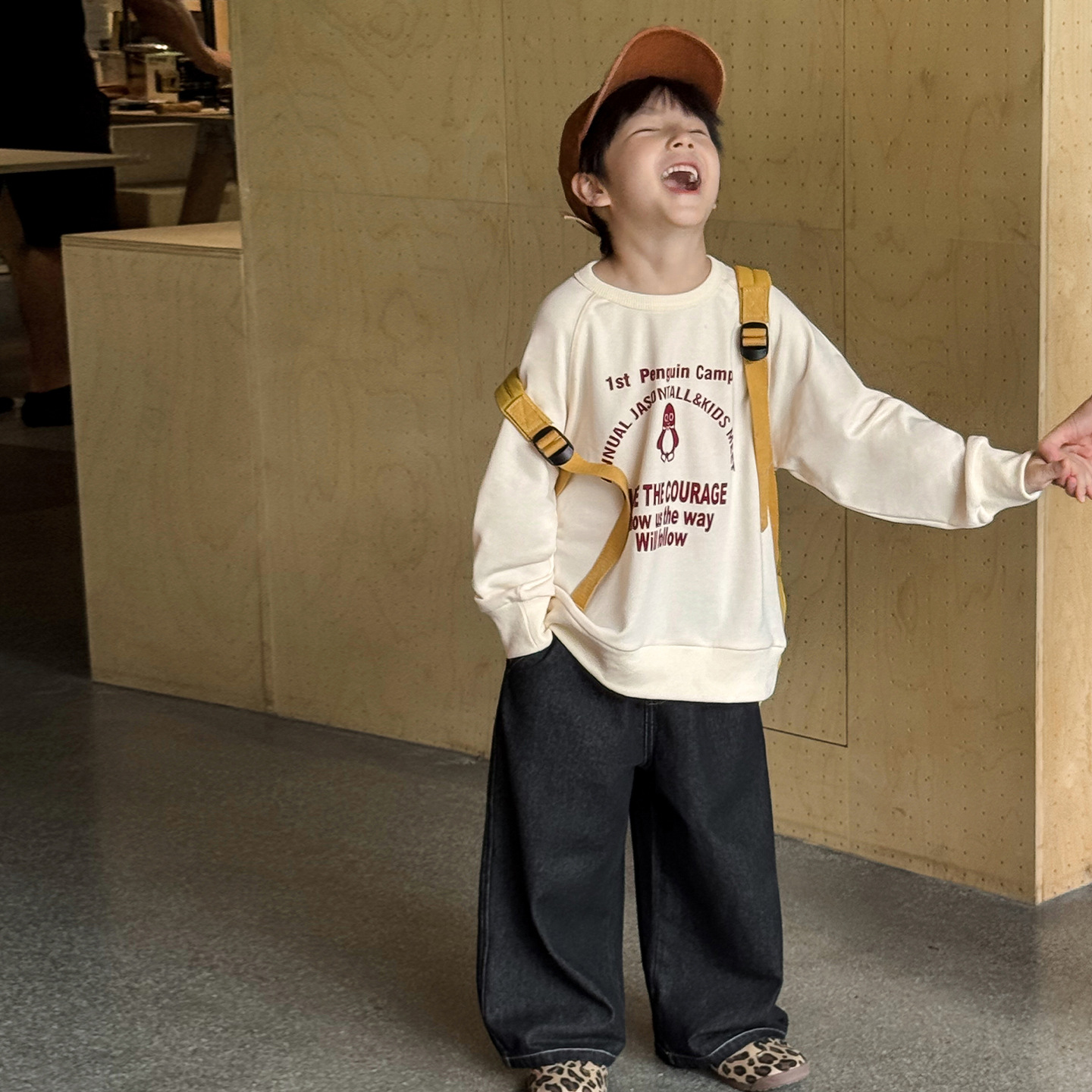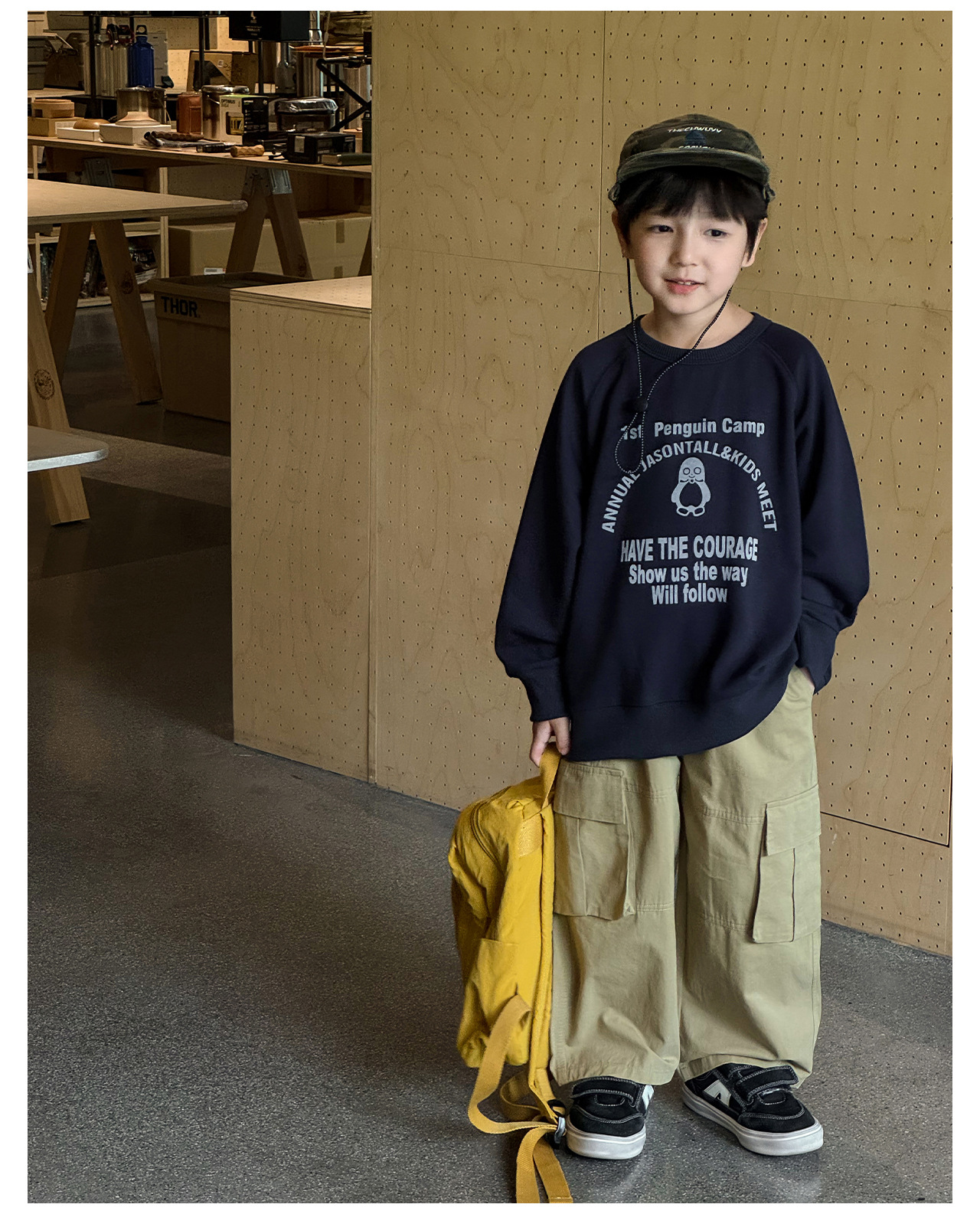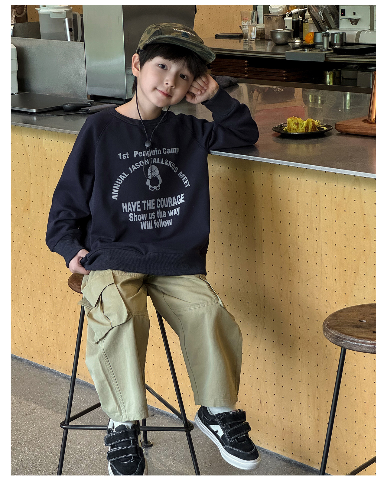 통쿠2026 남아용 봄 스타일 호주 직조 의류, 세련된 레터링 프린트, 중소형 아동용 라운드넥 아동 스웨트셔츠 트렌디스토어 가기