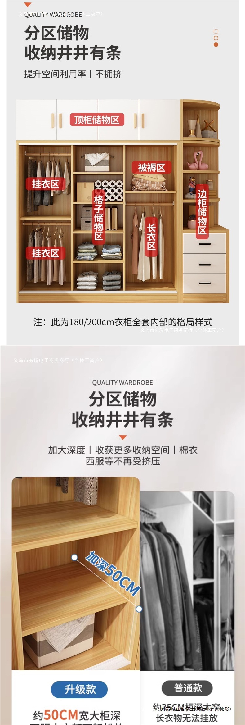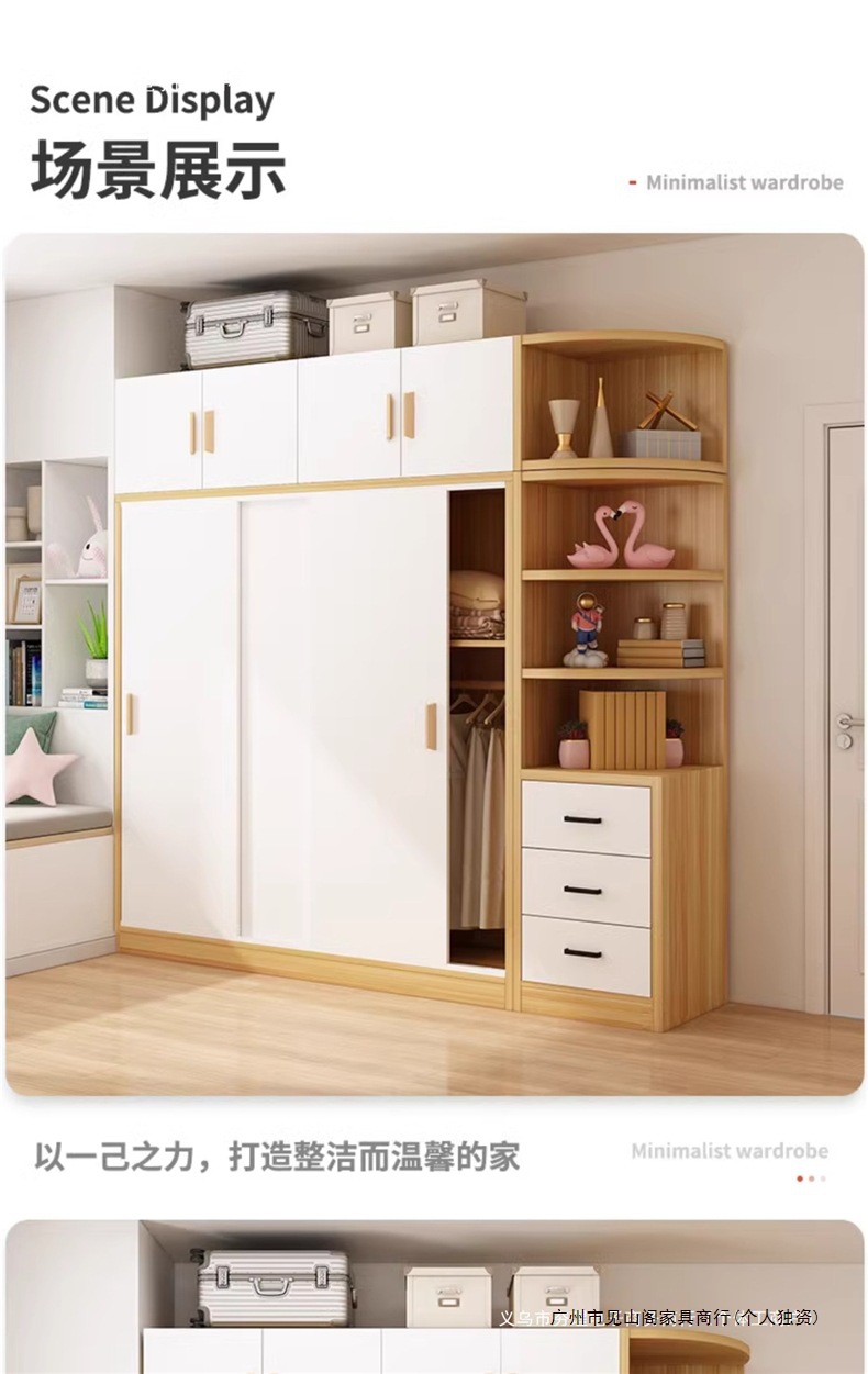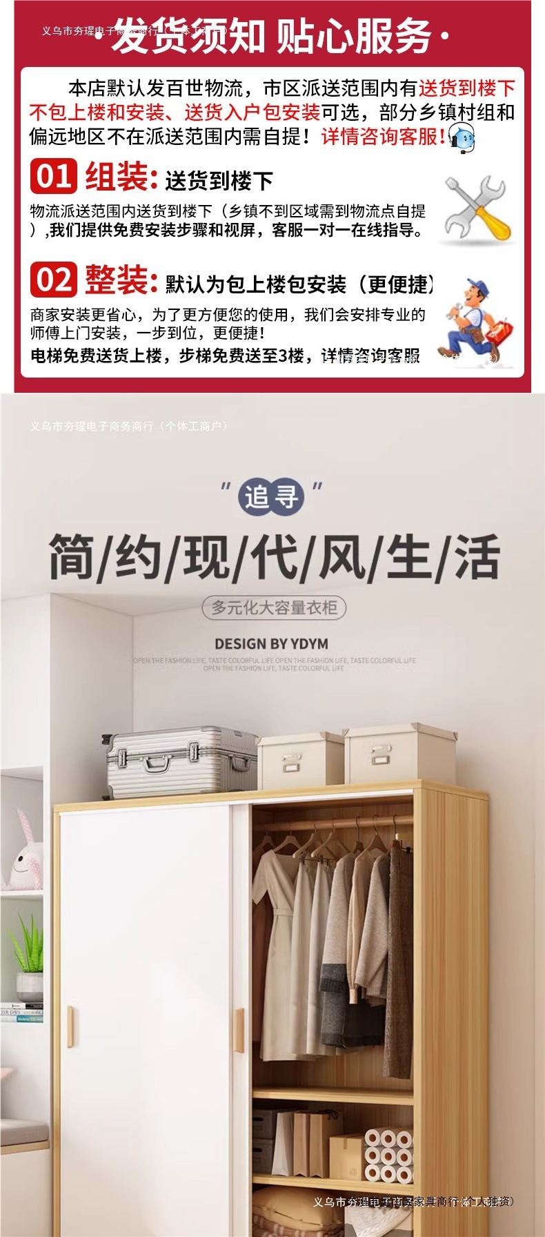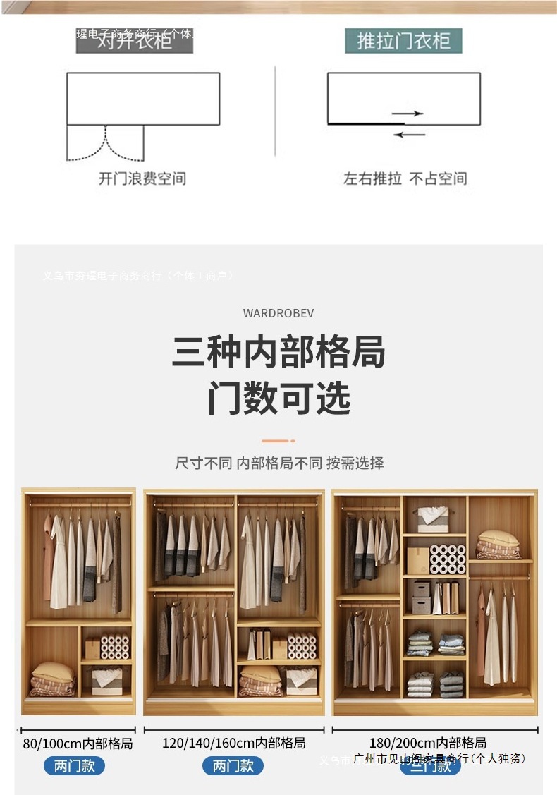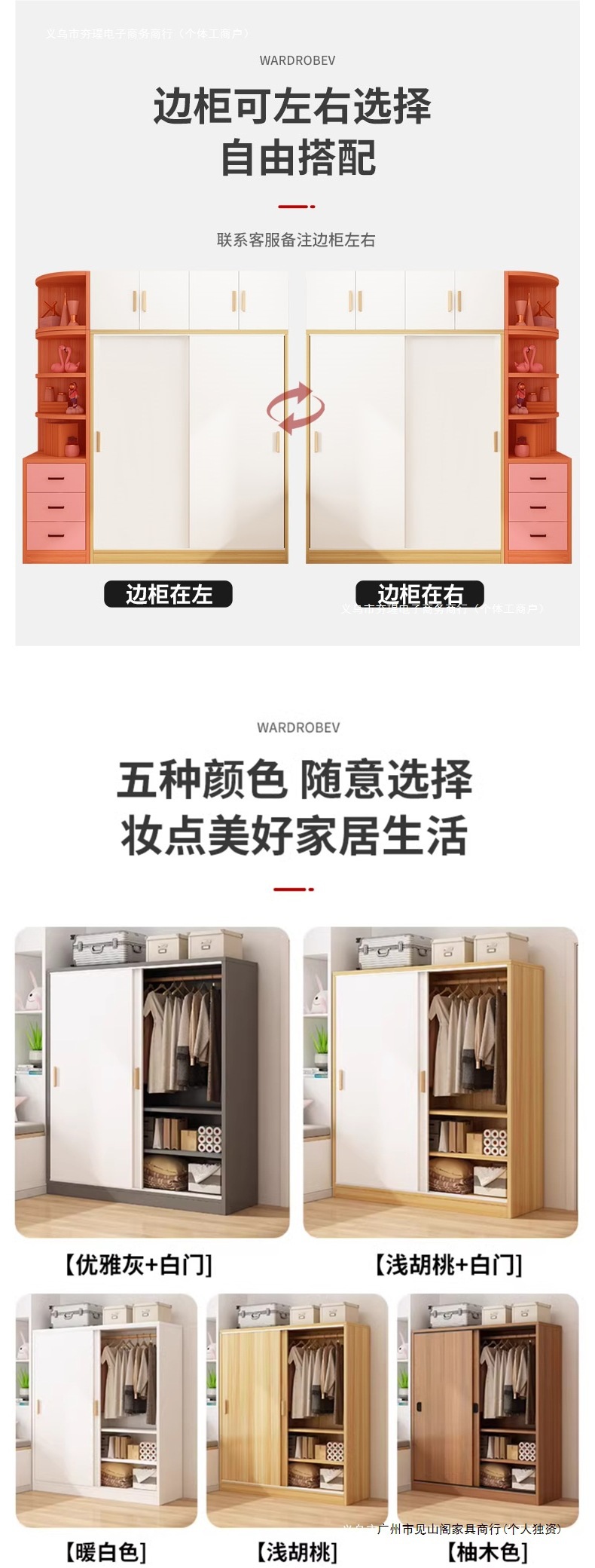 가정용 침실을 위한 간단한 옷장, 작은 아파트 조립식 사물함, 임대 주택을 위한 새로운 두꺼운 슬라이딩 도어 옷장