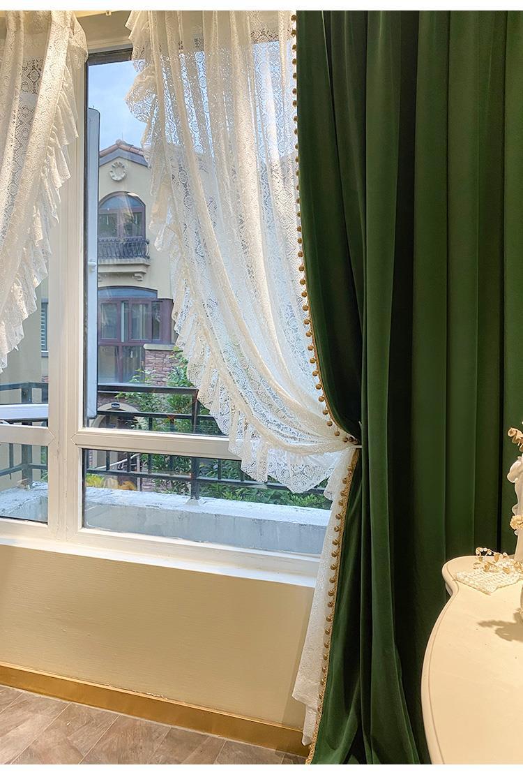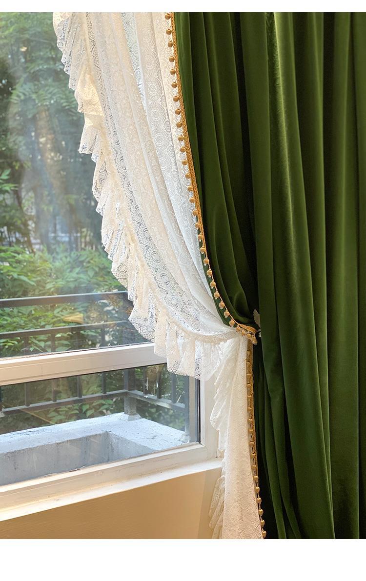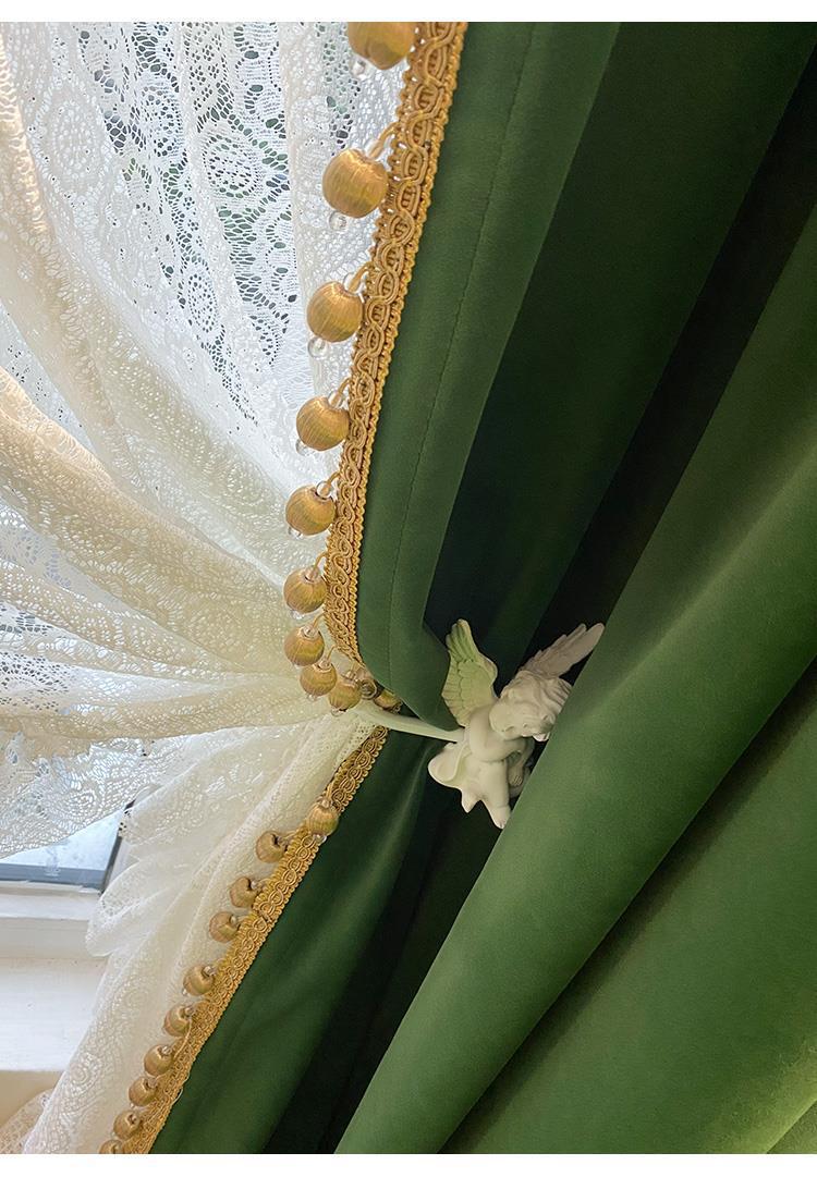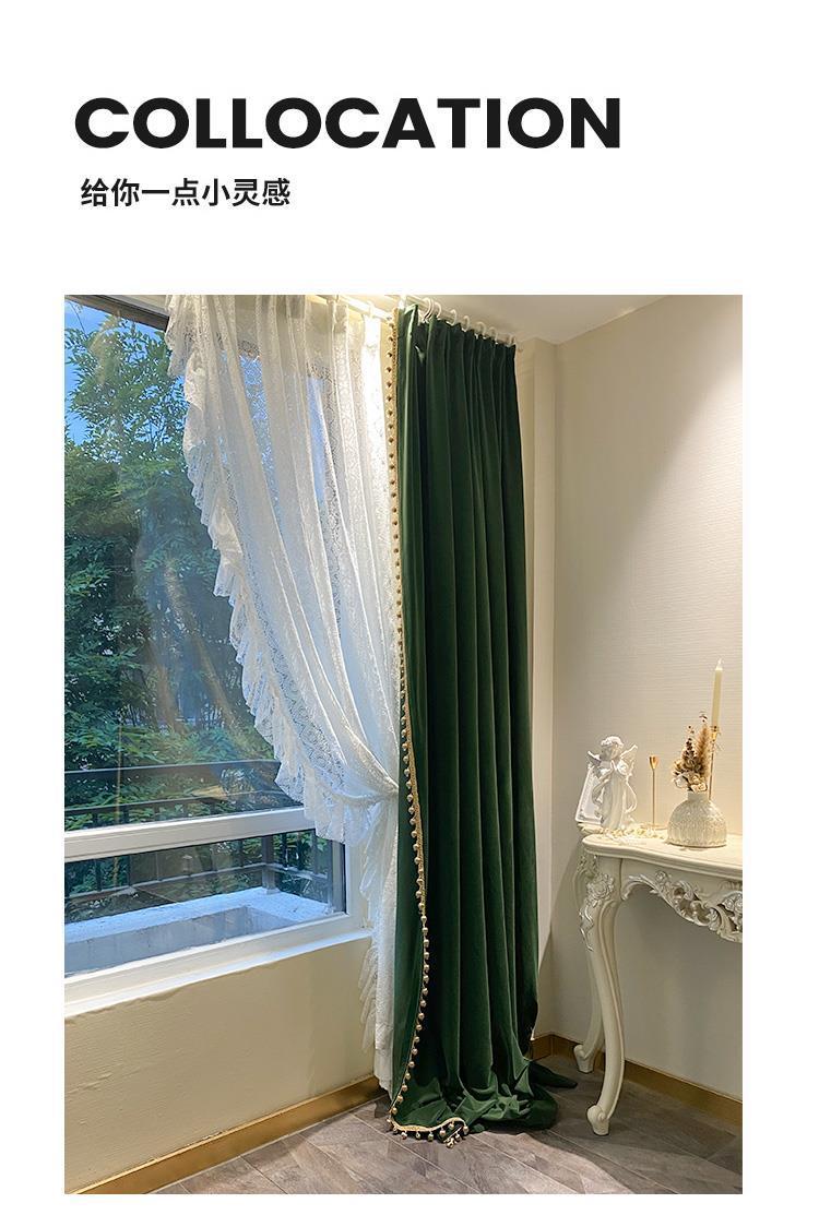 레트로 라이트 럭셔리 짙은 녹색 벨벳 솔리드 컬러 차광 커튼 거실 침실 차양 및 자외선 차단제 레트로 미국 프랑스어 벌크창스토어 가기