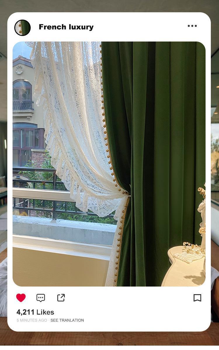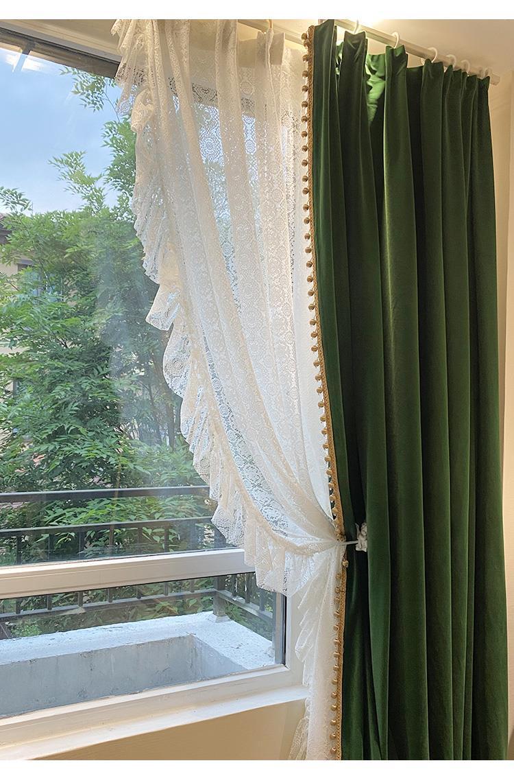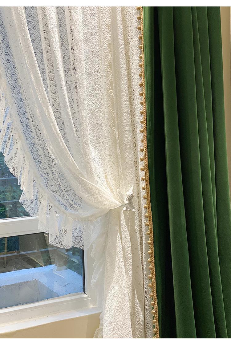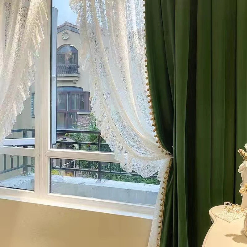 레트로 라이트 럭셔리 짙은 녹색 벨벳 솔리드 컬러 차광 커튼 거실 침실 차양 및 자외선 차단제 레트로 미국 프랑스어 벌크창스토어 가기