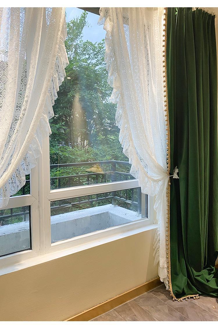 레트로 라이트 럭셔리 짙은 녹색 벨벳 솔리드 컬러 차광 커튼 거실 침실 차양 및 자외선 차단제 레트로 미국 프랑스어 벌크창