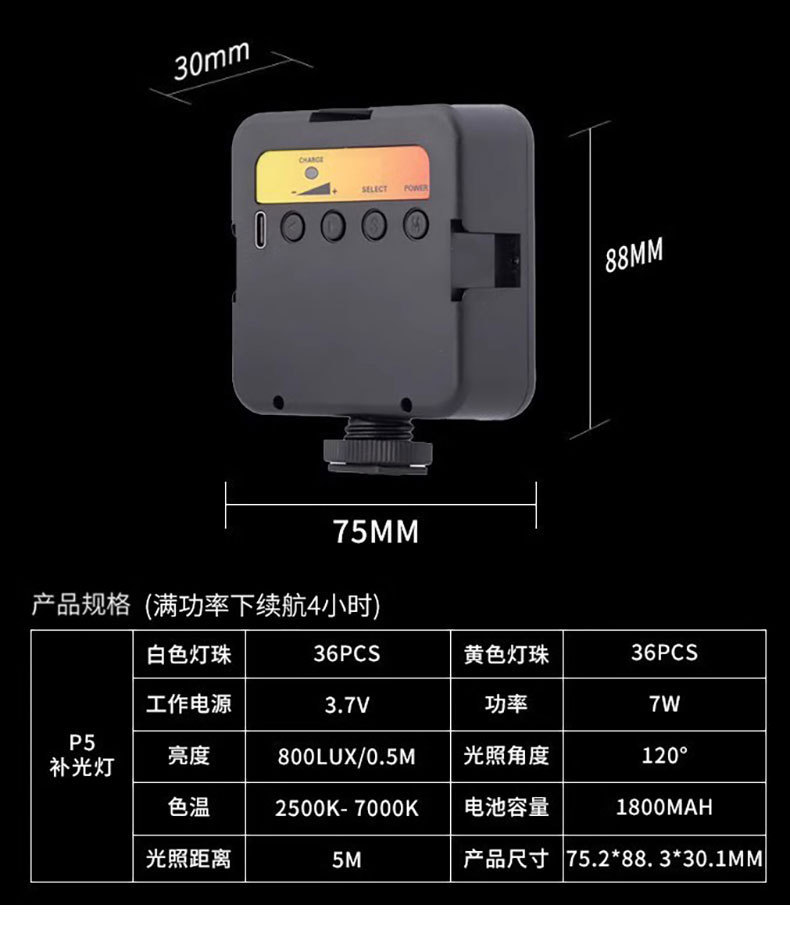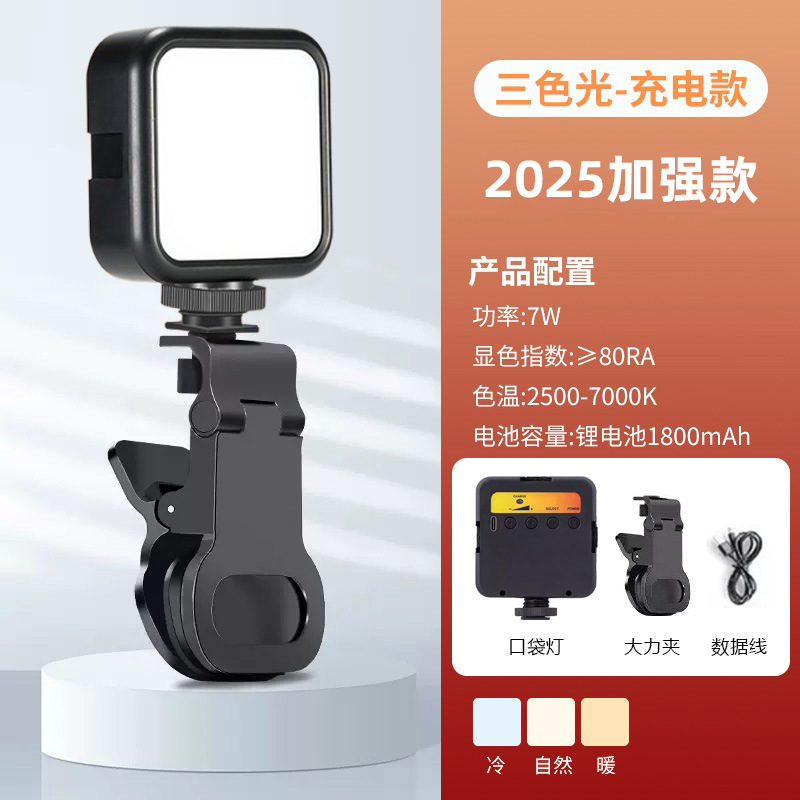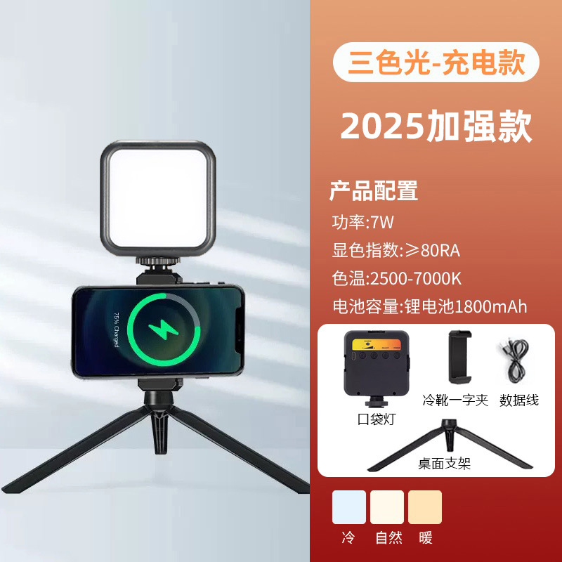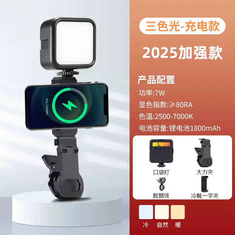 • [포켓라이트의 고급형 버전] (새 업그레이드 + 3색 충전 모델 + 핫슈 휴대폰 클립 + 데스크탑 삼각대)