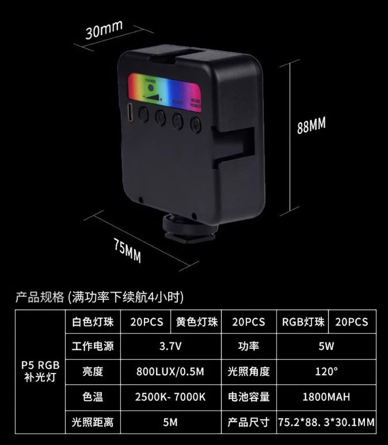 미니 휴대용 휴대용 LED 필 라이트 사진 데스크탑 셀카 뷰티 조명 분위기 범용 RGB 포켓 라이트