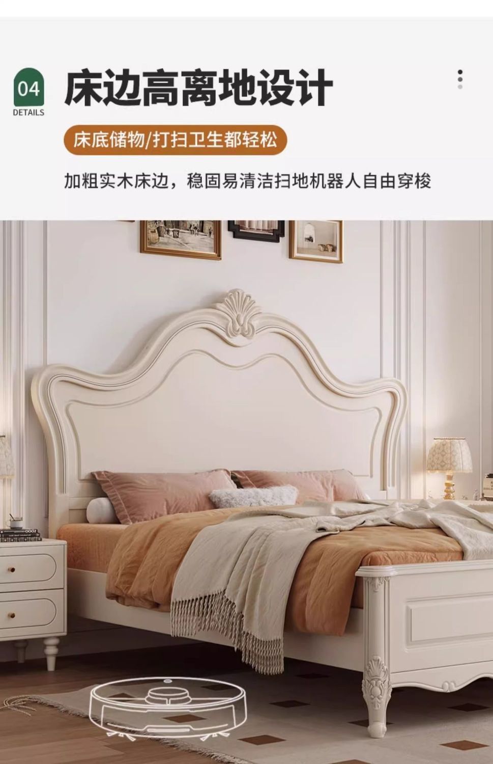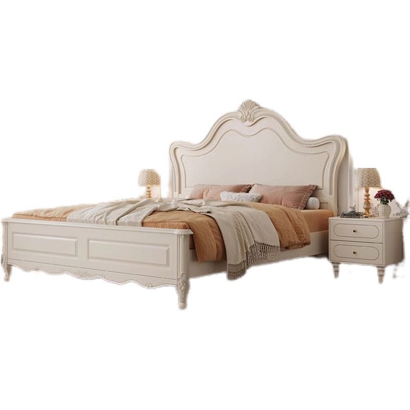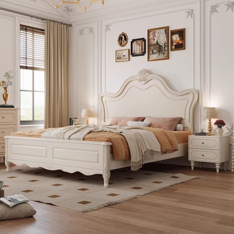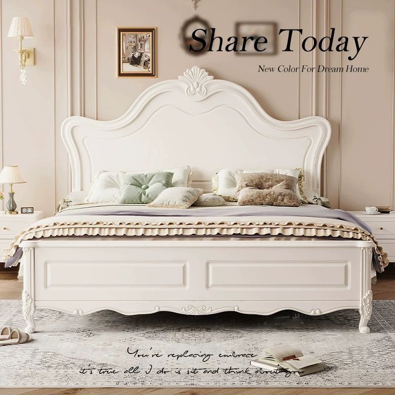 현대적인 미니멀리스트 라이트 럭셔리 크림 우드 침대 1.8 화이트 마스터 침실 공주 1.5 더블 침대 웨딩 침대 아메리칸 스타일