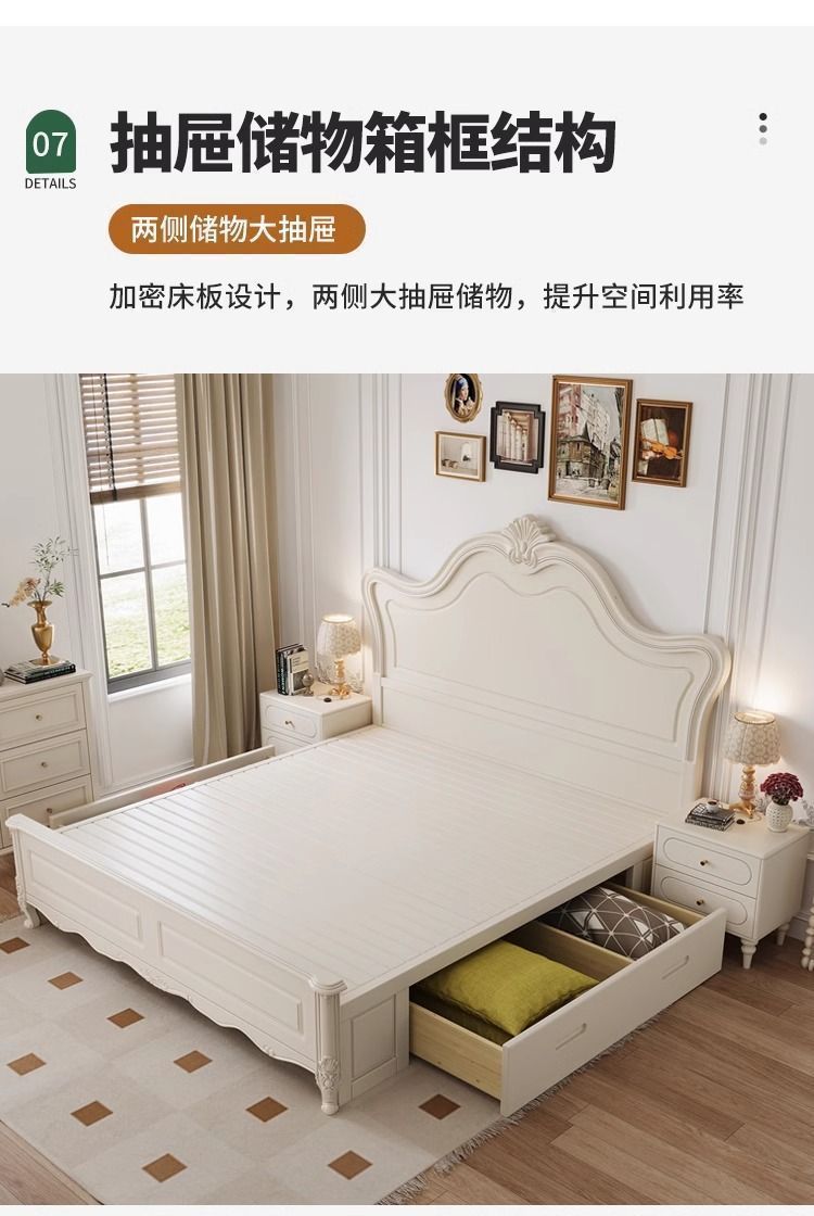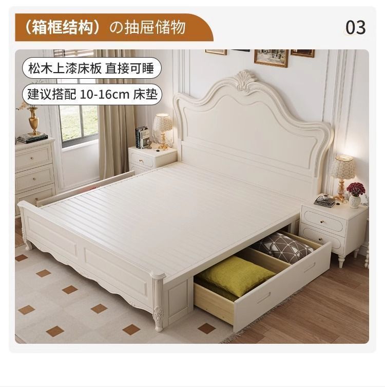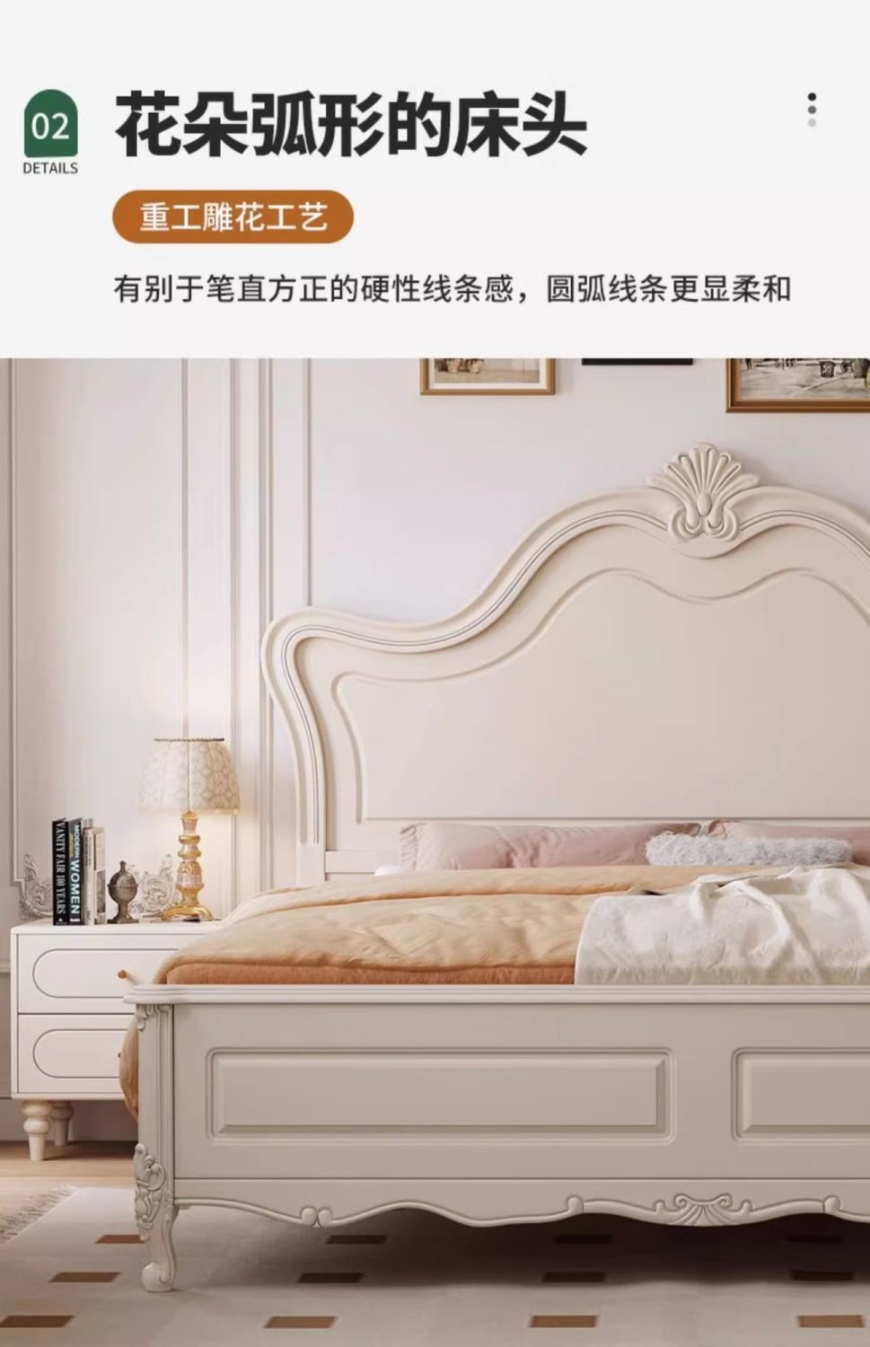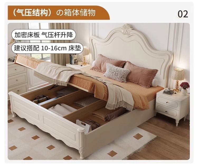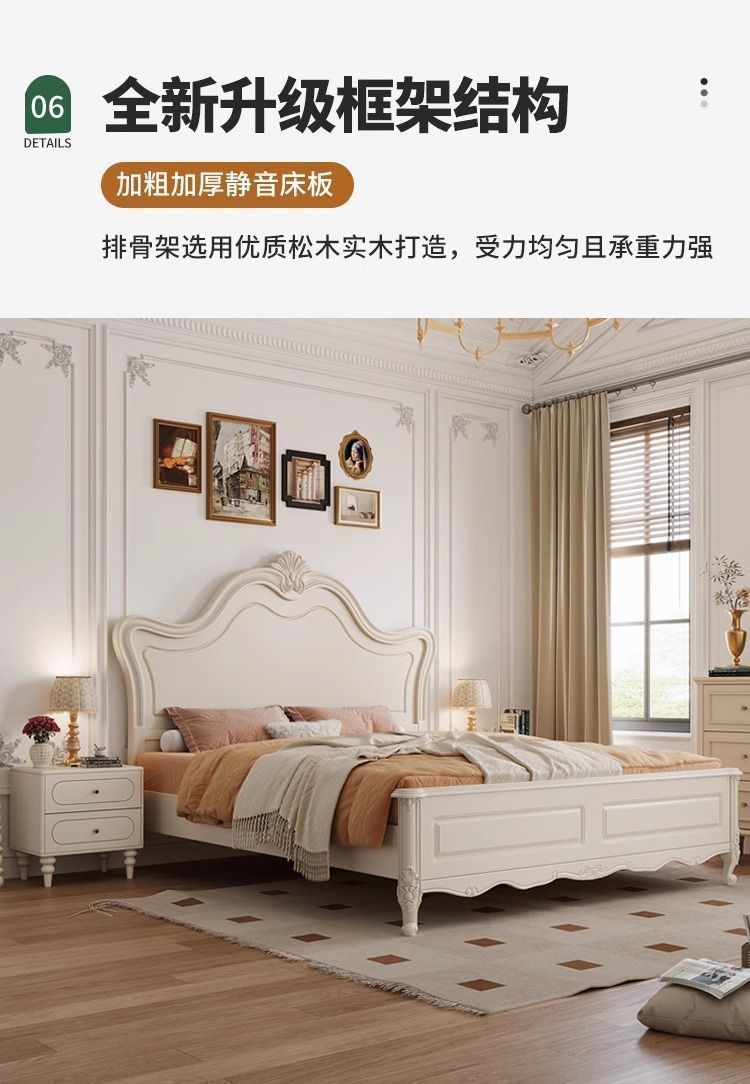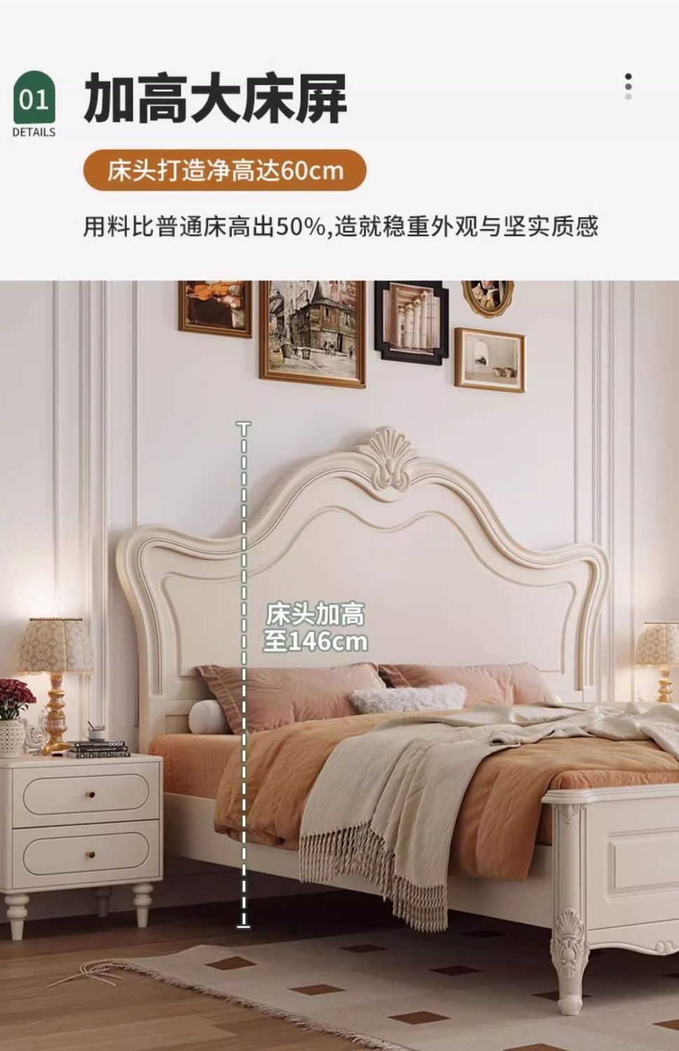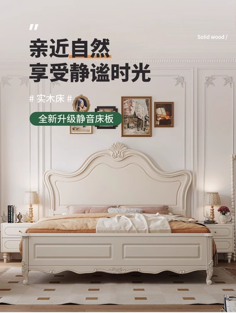 현대적인 미니멀리스트 라이트 럭셔리 크림 우드 침대 1.8 화이트 마스터 침실 공주 1.5 더블 침대 웨딩 침대 아메리칸 스타일스토어 가기