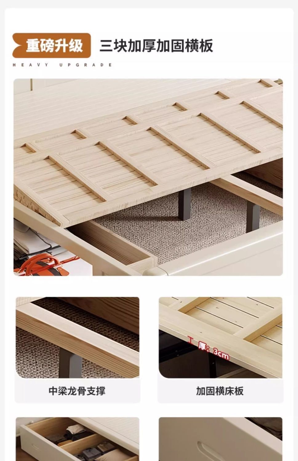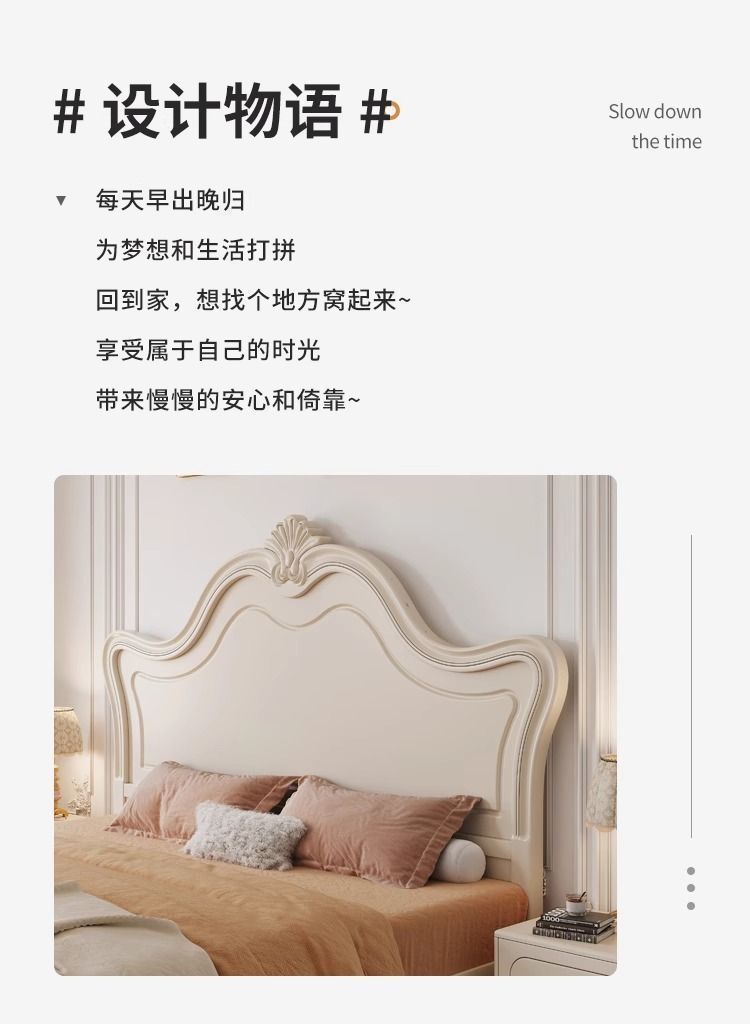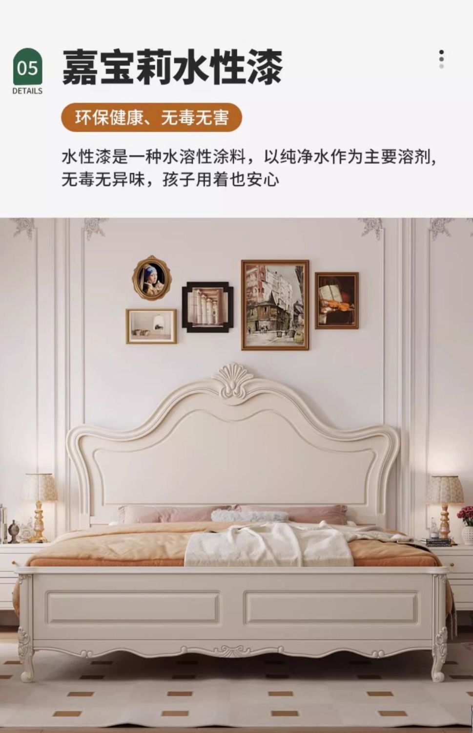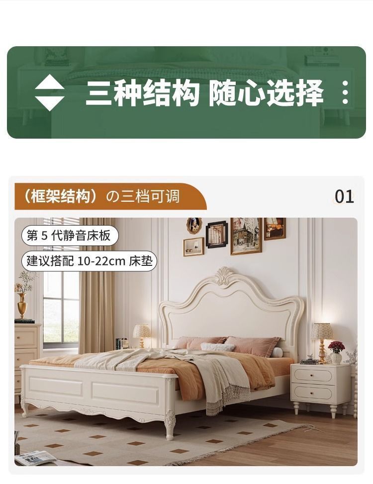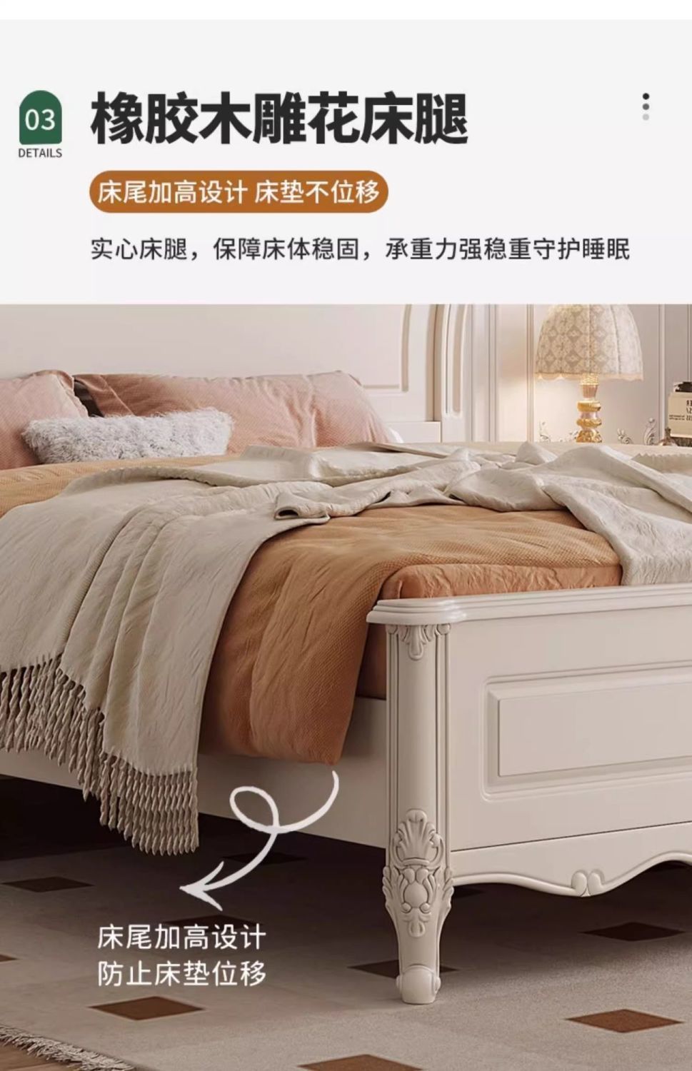 현대적인 미니멀리스트 라이트 럭셔리 크림 우드 침대 1.8 화이트 마스터 침실 공주 1.5 더블 침대 웨딩 침대 아메리칸 스타일스토어 가기