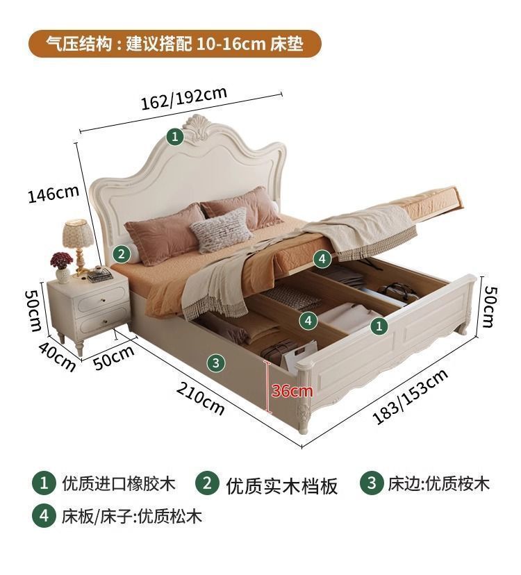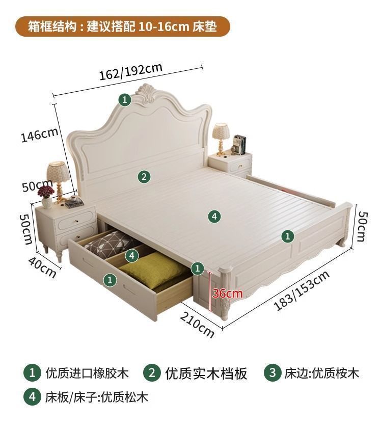 • [구타오] 중세 조각침대 + 5D 라텍스 매트리스 + 캐비닛 1개 + 프레임 구조