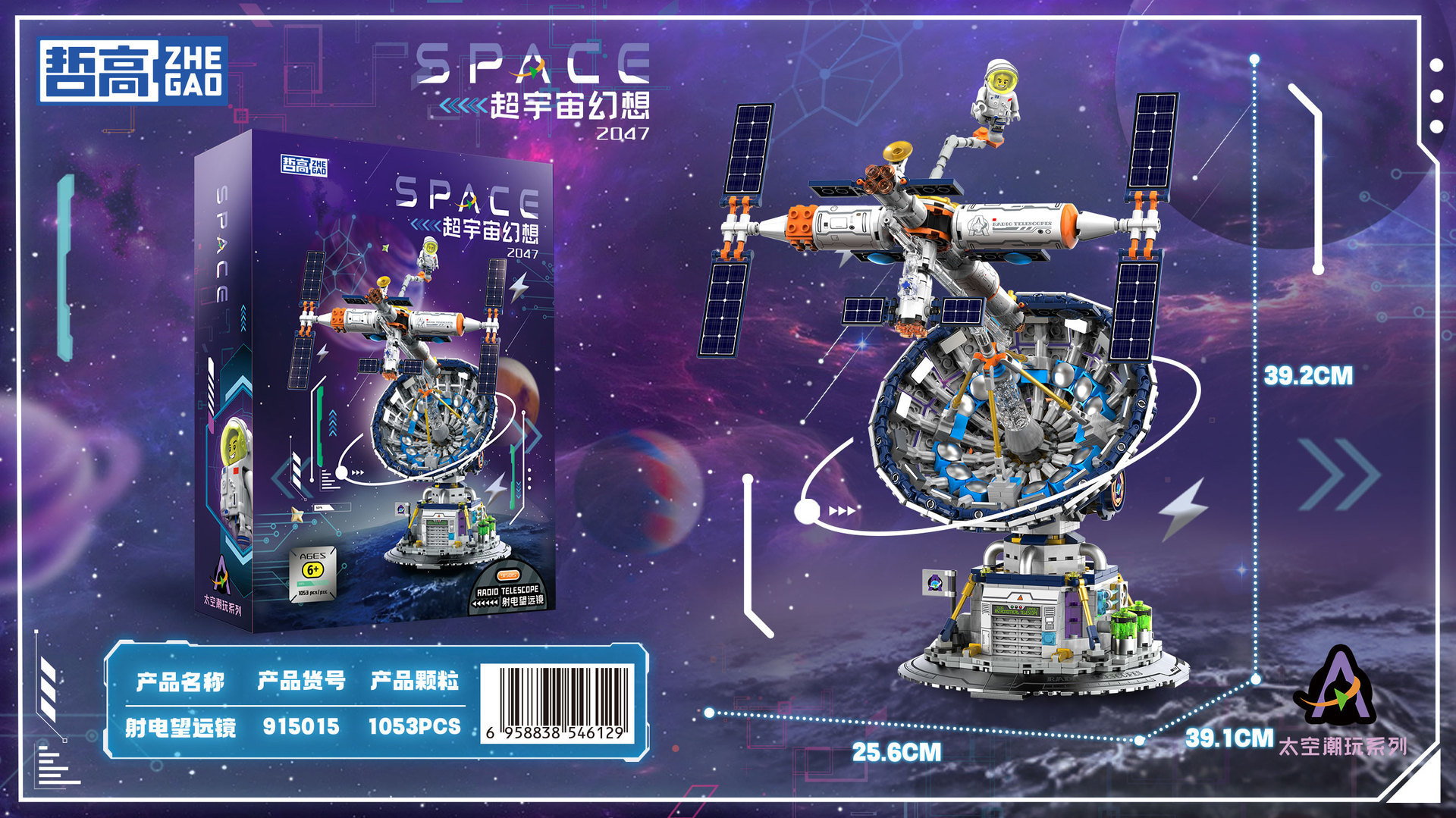 Zhegao 라디오 망원경 은하계 태양계 장식품 레고 어린이 빌딩 블록 조립 교육 장난감과 호환 가능 도매
