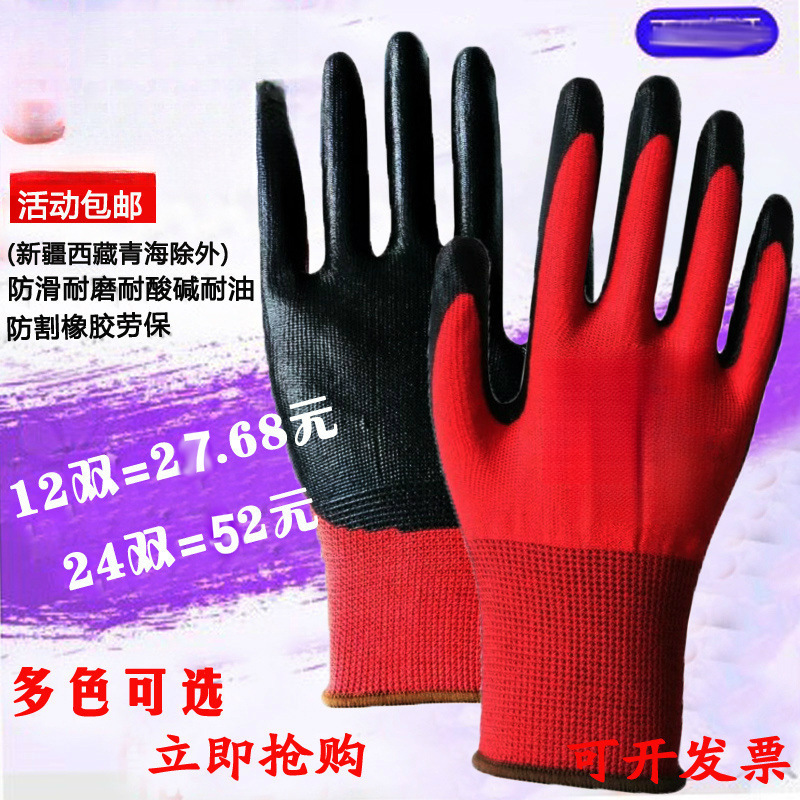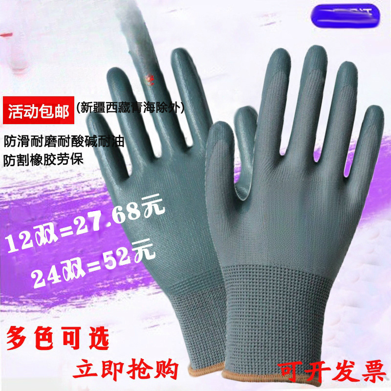 12 쌍 무료 배송 건설 현장 노동 보호 N539 Dingqing 고무 함침 노동 보호 장갑 기계적 내마모성 및 내유성 보호 장갑 N529스토어 가기