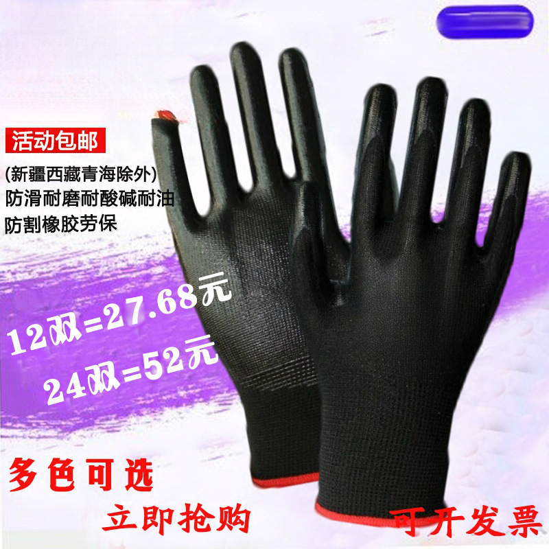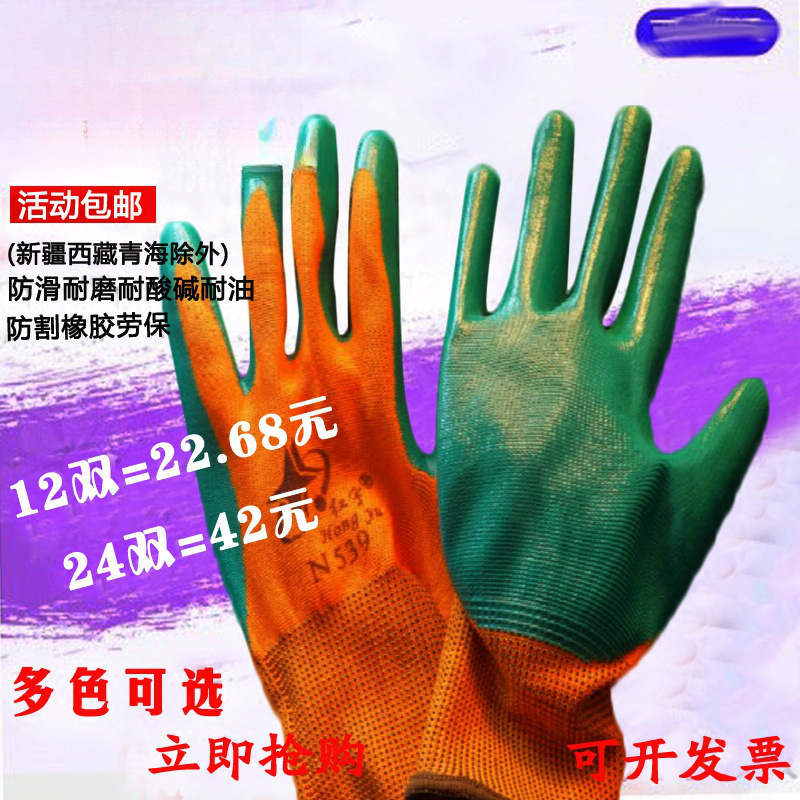 12 쌍 무료 배송 건설 현장 노동 보호 N539 Dingqing 고무 함침 노동 보호 장갑 기계적 내마모성 및 내유성 보호 장갑 N529
