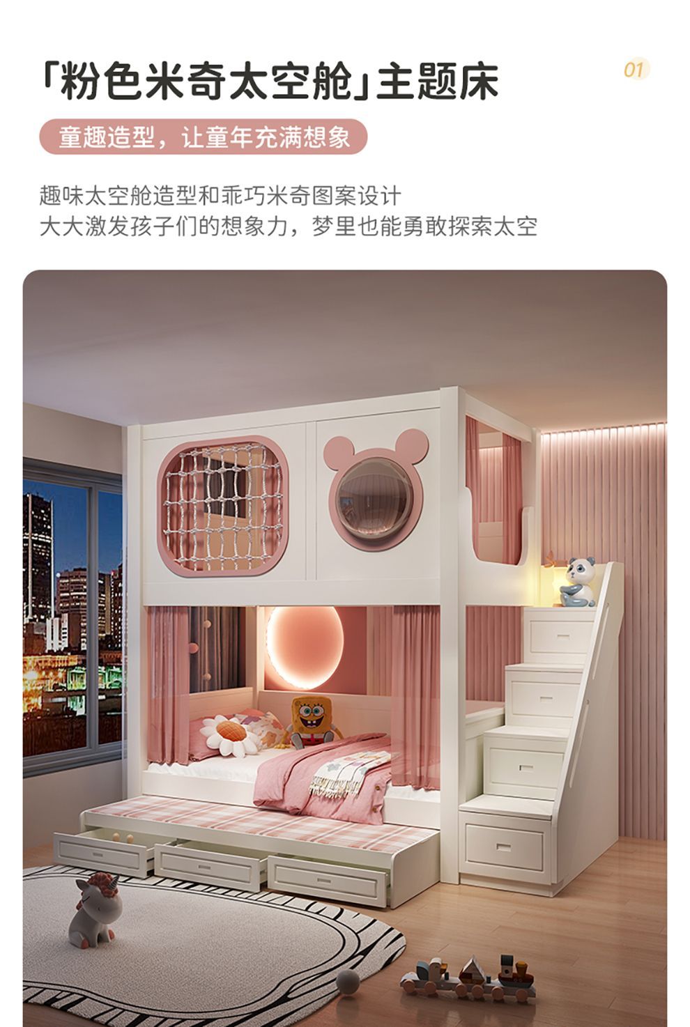 어린이 이층 침대 우주 캡슐 이층 침대 소녀 공주 침대 높낮이 이층 침대 트리 하우스 이층 침대