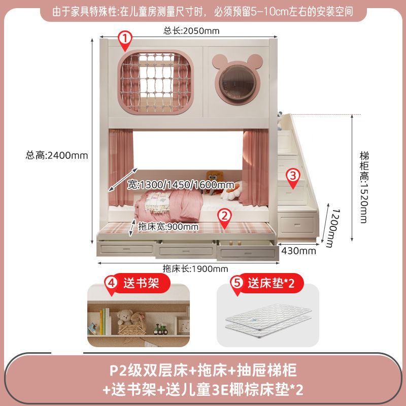 • 높고 낮은 침대 + 서랍 3개 + 사다리 캐비닛 + 슬라이드