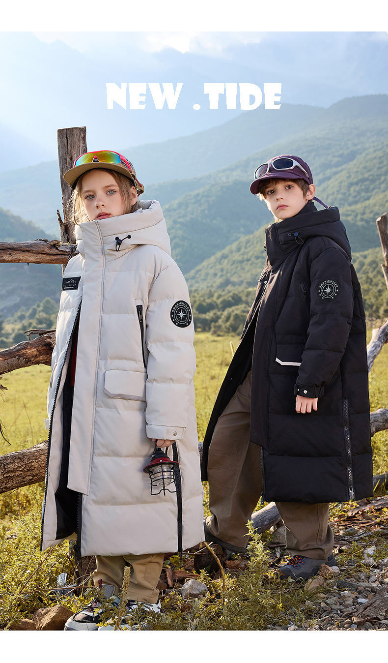 아동용 긴 소년 다운 재킷 2025 새로운 스타일 소녀 중대형 아동용 두꺼운 따뜻한 겨울 아동용 재킷