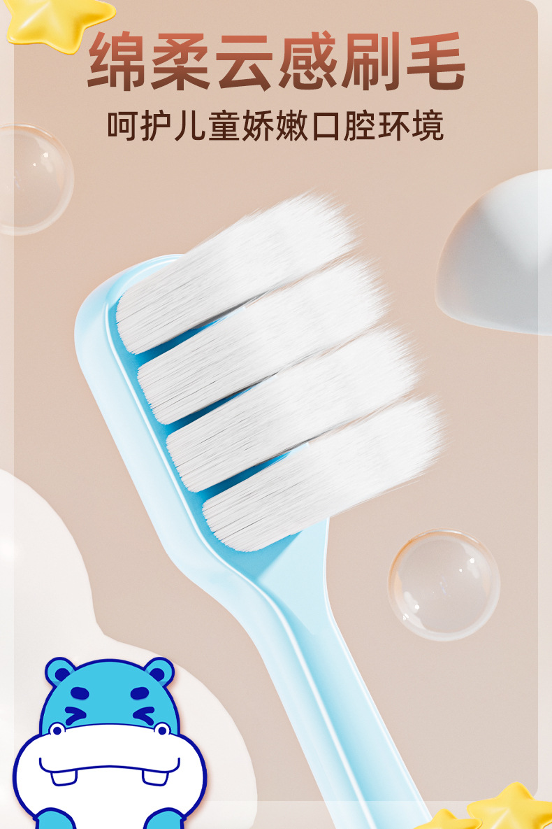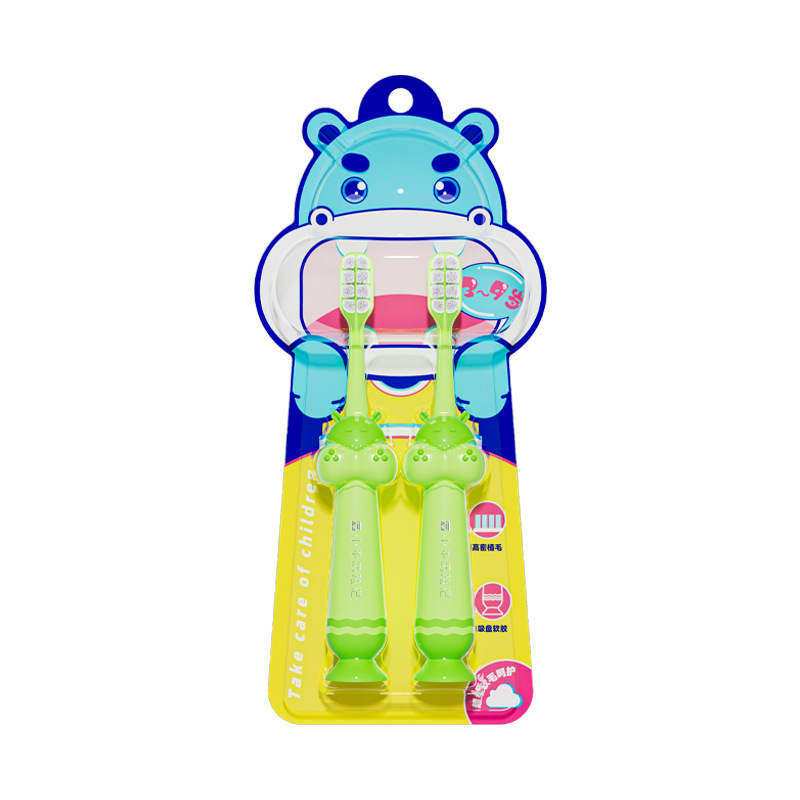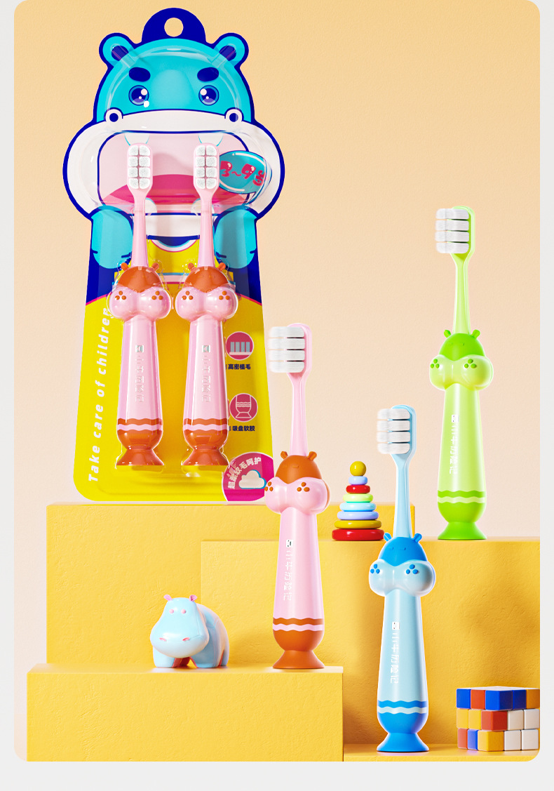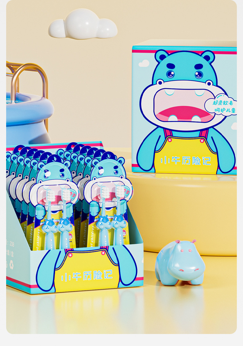 송아지 모험 어린이 칫솔 2팩 작은 하마 만화 모양 고밀도 칫솔 부드러운 강모 가정용 3-9세스토어 가기