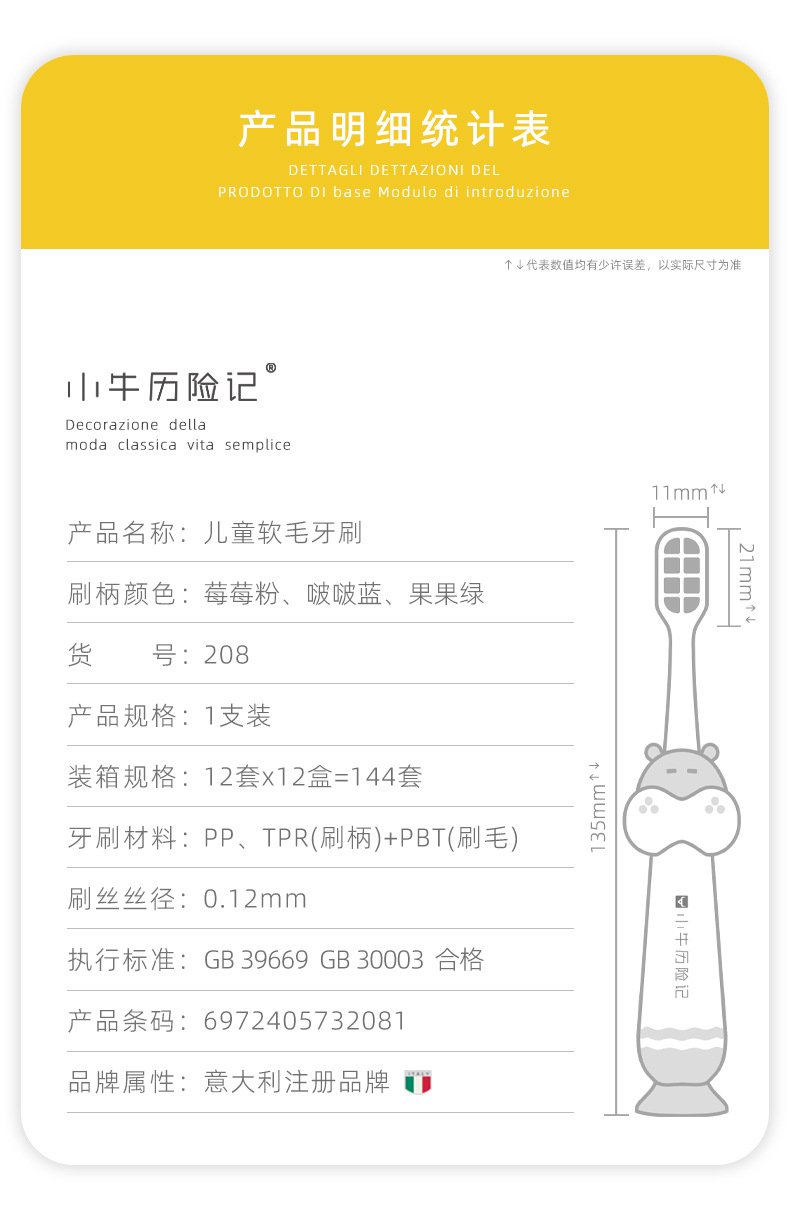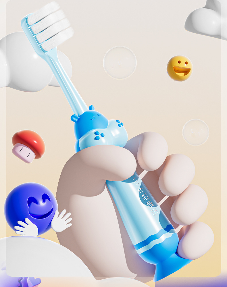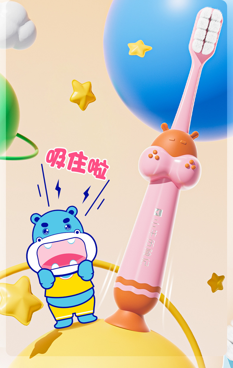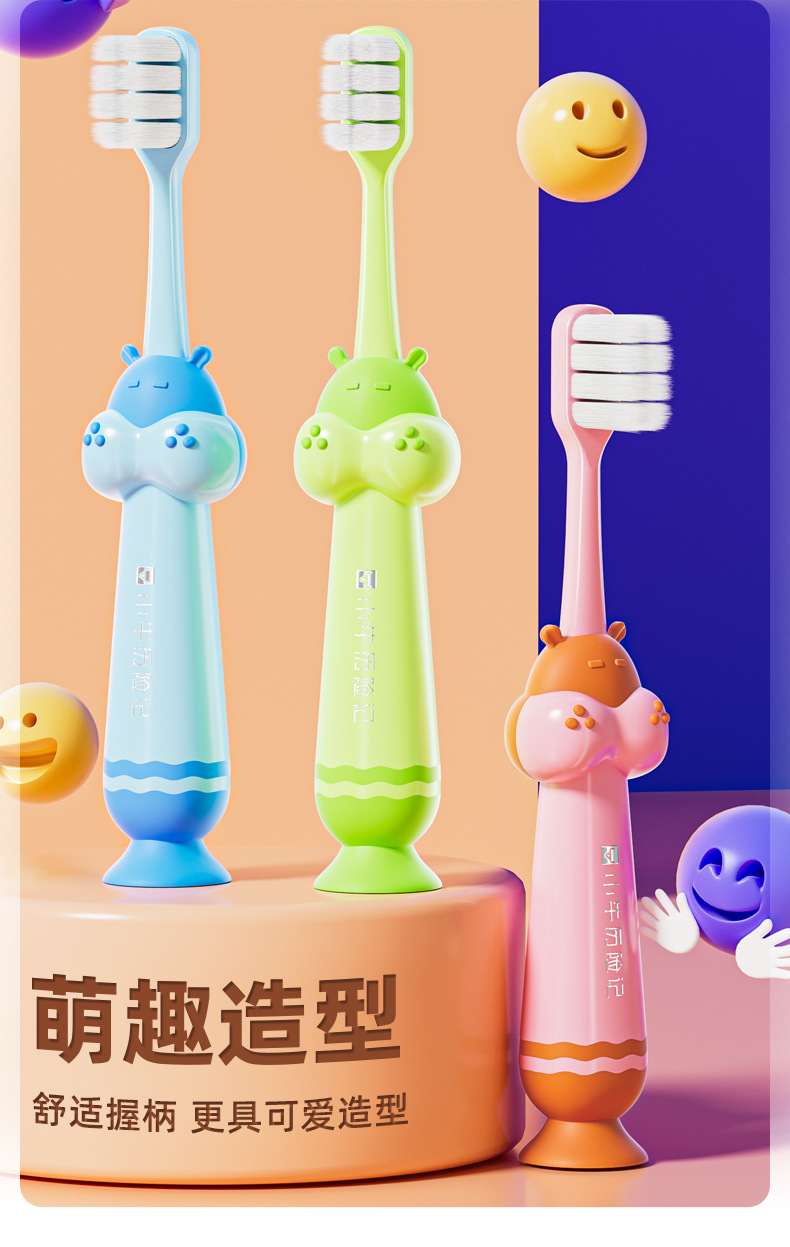 송아지 모험 어린이 칫솔 2팩 작은 하마 만화 모양 고밀도 칫솔 부드러운 강모 가정용 3-9세스토어 가기