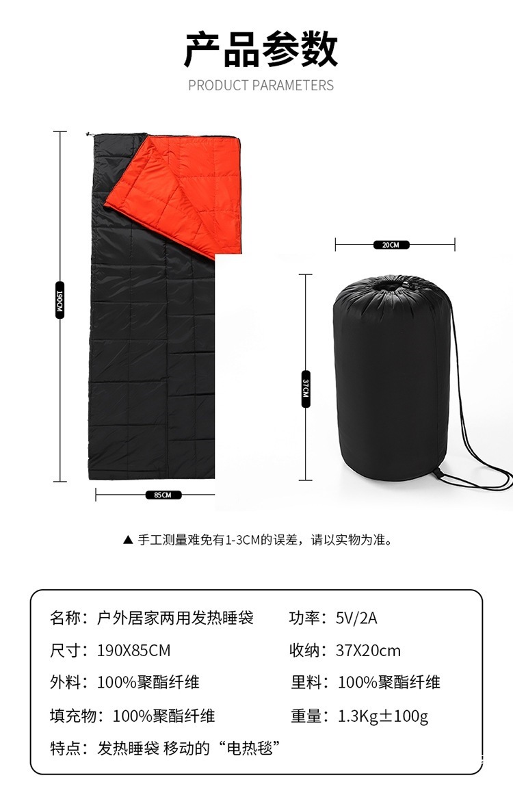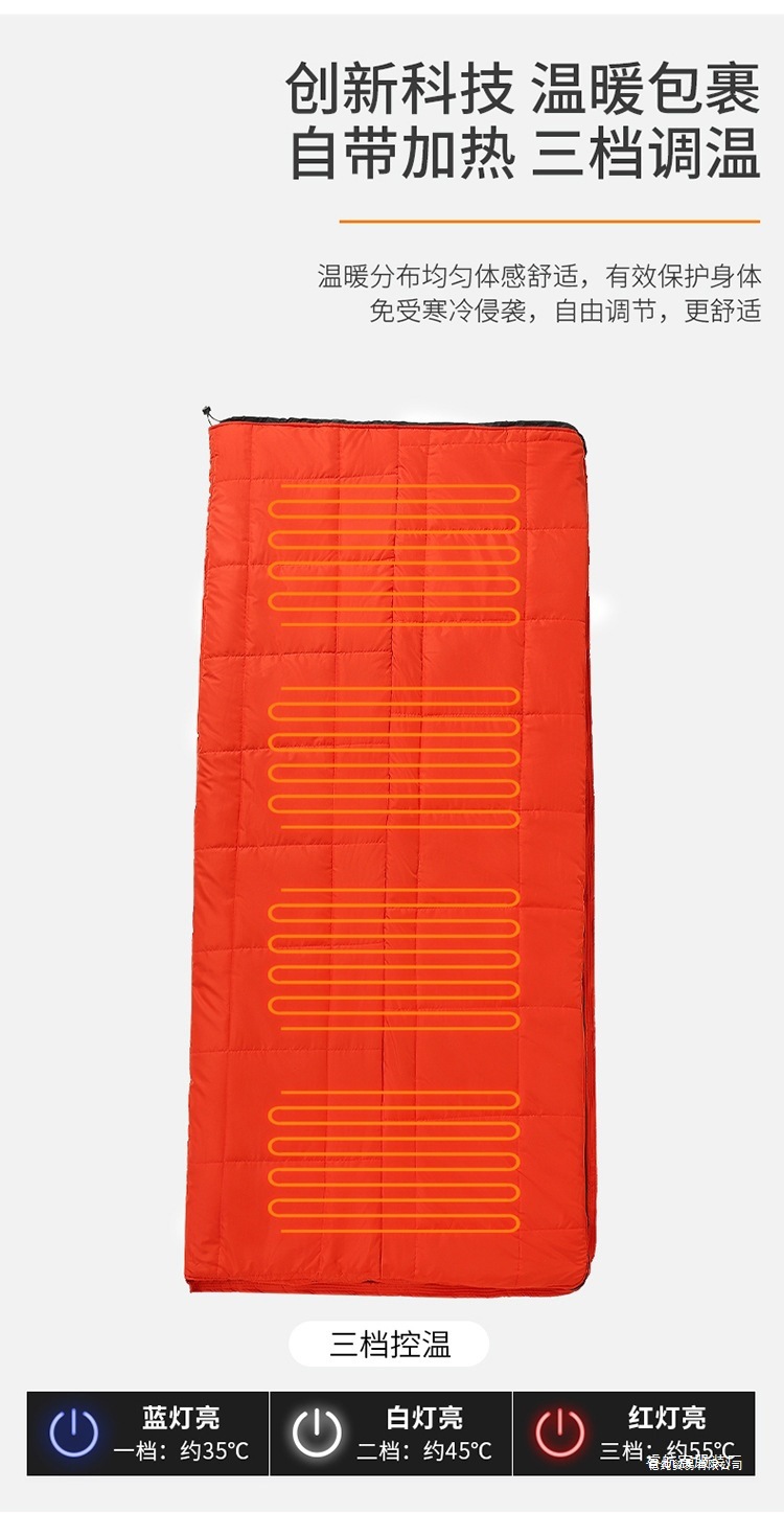 국경 간 지능형 난방 면 침낭 새로운 난방 담요 캠핑 내한성 방풍 따뜻한 침낭 전기 난방 침낭스토어 가기