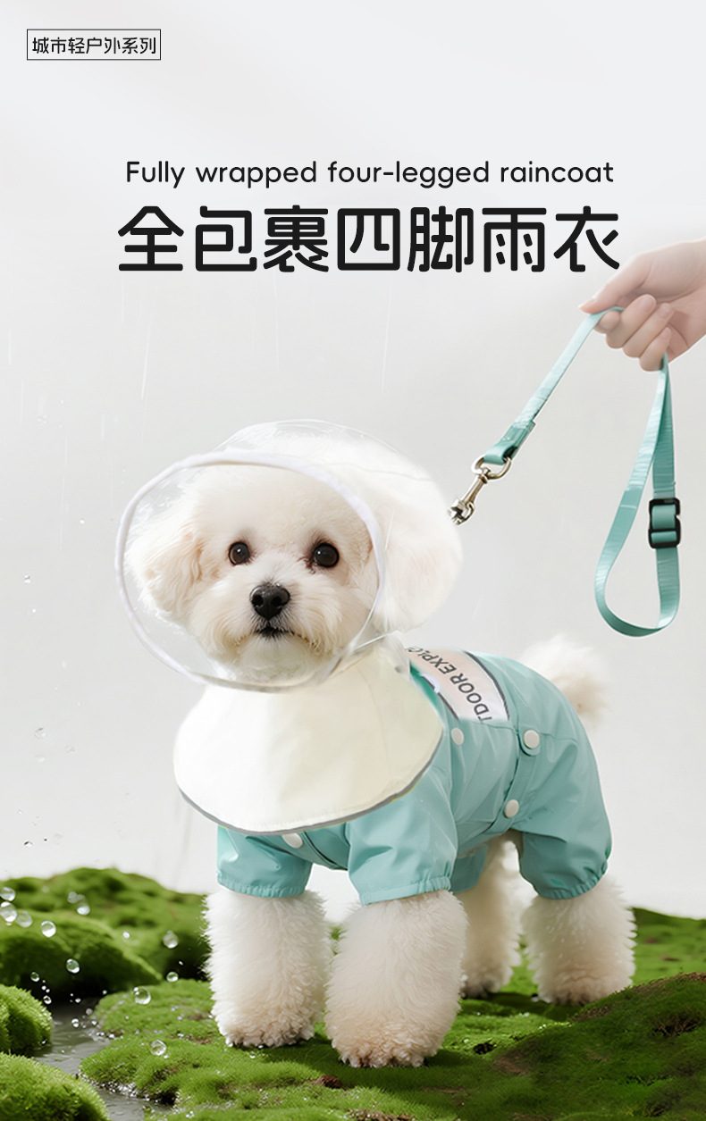 강아지 비옷, 야외 비오는 날 강아지 산책복, 4다리 일체형 특수 방수 판초, 소형견 애완동물 비옷스토어 가기