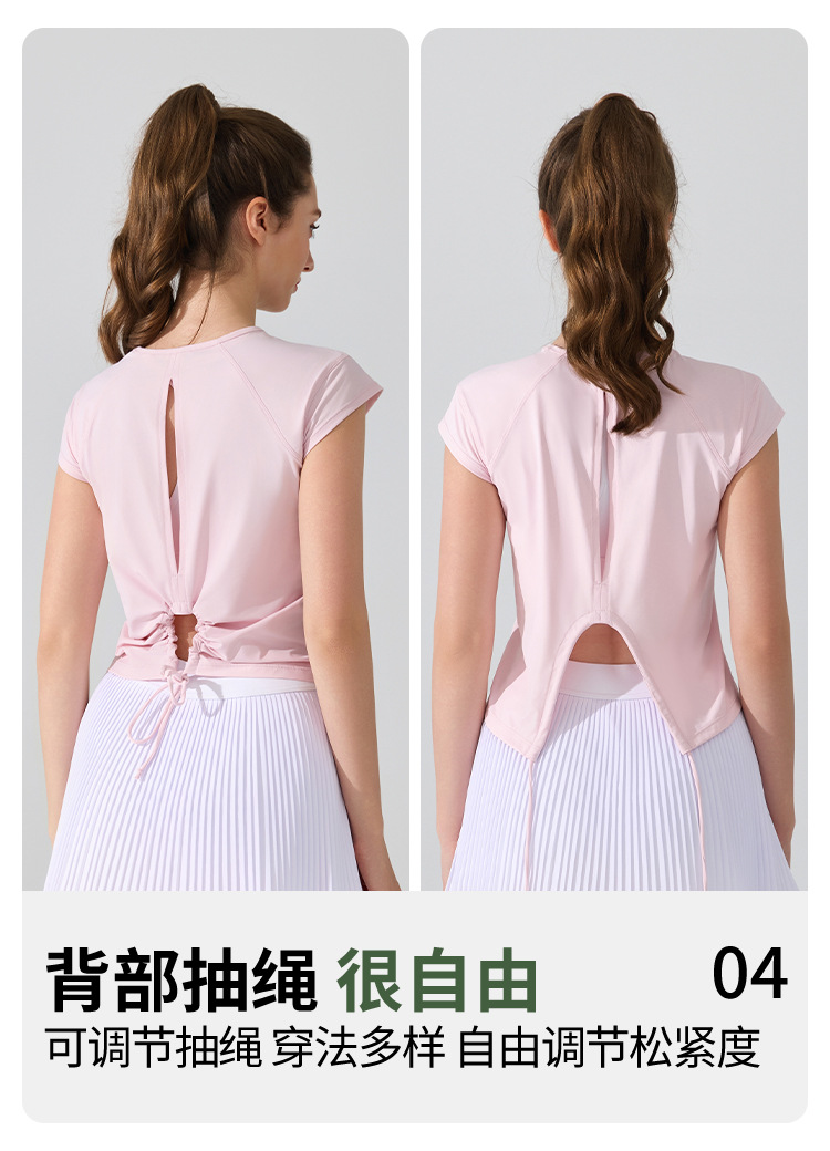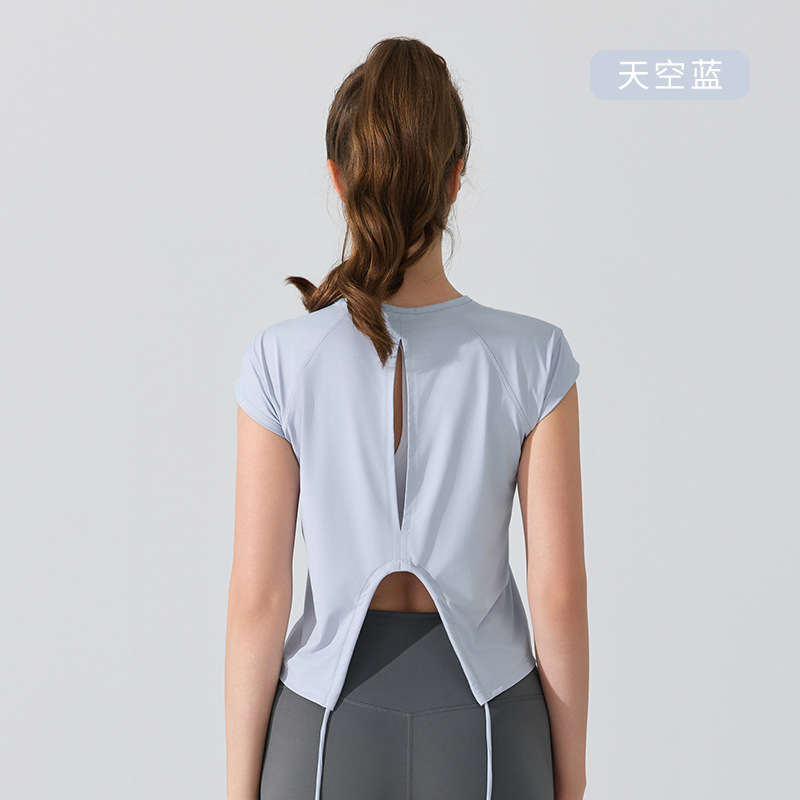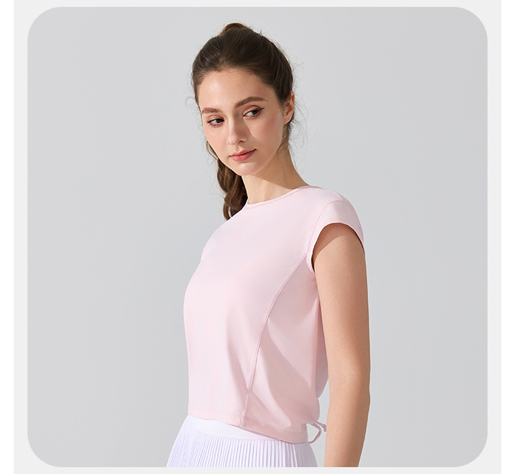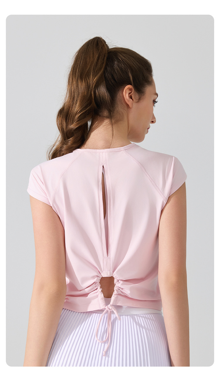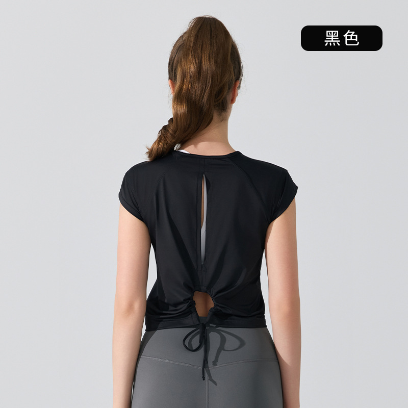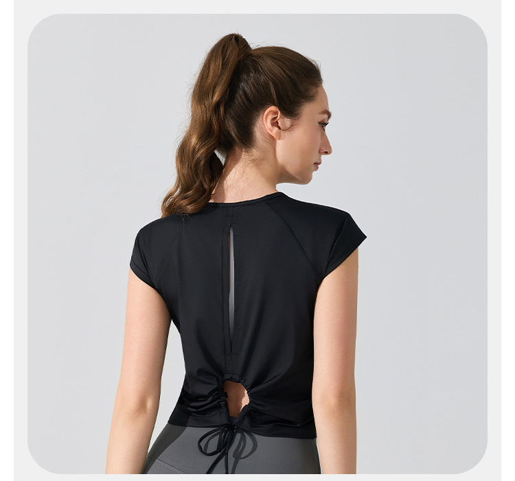 여름 요가복, 반팔 여성용 중공 아름다운 등 스포츠 티셔츠, 조임끈 주름 통기성 야외 달리기 피트니스웨어스토어 가기