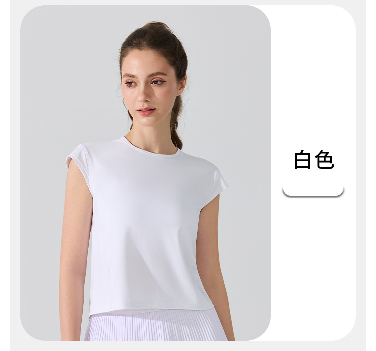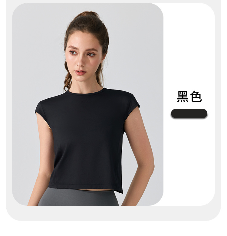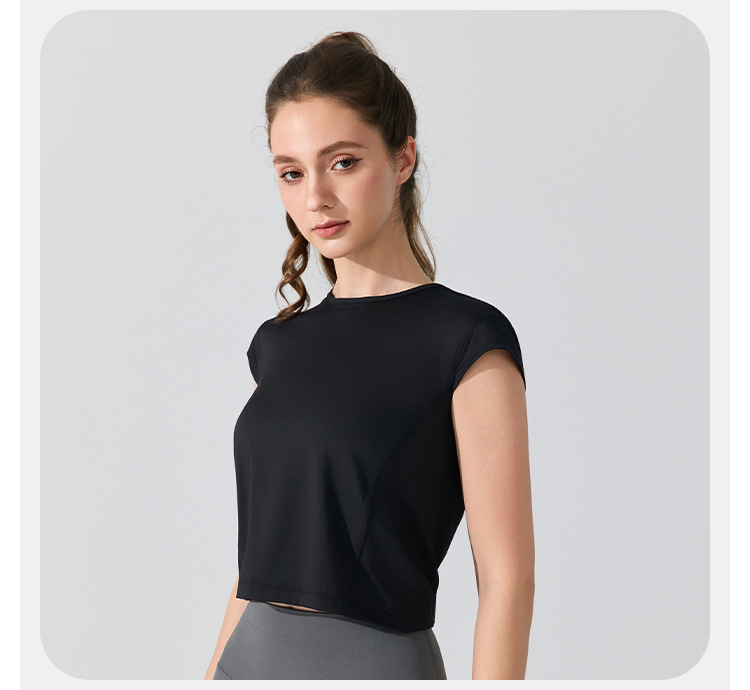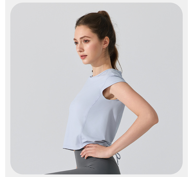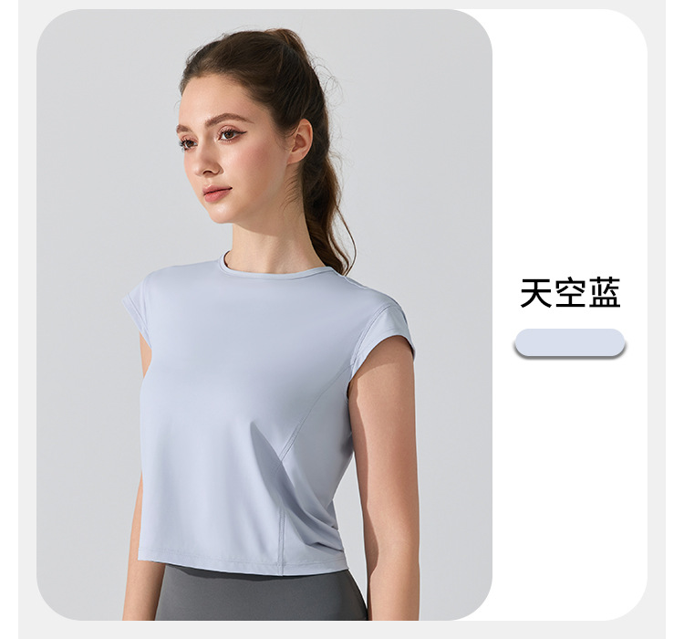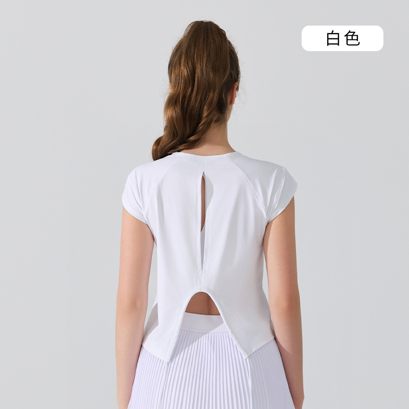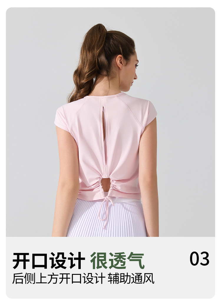 여름 요가복, 반팔 여성용 중공 아름다운 등 스포츠 티셔츠, 조임끈 주름 통기성 야외 달리기 피트니스웨어스토어 가기