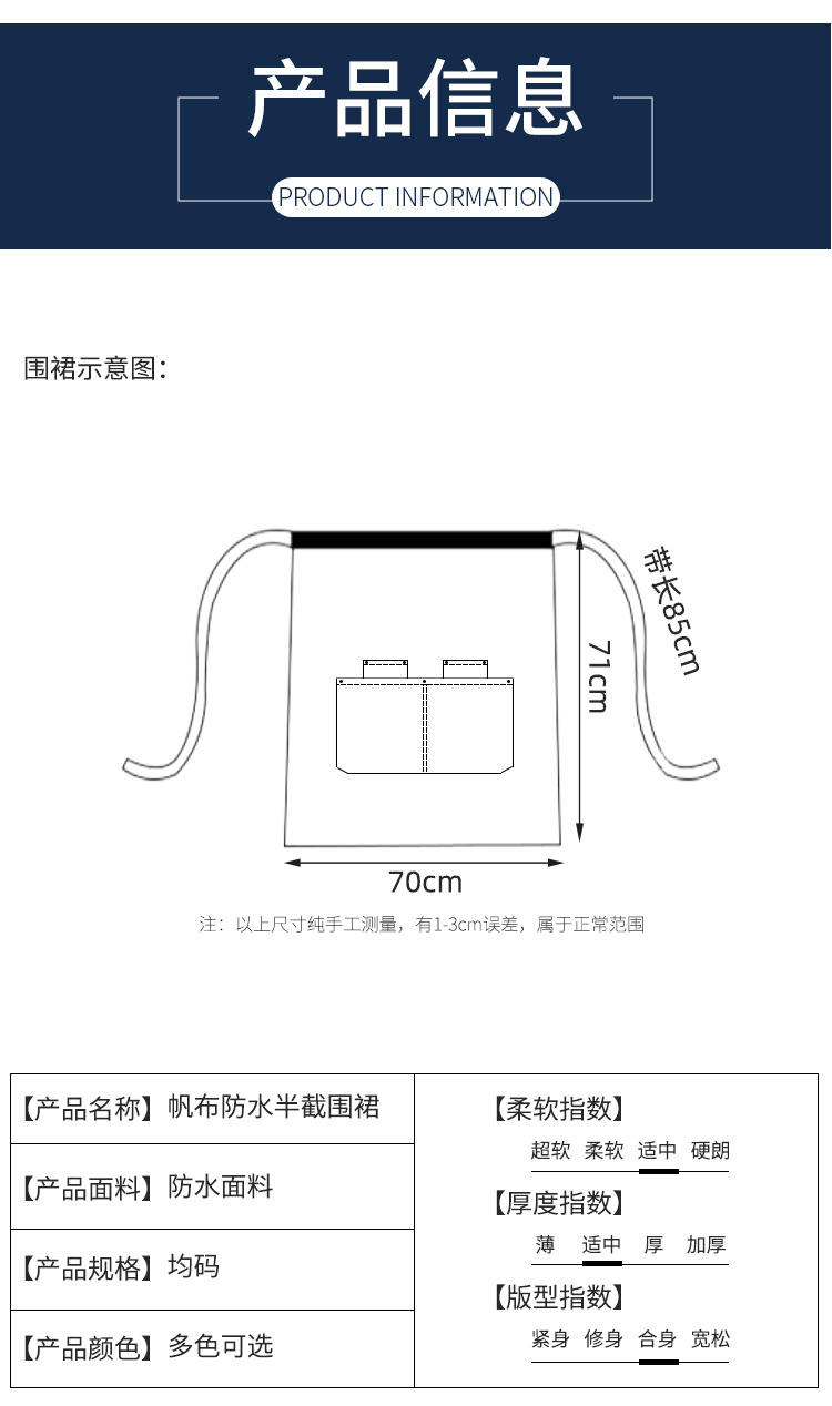 반기장 앞치마, 요리사 앞치마, 앞치마, 발수 캔버스 작업복, 반기장 케이터링 전문 호텔 주방 작업복