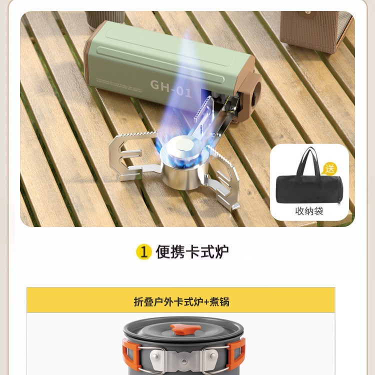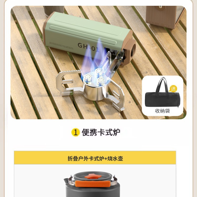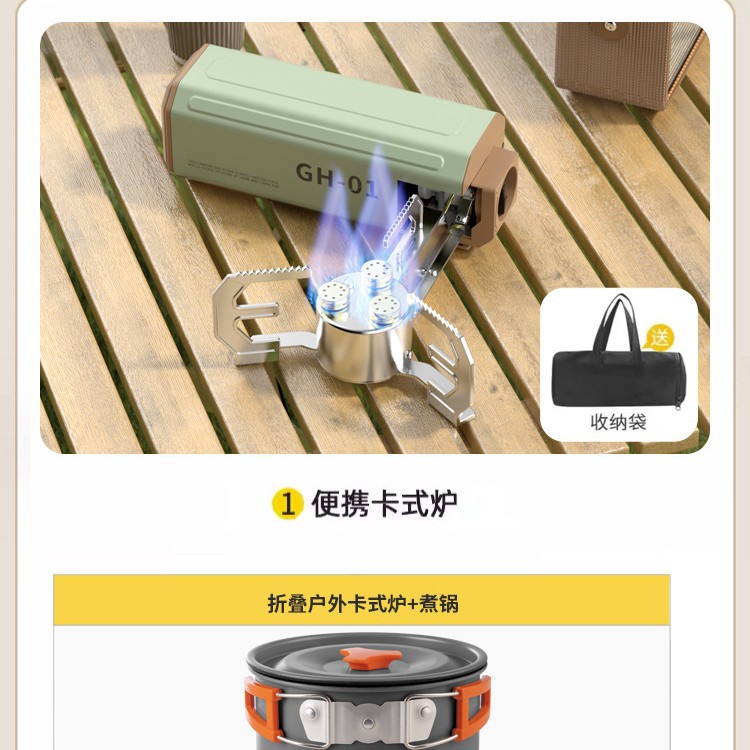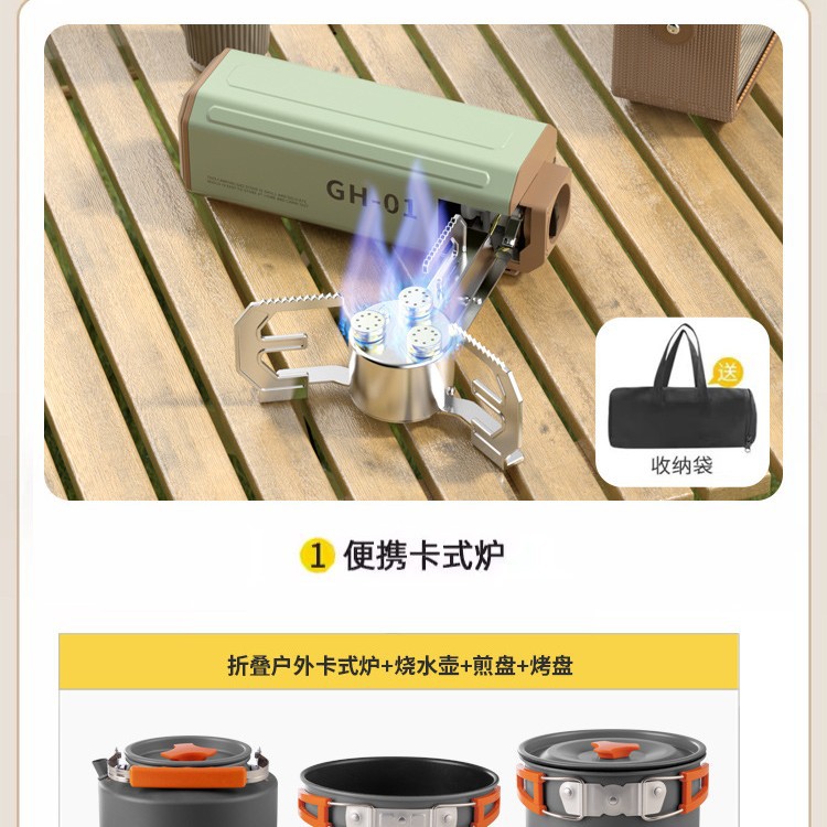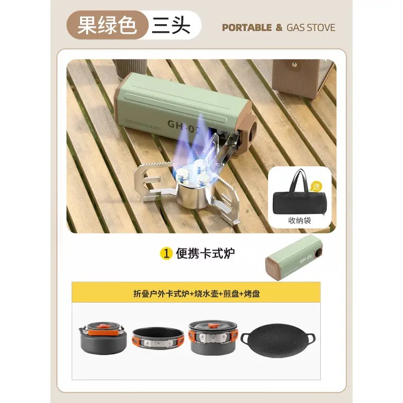 • 과일 녹색 순동 단일 버너에는 보관 가방 + 중간 크기 3종 세트(프라이팬 + 냄비 + 냄비)가 함께 제공됩니다.