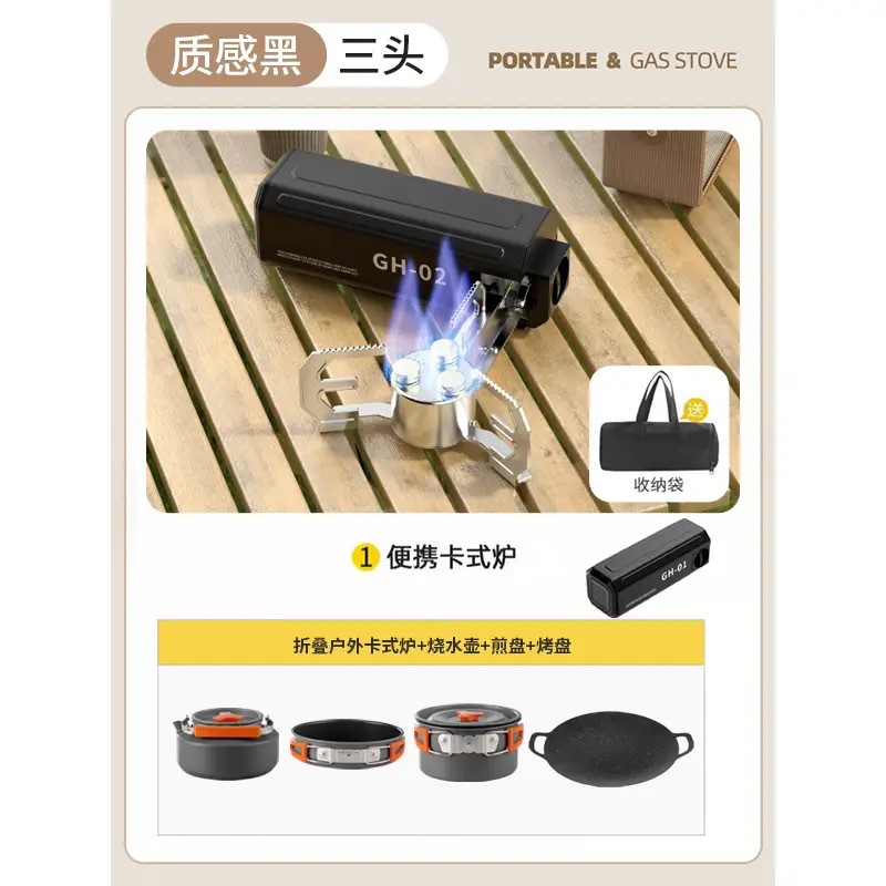 • 블랙 킹콩 순동 삼구 버너에는 보관 가방 + 중형 3종 세트(프라이팬+냄비+요리 냄비)가 함께 제공됩니다.