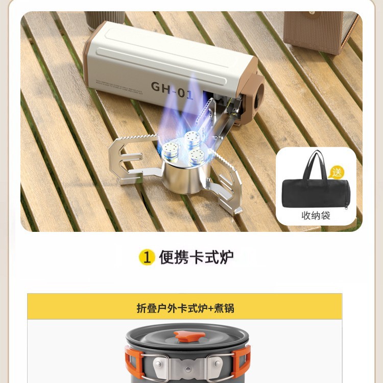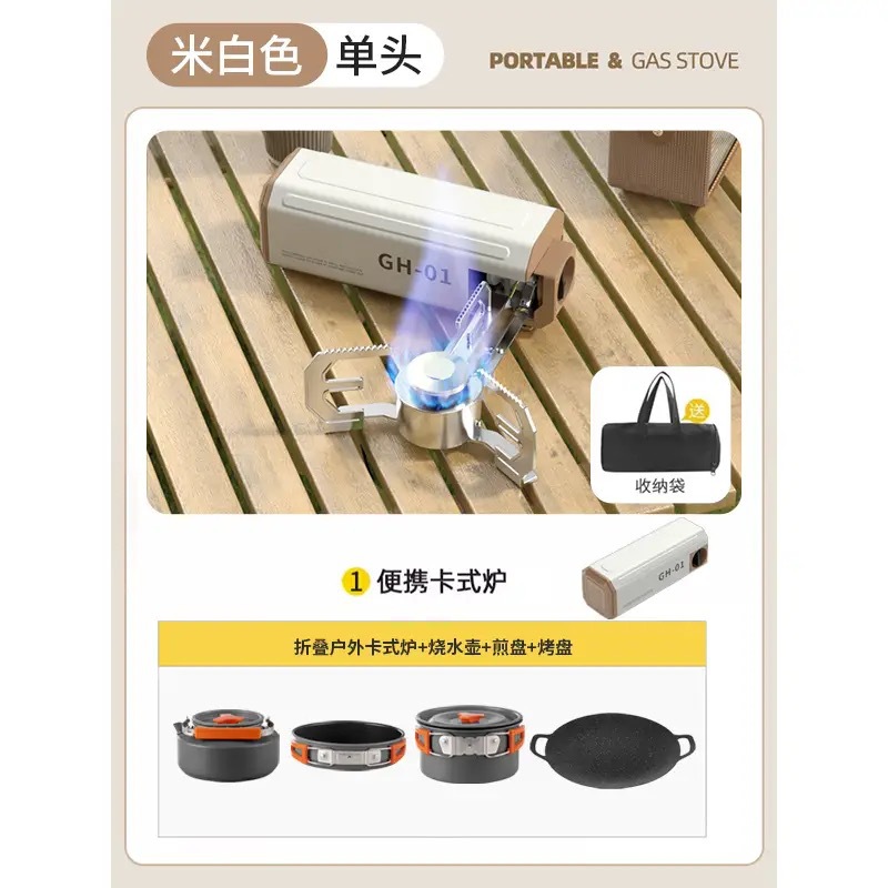 • 귀여운 흰색 순동 싱글 버너에는 보관 가방 + 중형 3종 세트(프라이팬+냄비+요리 냄비)가 함께 제공됩니다.