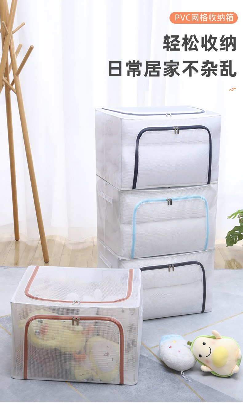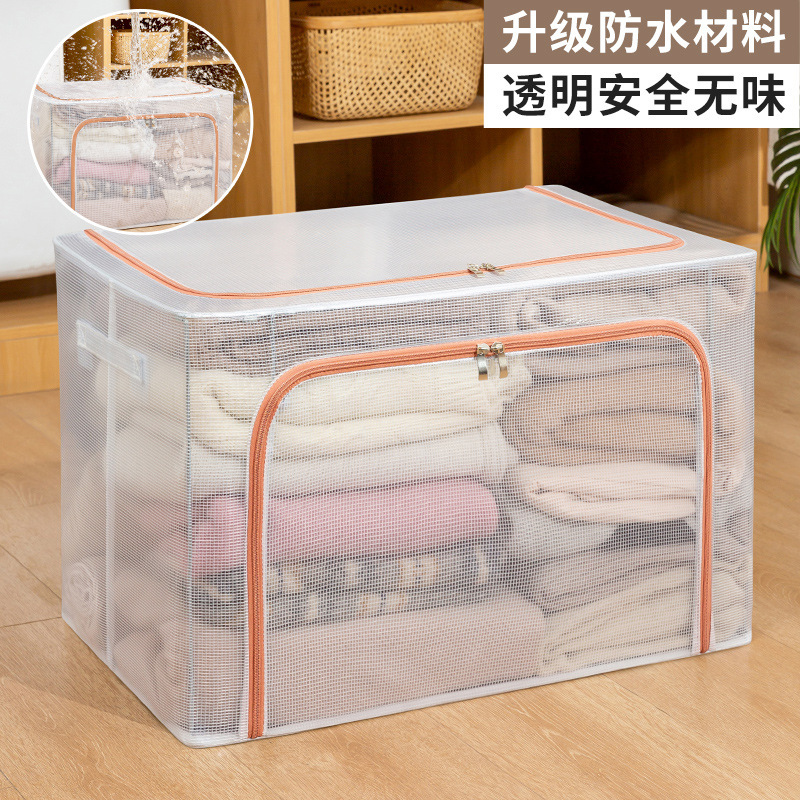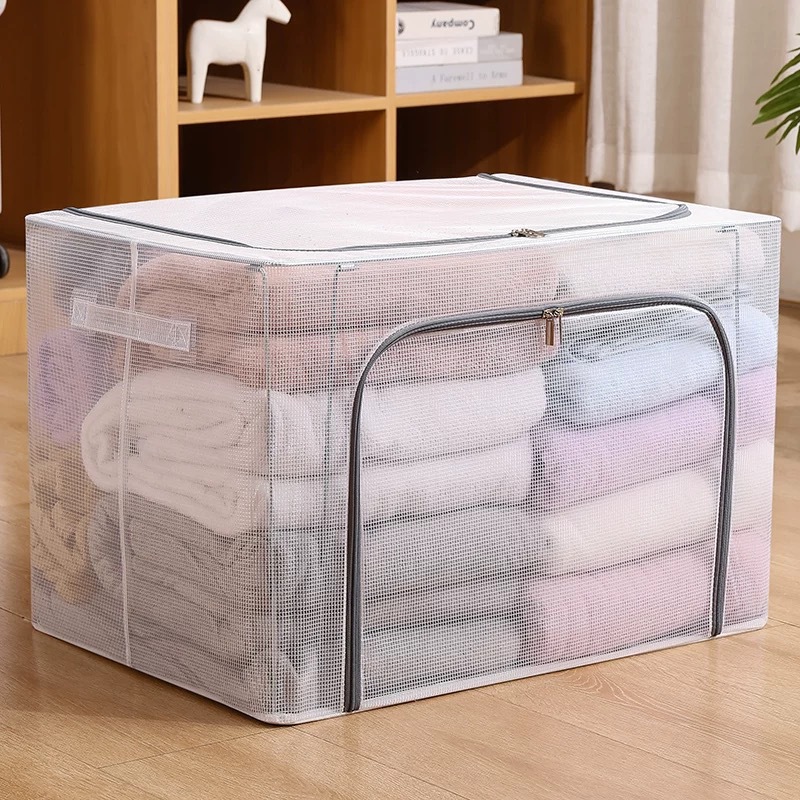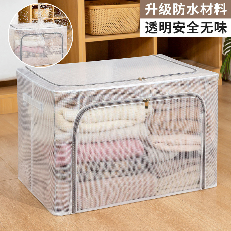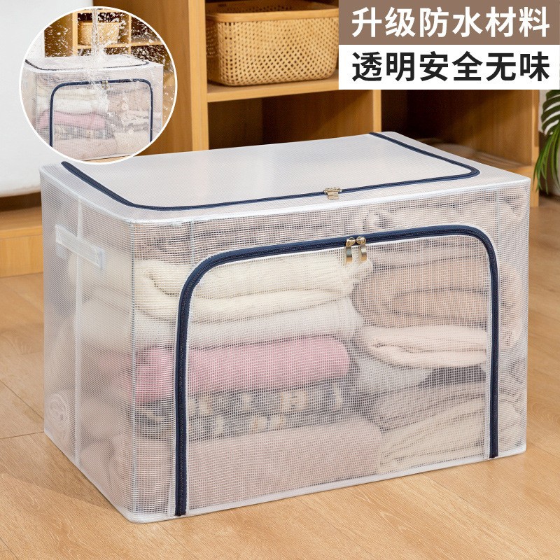 투명 메쉬 설치가 필요 없는 강철 프레임 보관함 방진 접이식 옷장 보관함 옷 이불 보관함