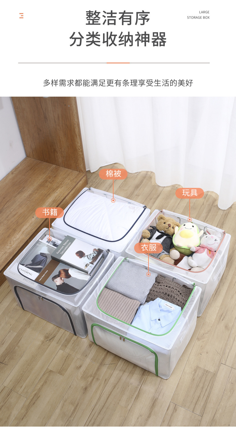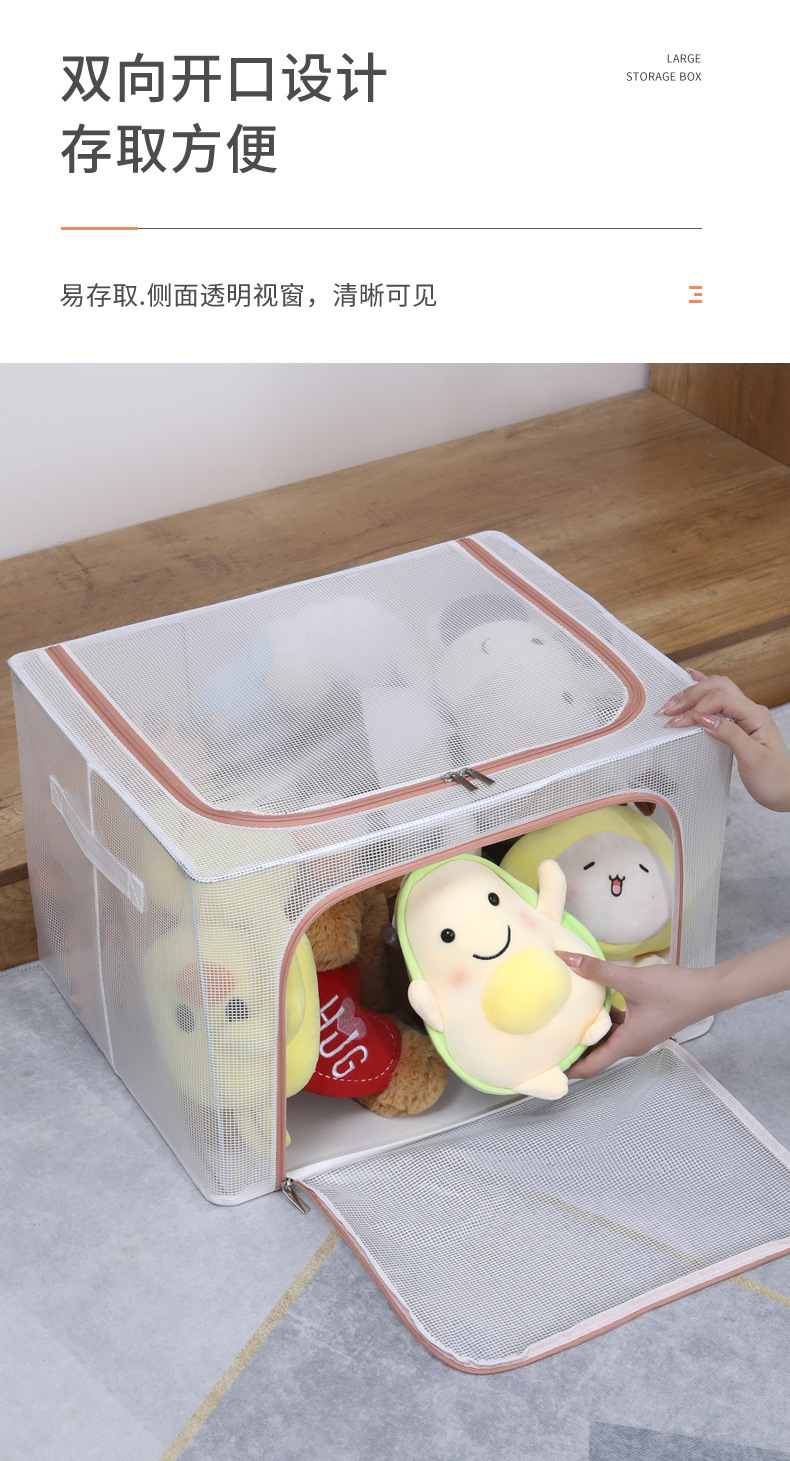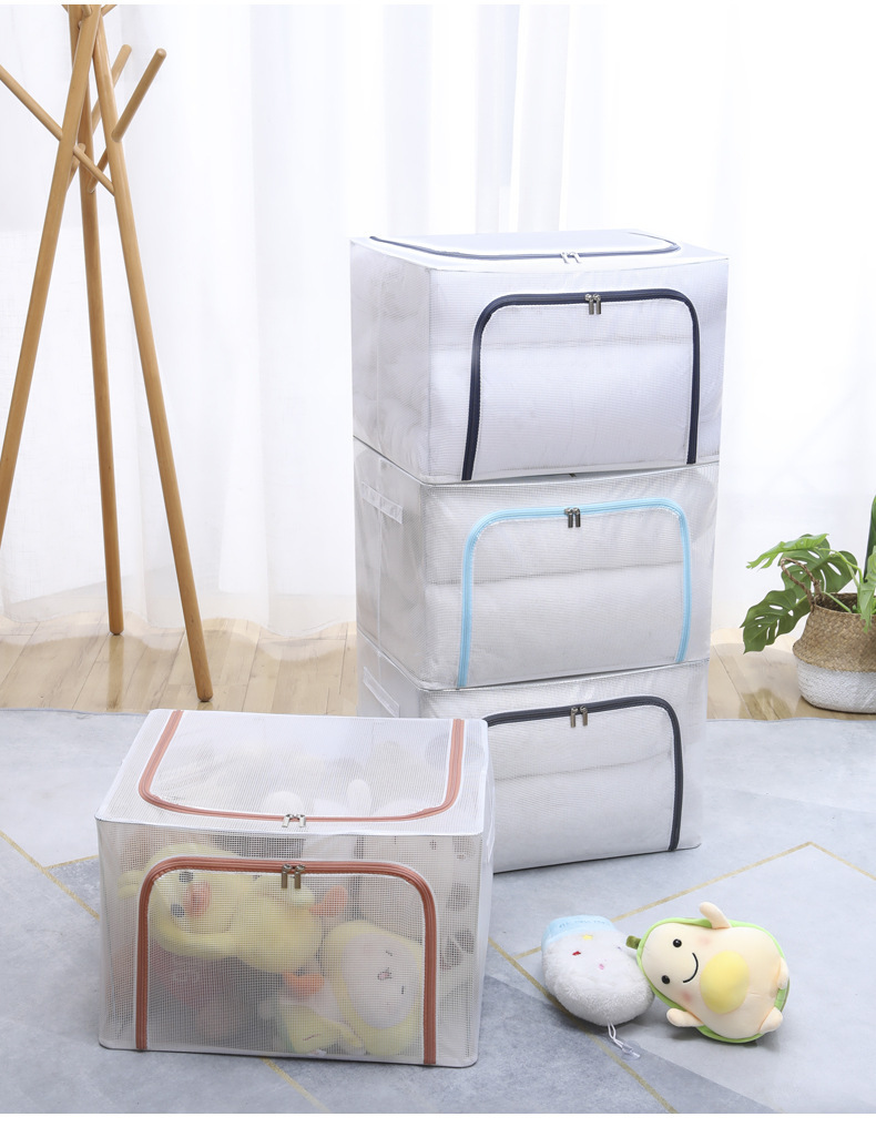 투명 메쉬 설치가 필요 없는 강철 프레임 보관함 방진 접이식 옷장 보관함 옷 이불 보관함