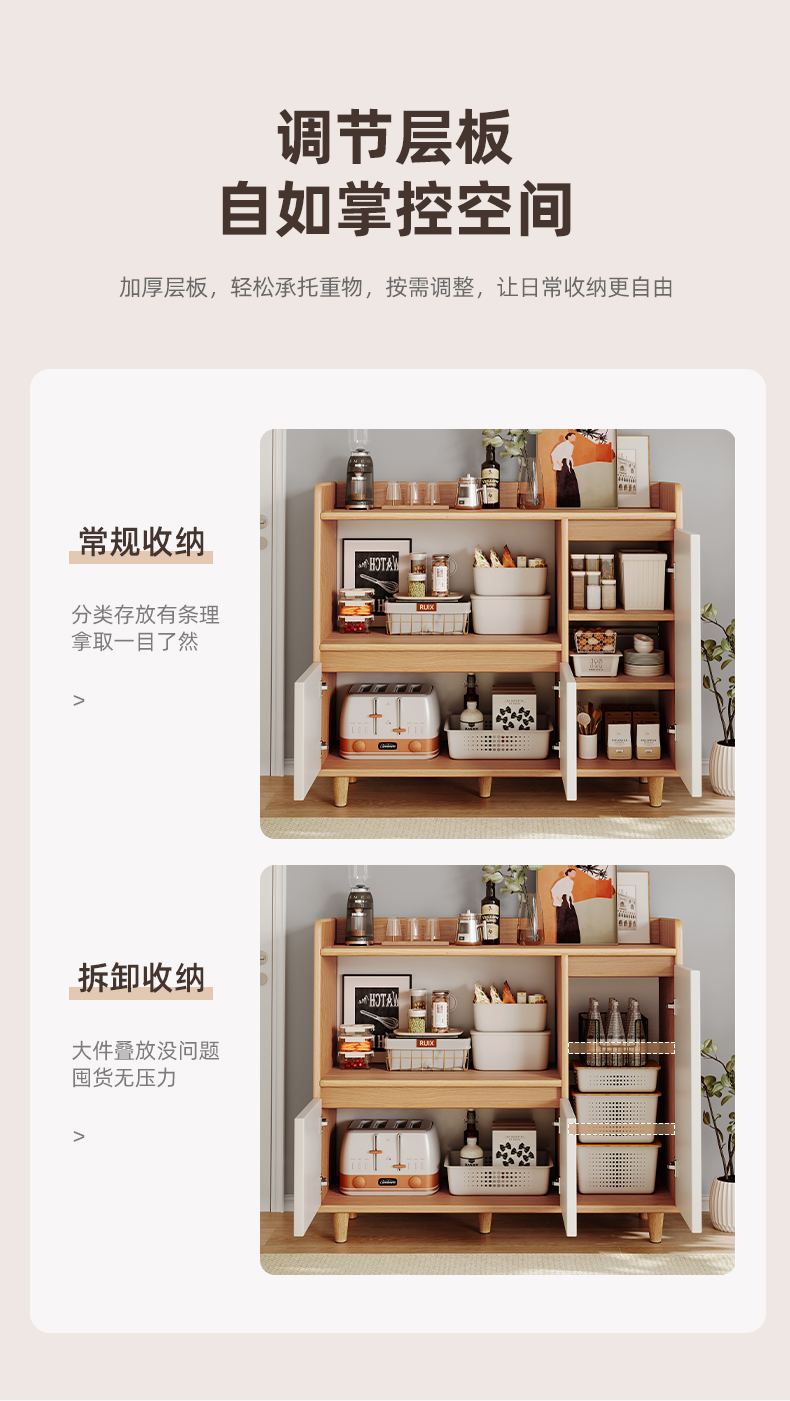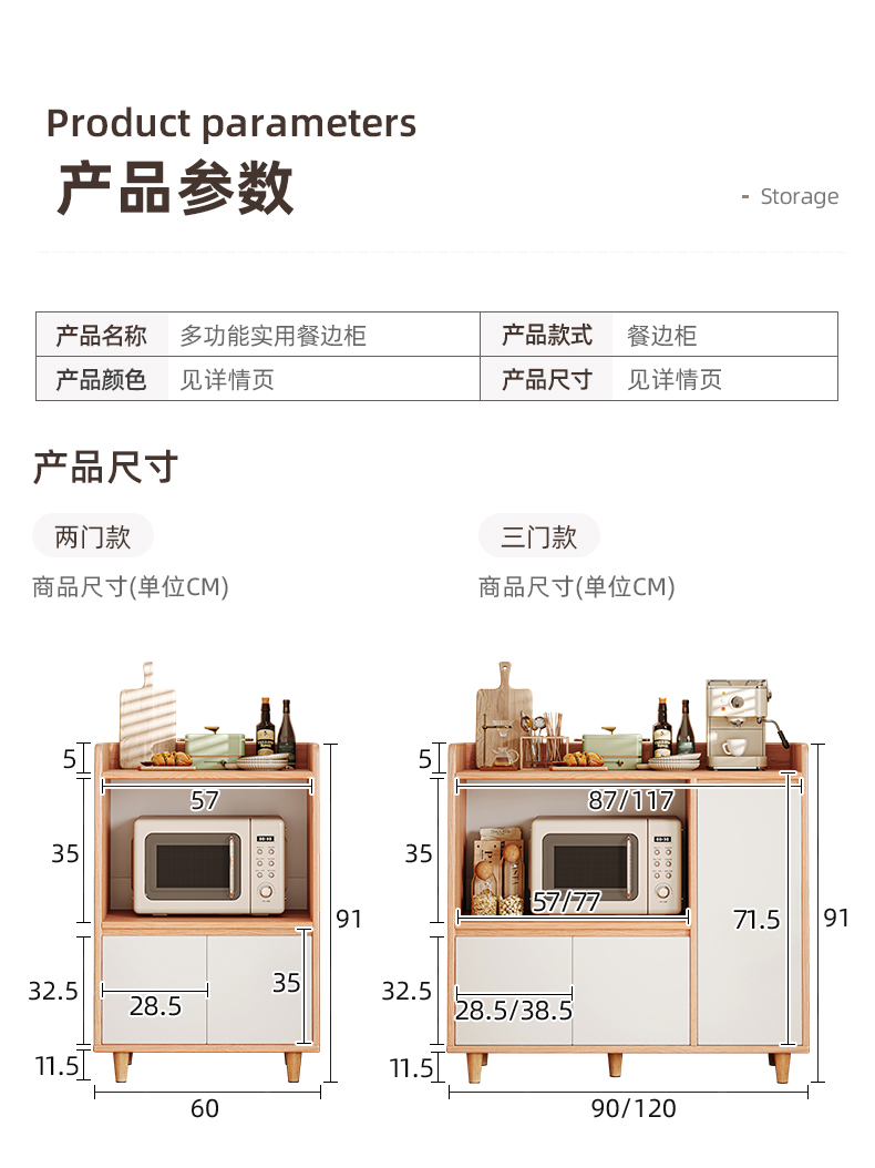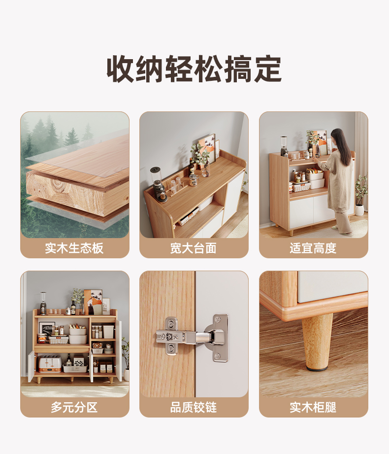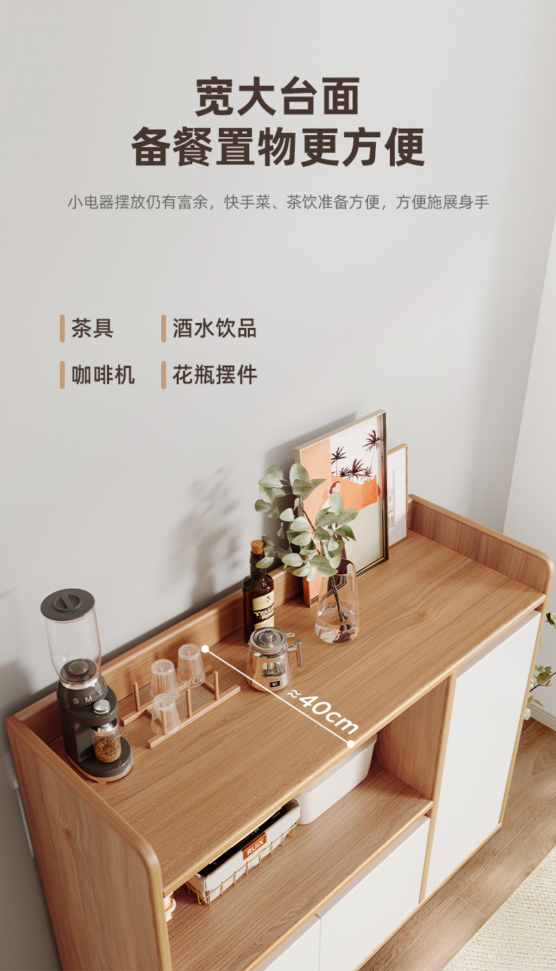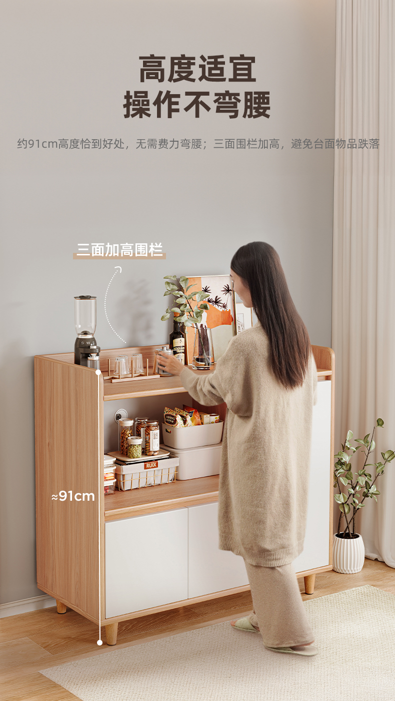 • ️위층 배송️ [60*40*91cm 높이의 낮은 캐비닛] 양문형 찬장, 두께 15mm 원목 생태 보드, 둥근 모서리