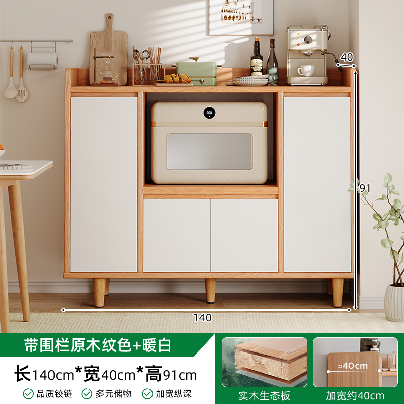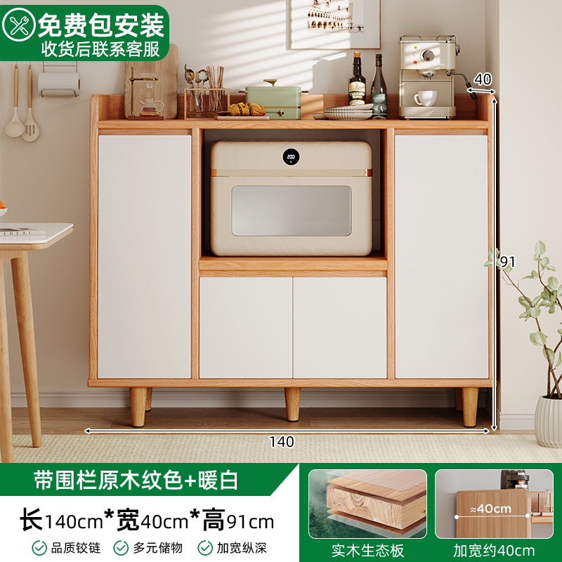• ️배송 위층️[140*40*91cm 높이의 낮은 캐비닛] 4도어 찬장, 15mm 두께의 원목 생태 보드, 둥근 모서리