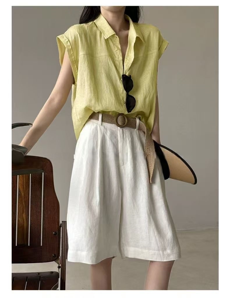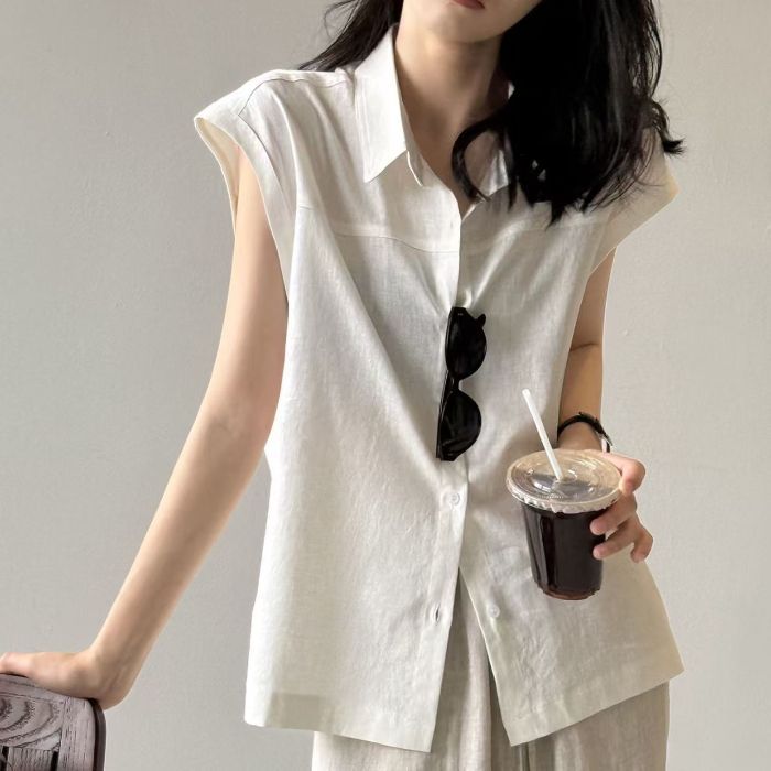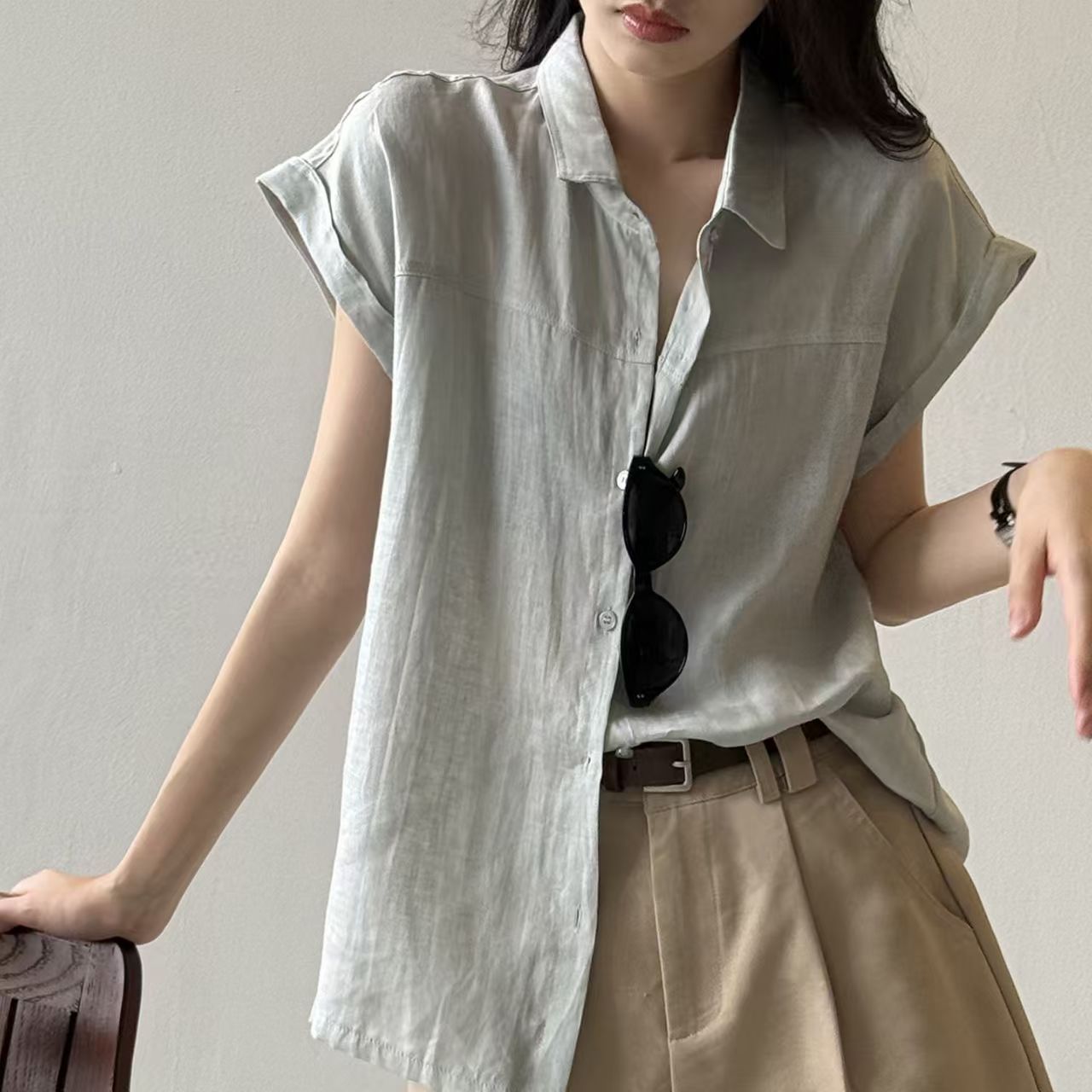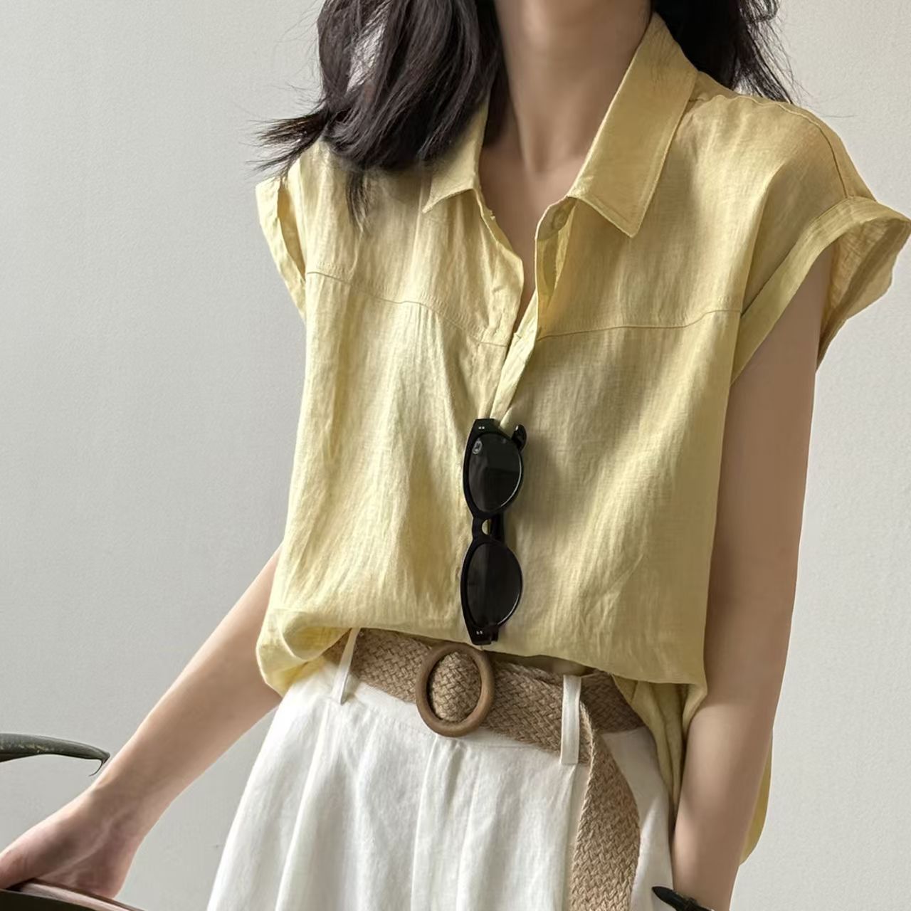 레트로 문학 카디건 폴로 칼라 캐주얼 플라잉 슬리브 탑 여성 루즈하고 다재다능한 린넨 셔츠 하이 엔드 셔츠