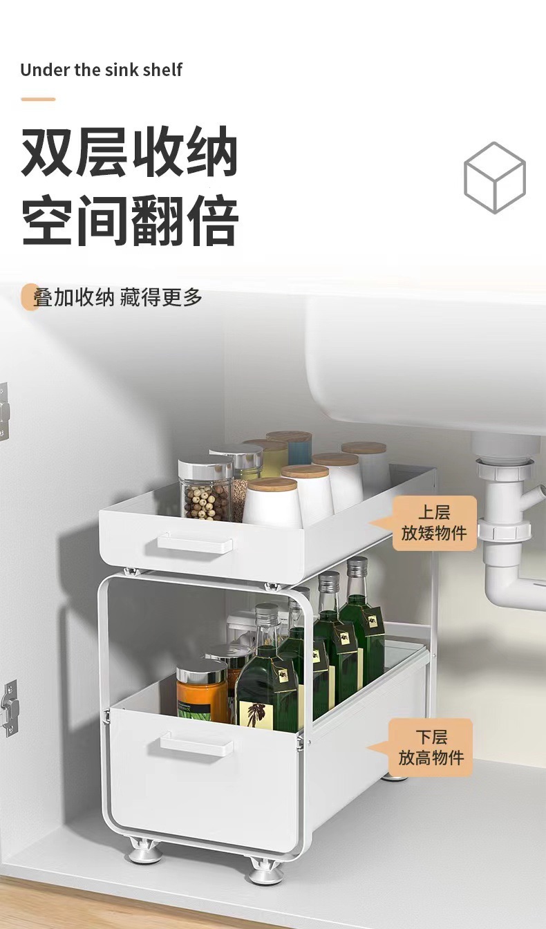 이동식 주방 싱크대 하부 수납함, 풀아웃 수납선반, 캐비닛 하부 조미료 수납선반, 2단 수납선반스토어 가기