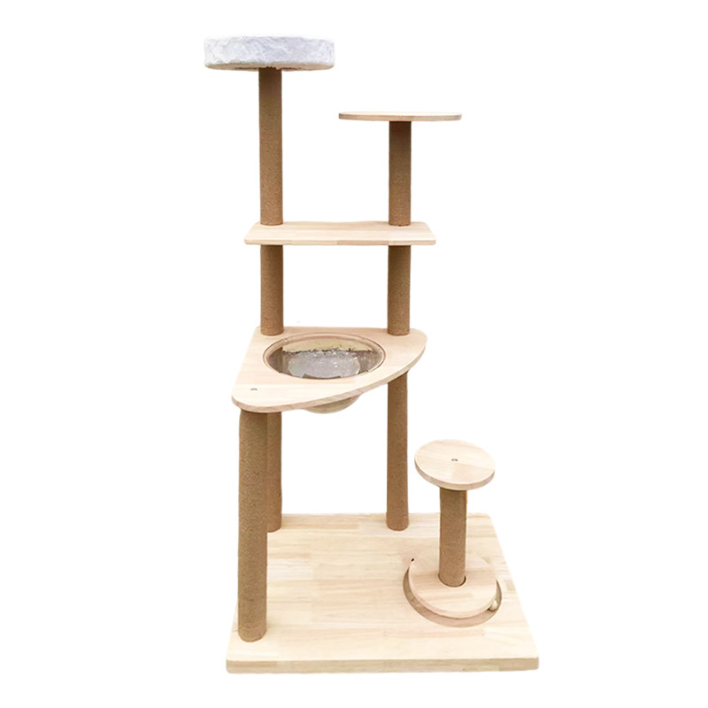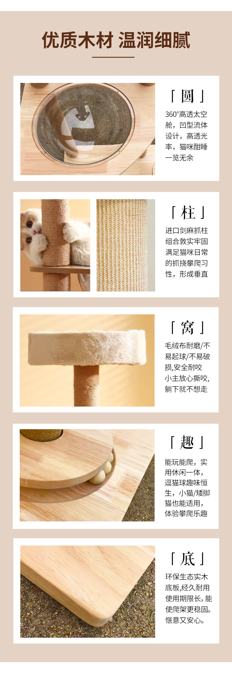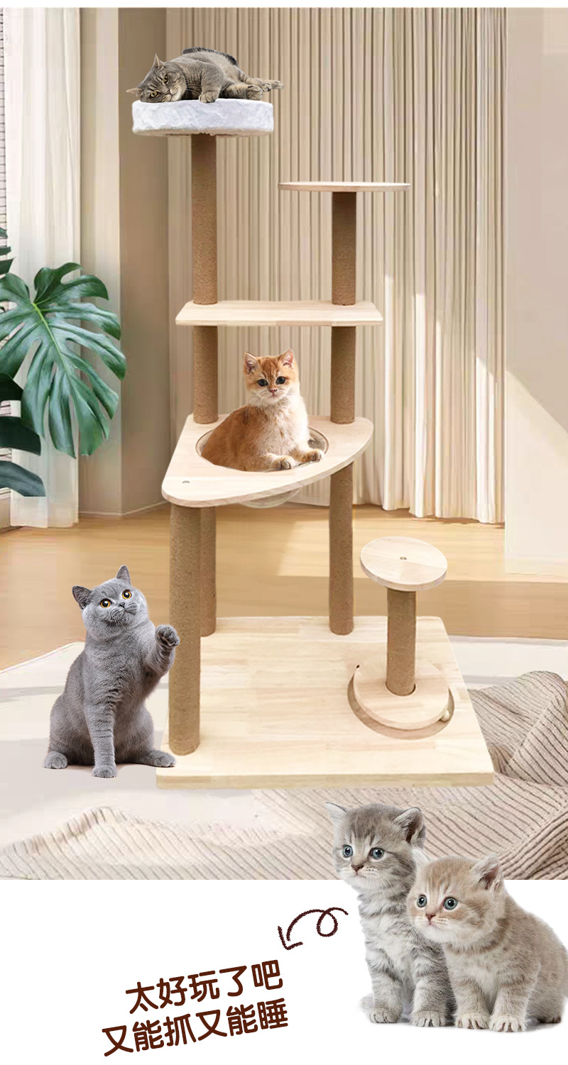 원목 고양이 클라이밍 프레임, 대형 및 소형 고양이를 위한 통합 공간 캡슐 고양이 둥지, 고양이 스크래치 보드, 고양이 점프 플랫폼, 산장고무 수직 고양이 스크래치 포스트