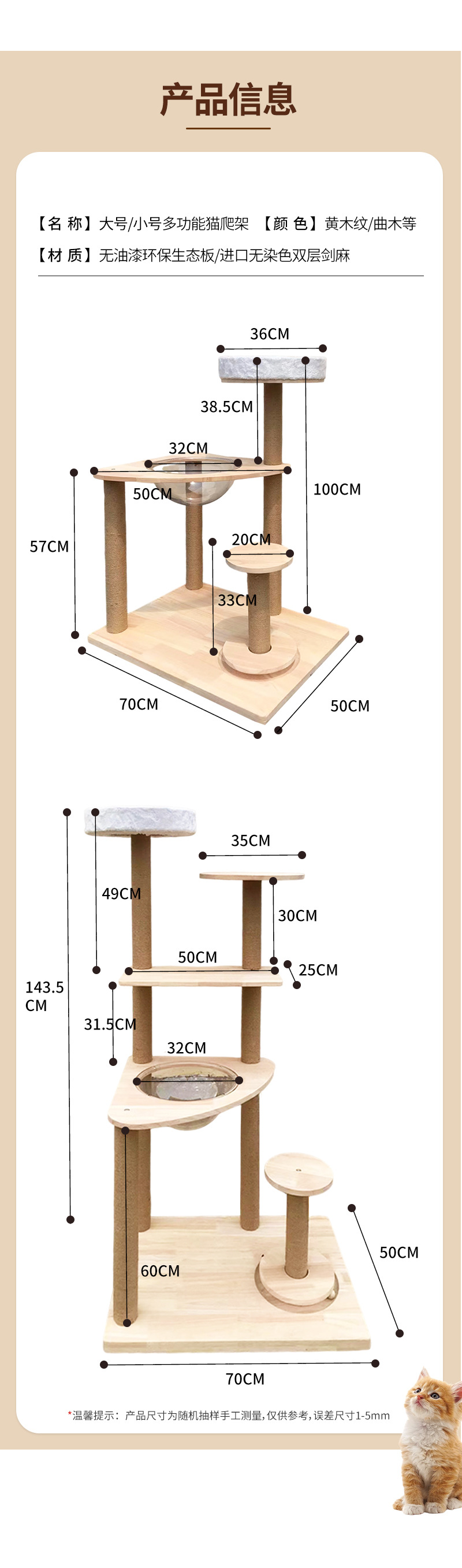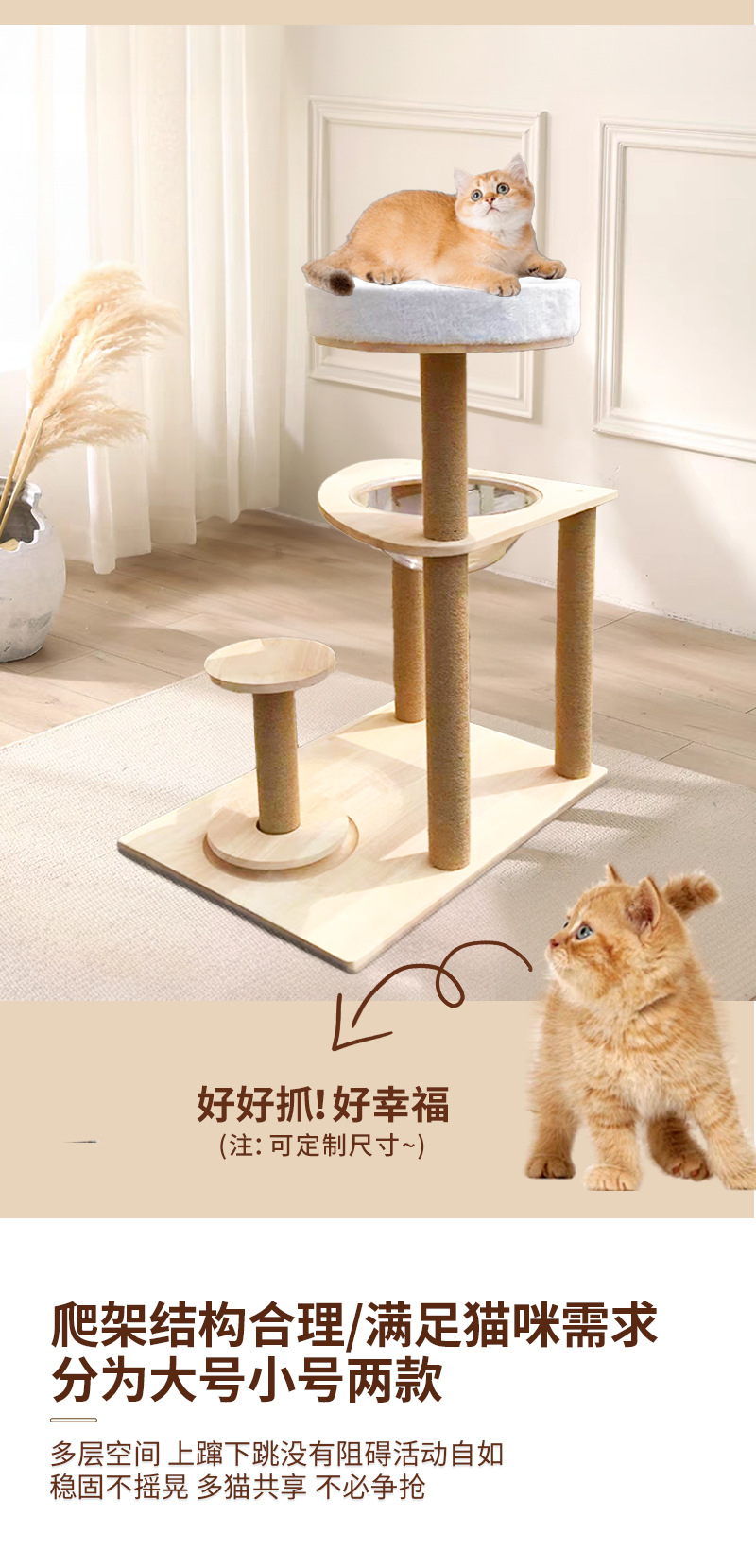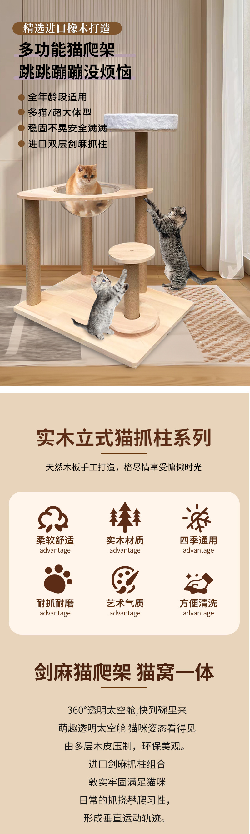 원목 고양이 클라이밍 프레임, 대형 및 소형 고양이를 위한 통합 공간 캡슐 고양이 둥지, 고양이 스크래치 보드, 고양이 점프 플랫폼, 산장고무 수직 고양이 스크래치 포스트